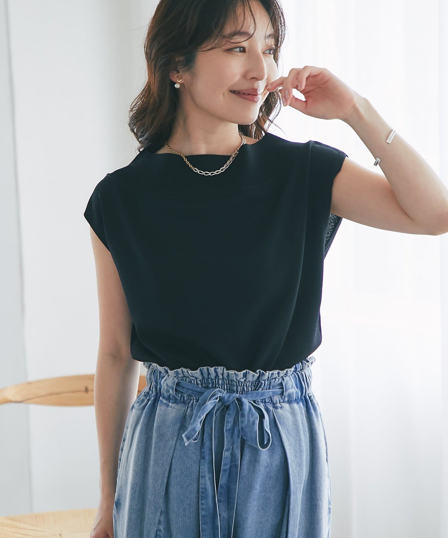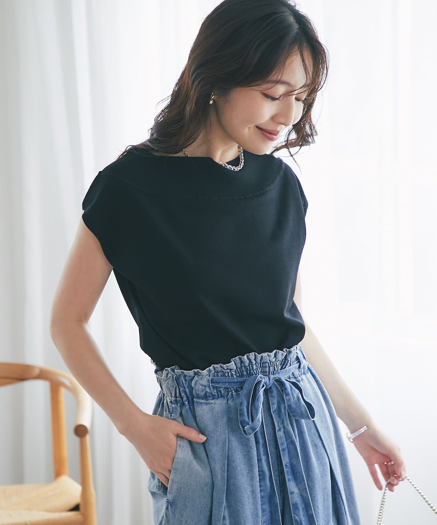 さらりとした肌触りで、暑い季節にも心地よく着られるフレンチニット。