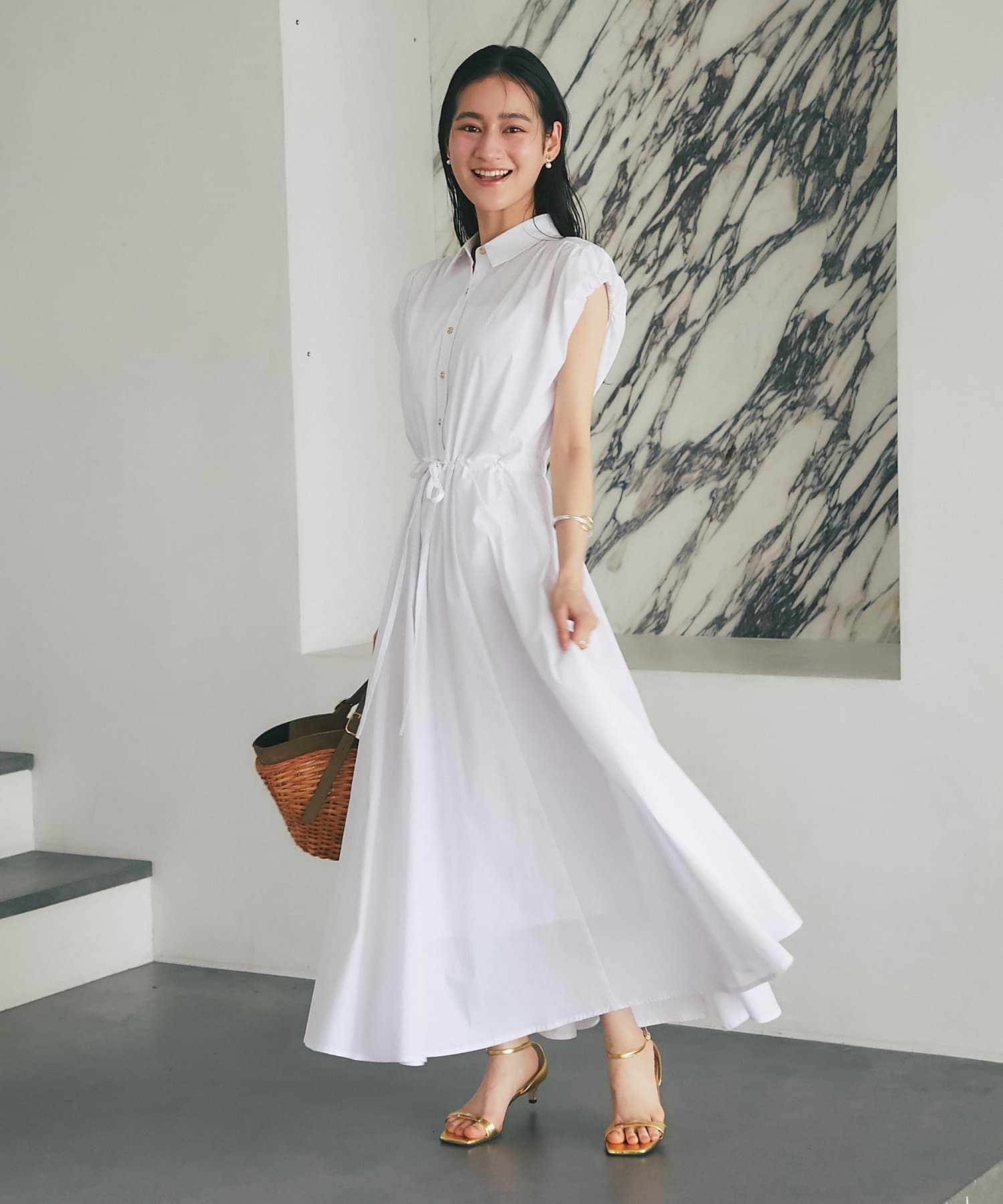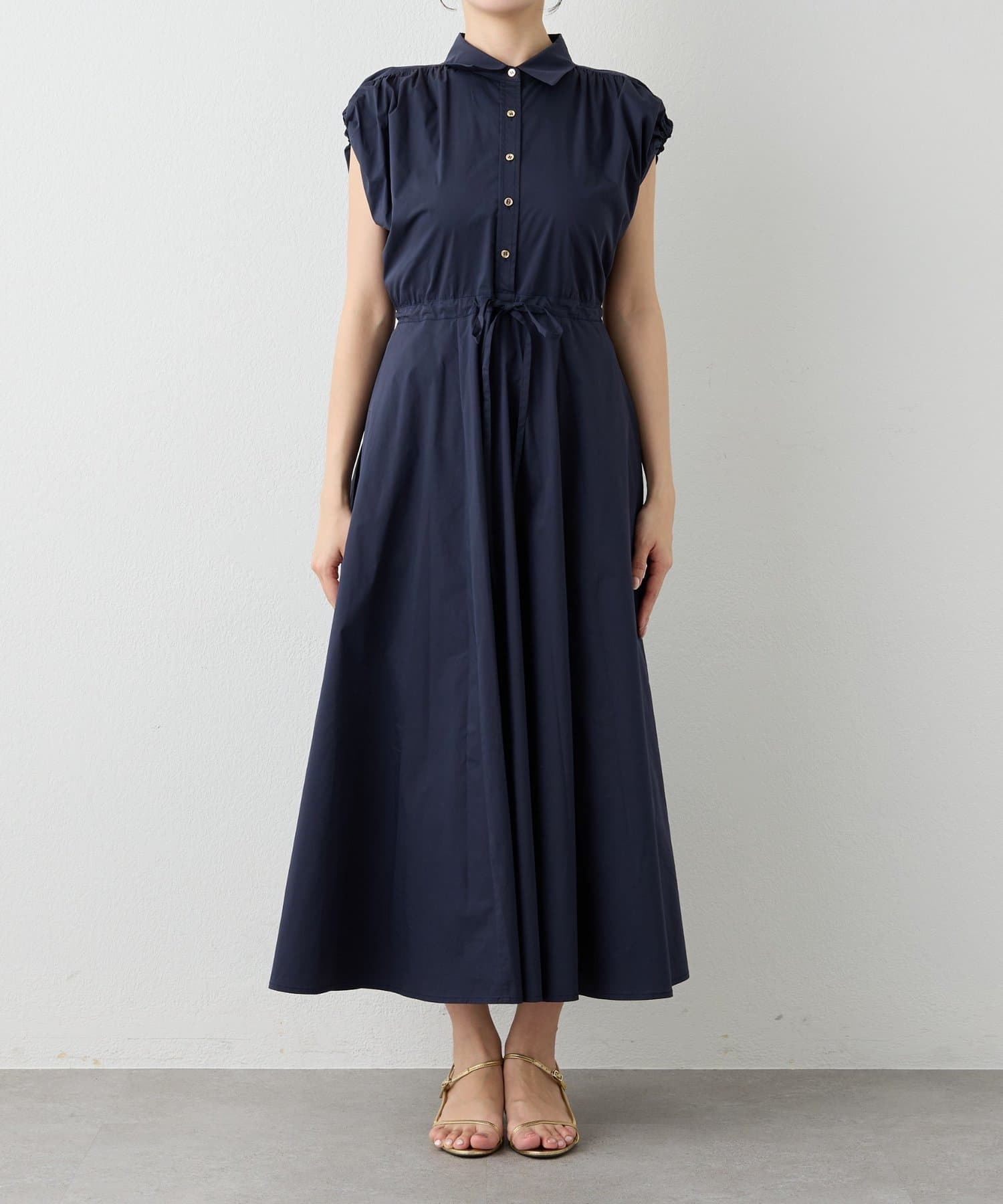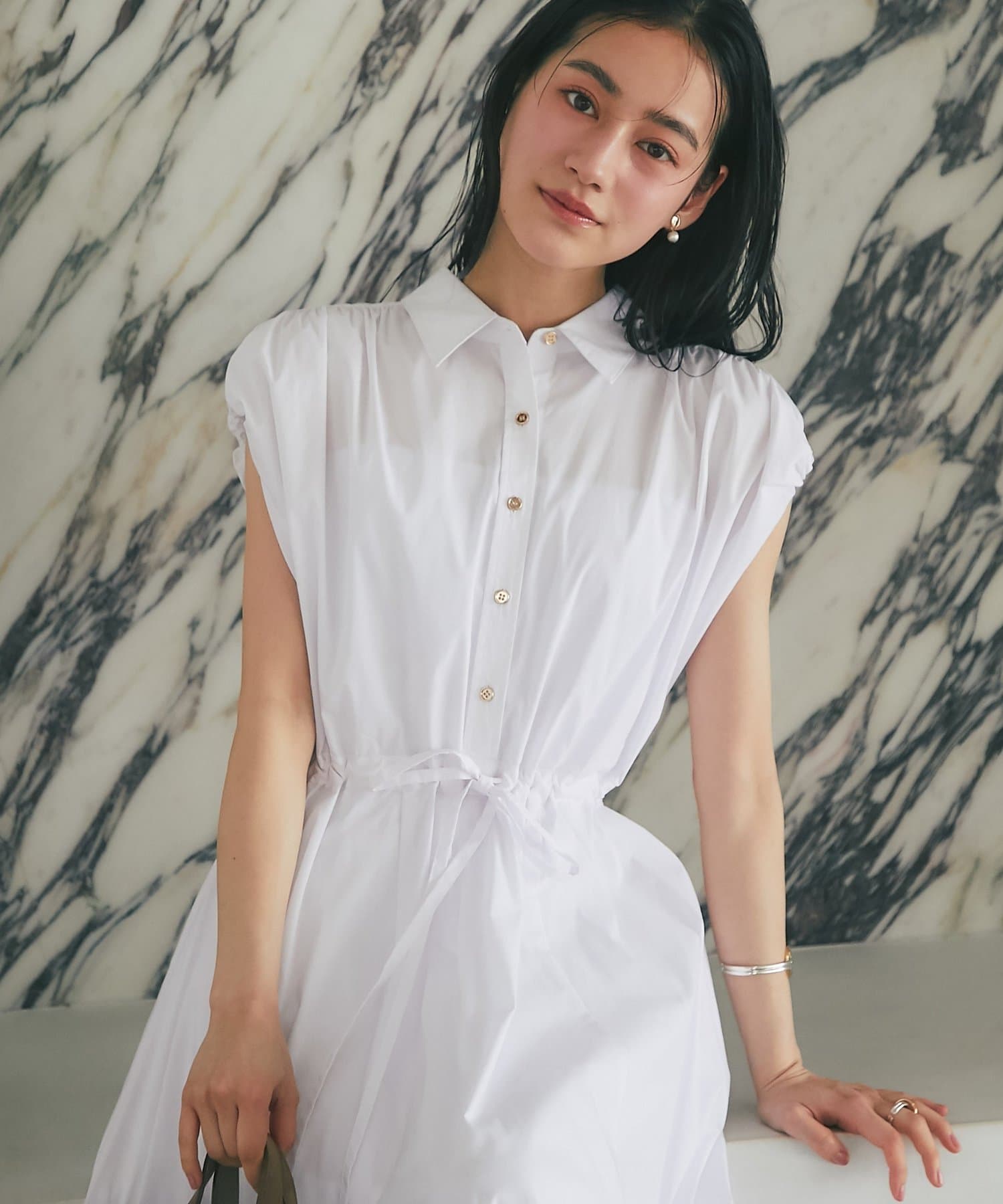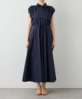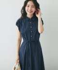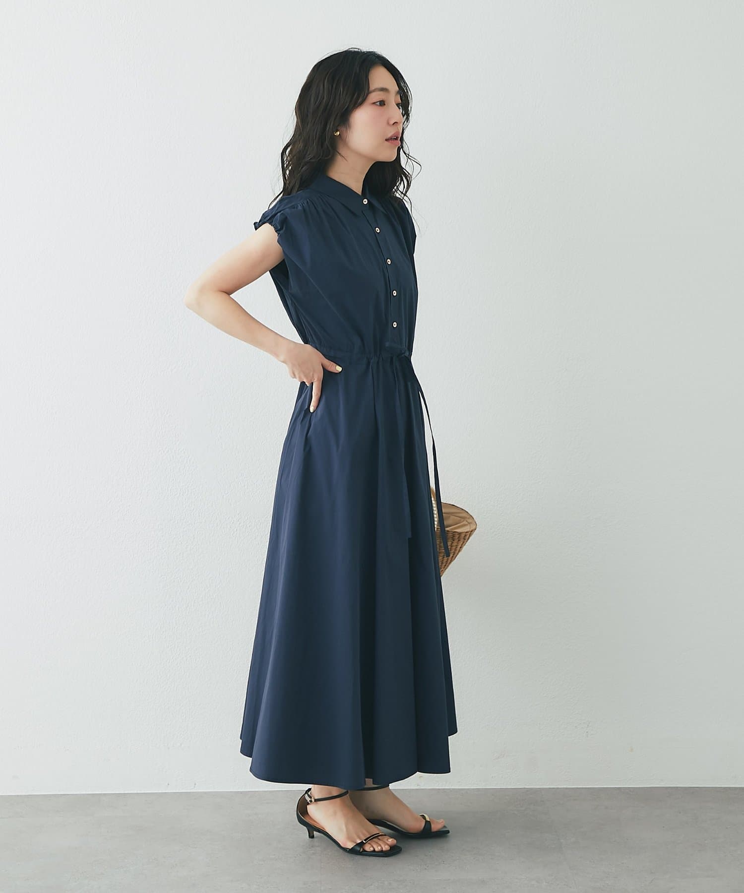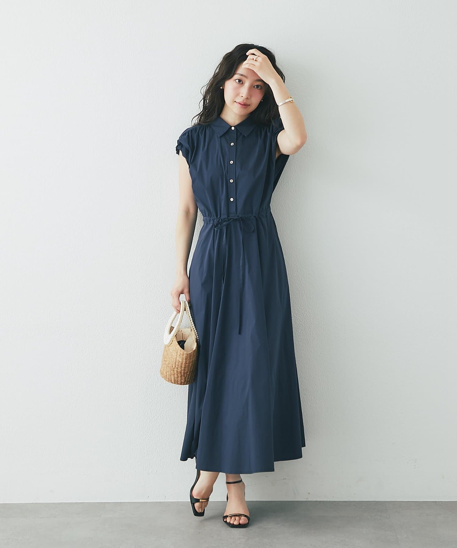 きちんと感のあるシャツカラーが上品な印象を与えるワンピース。