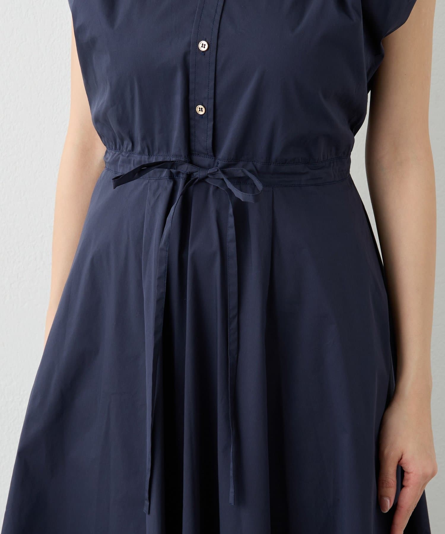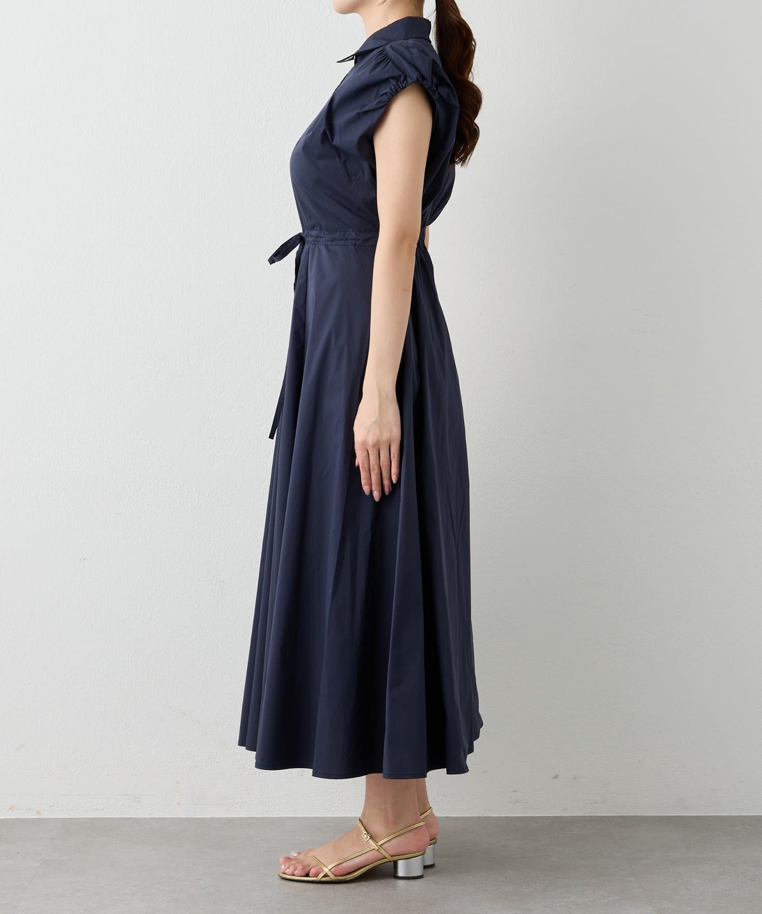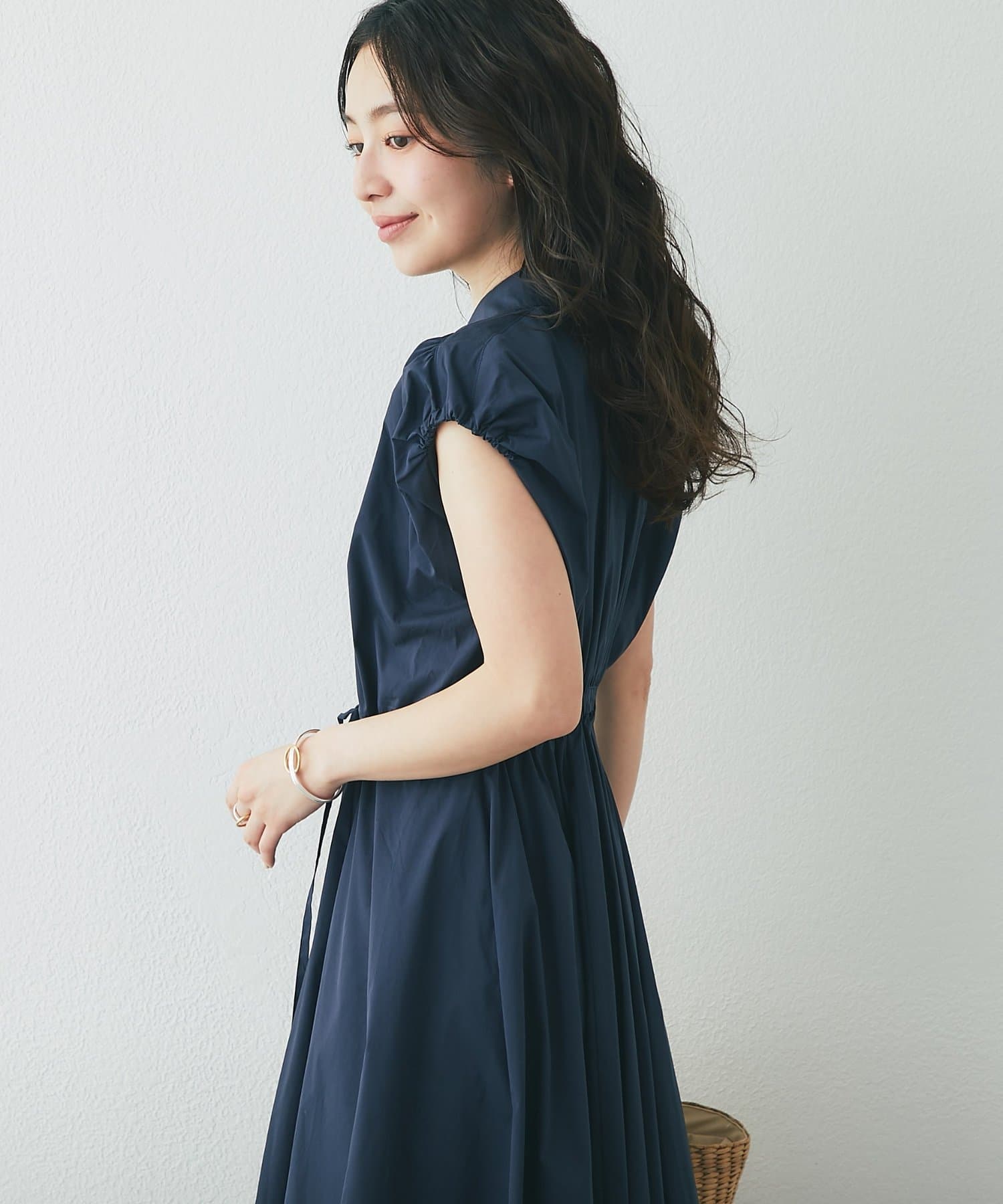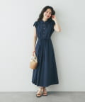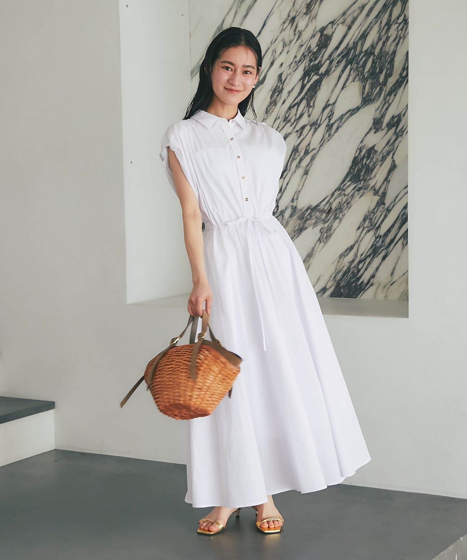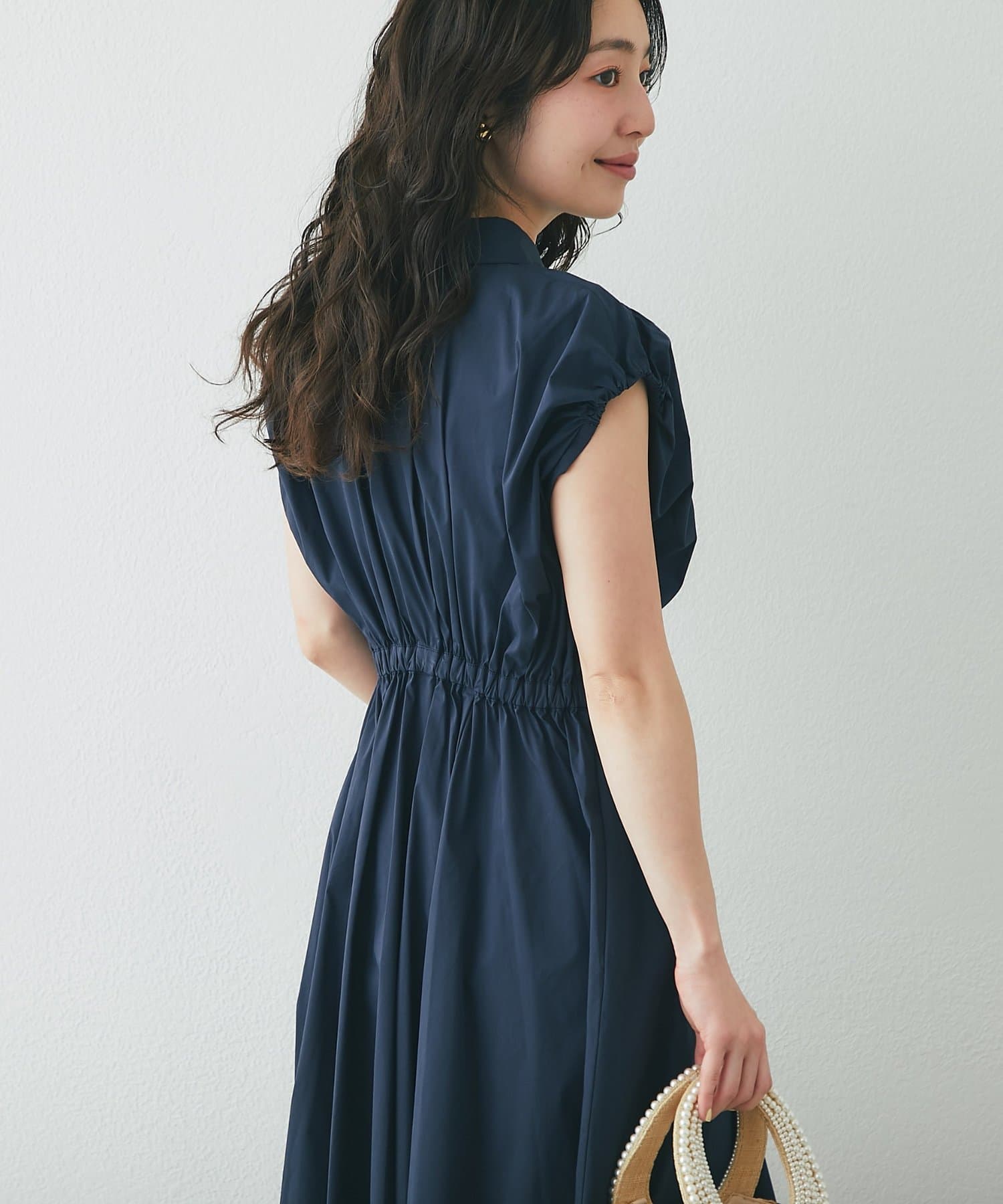 きちんと感のあるシャツカラーが上品な印象を与えるワンピース。