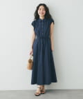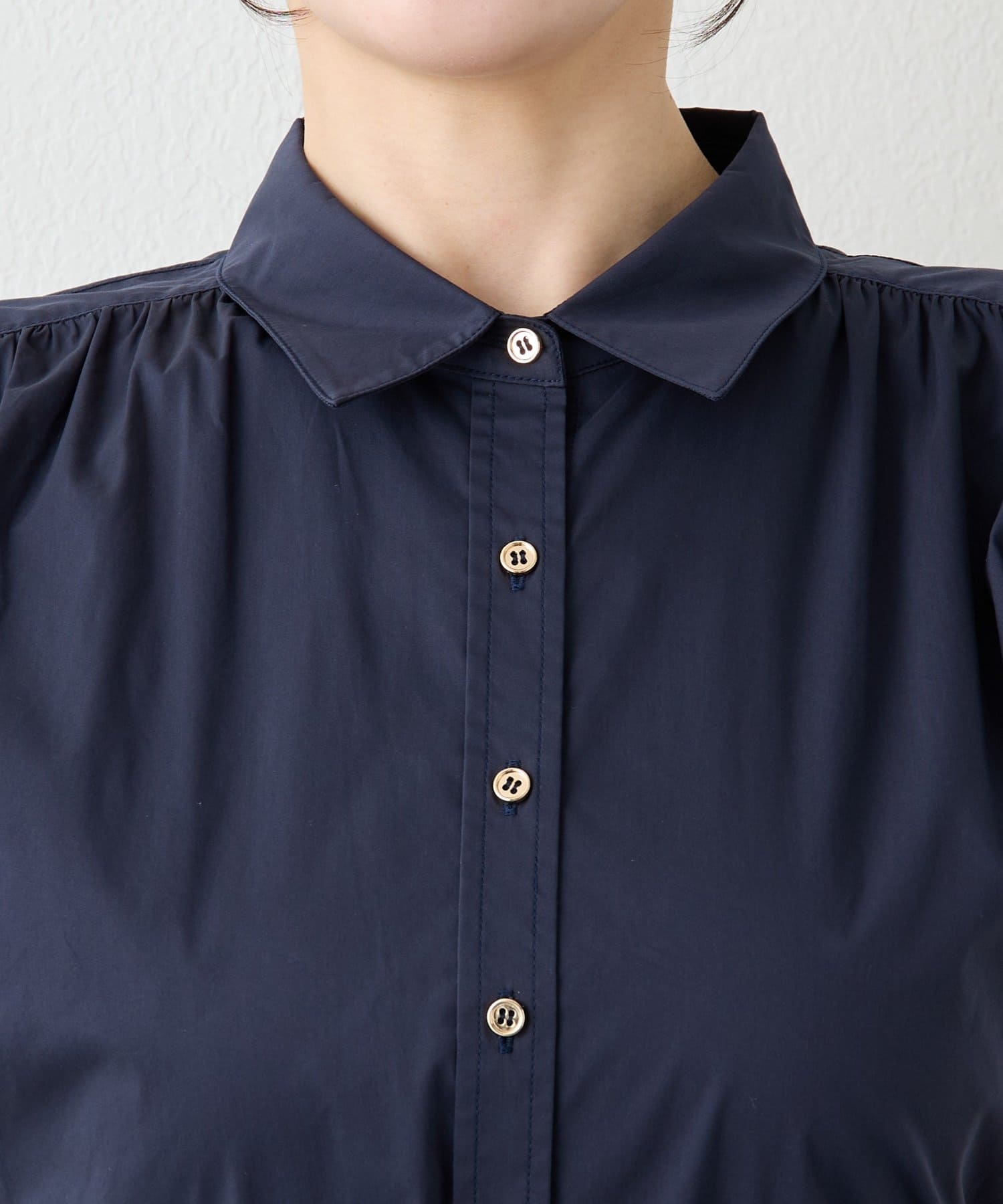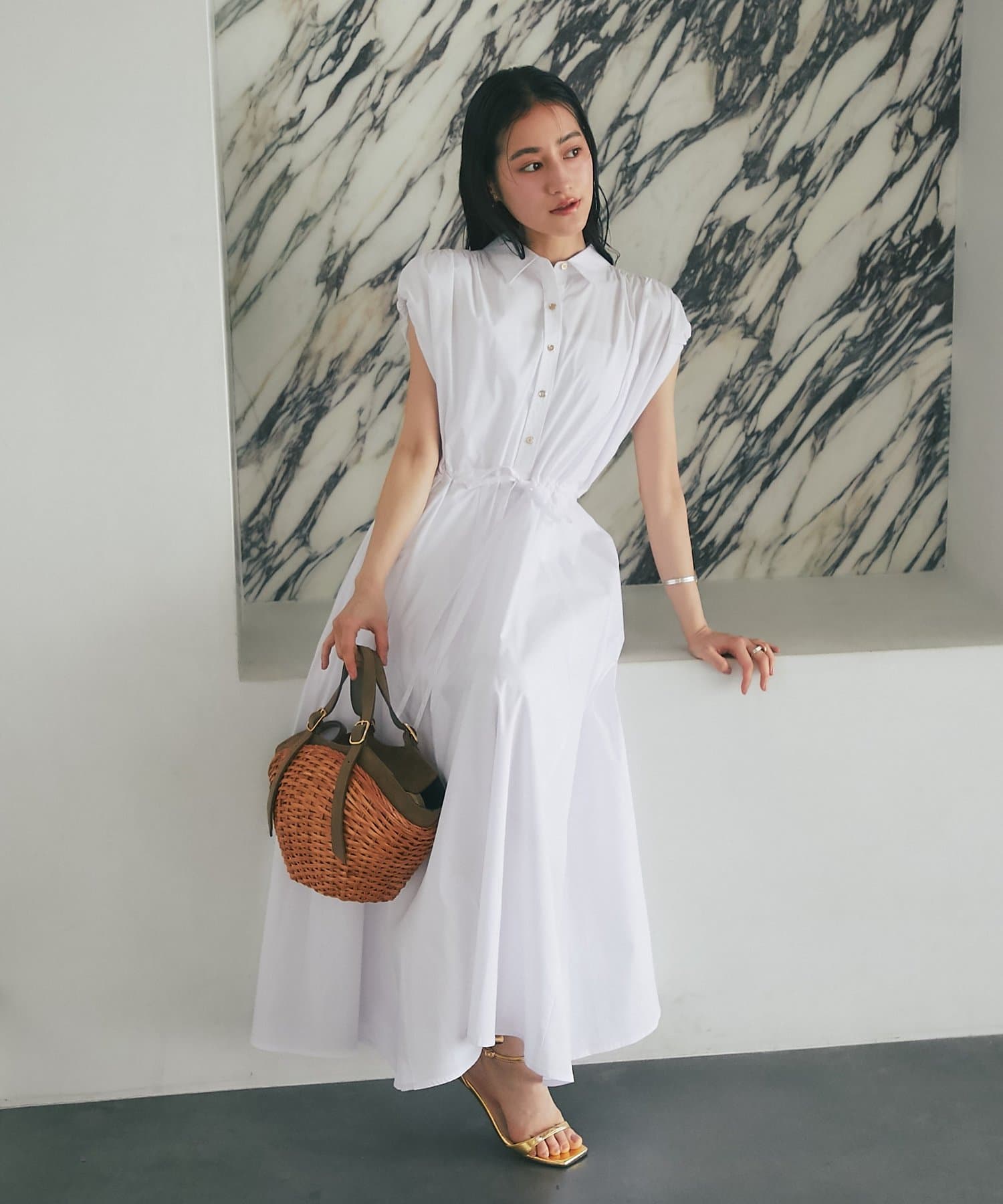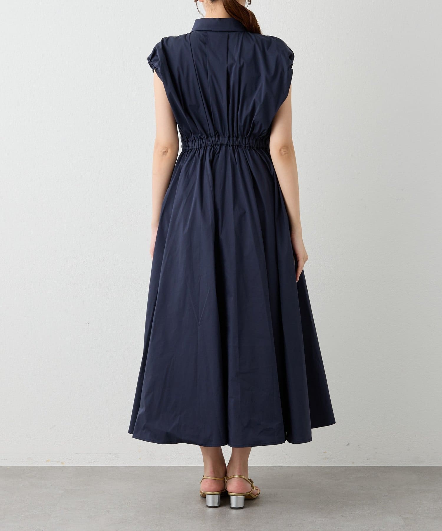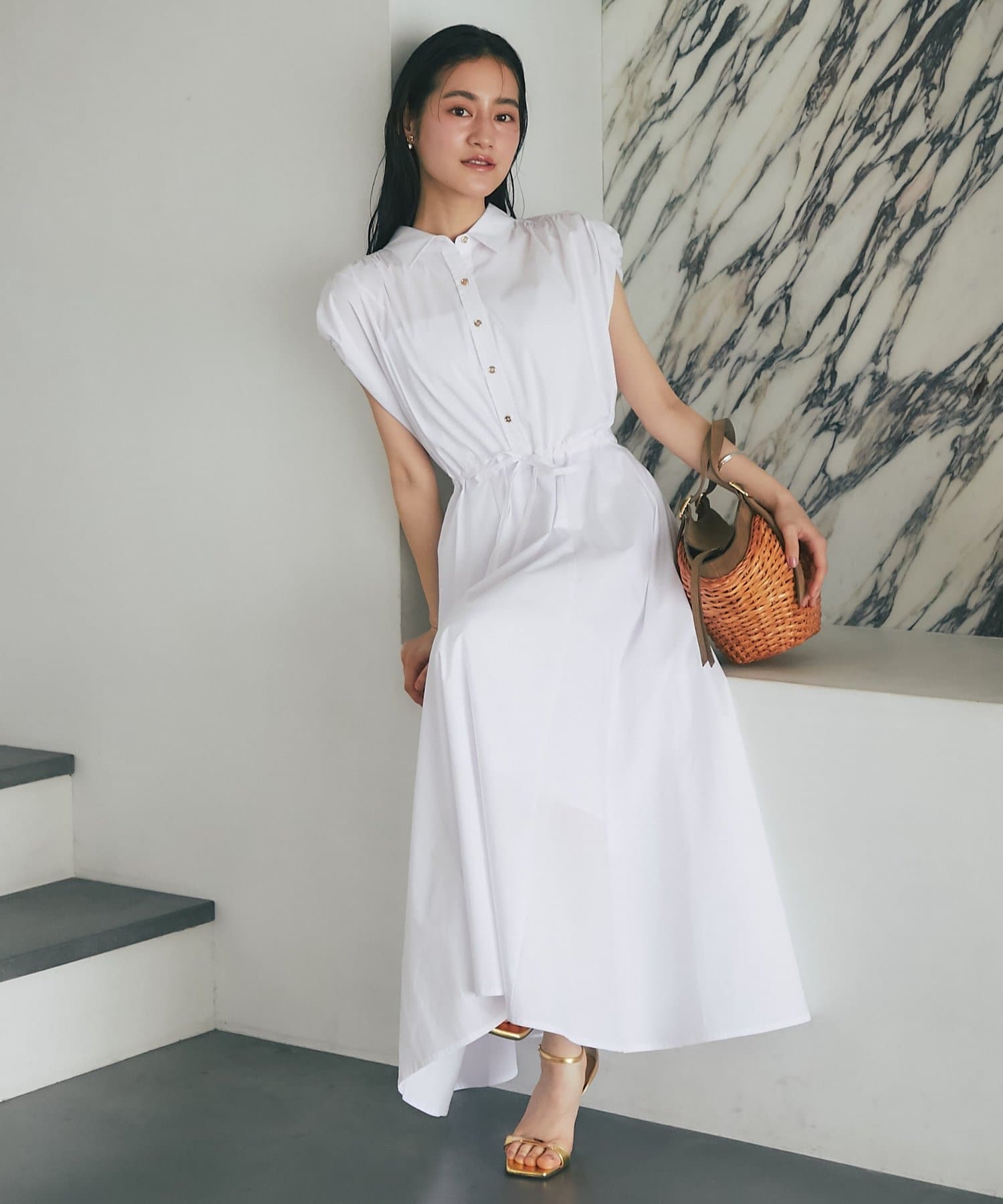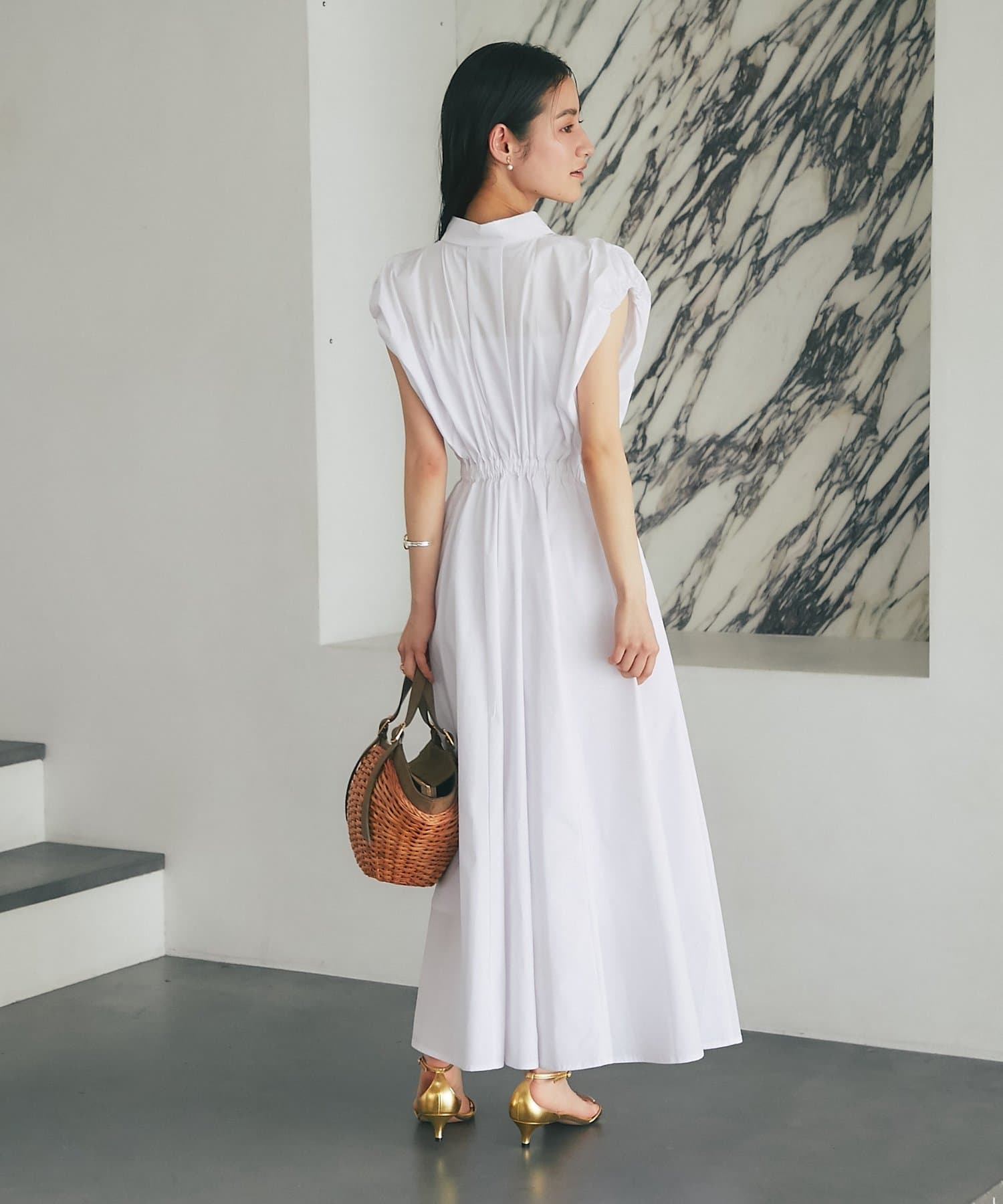 きちんと感のあるシャツカラーが上品な印象を与えるワンピース。