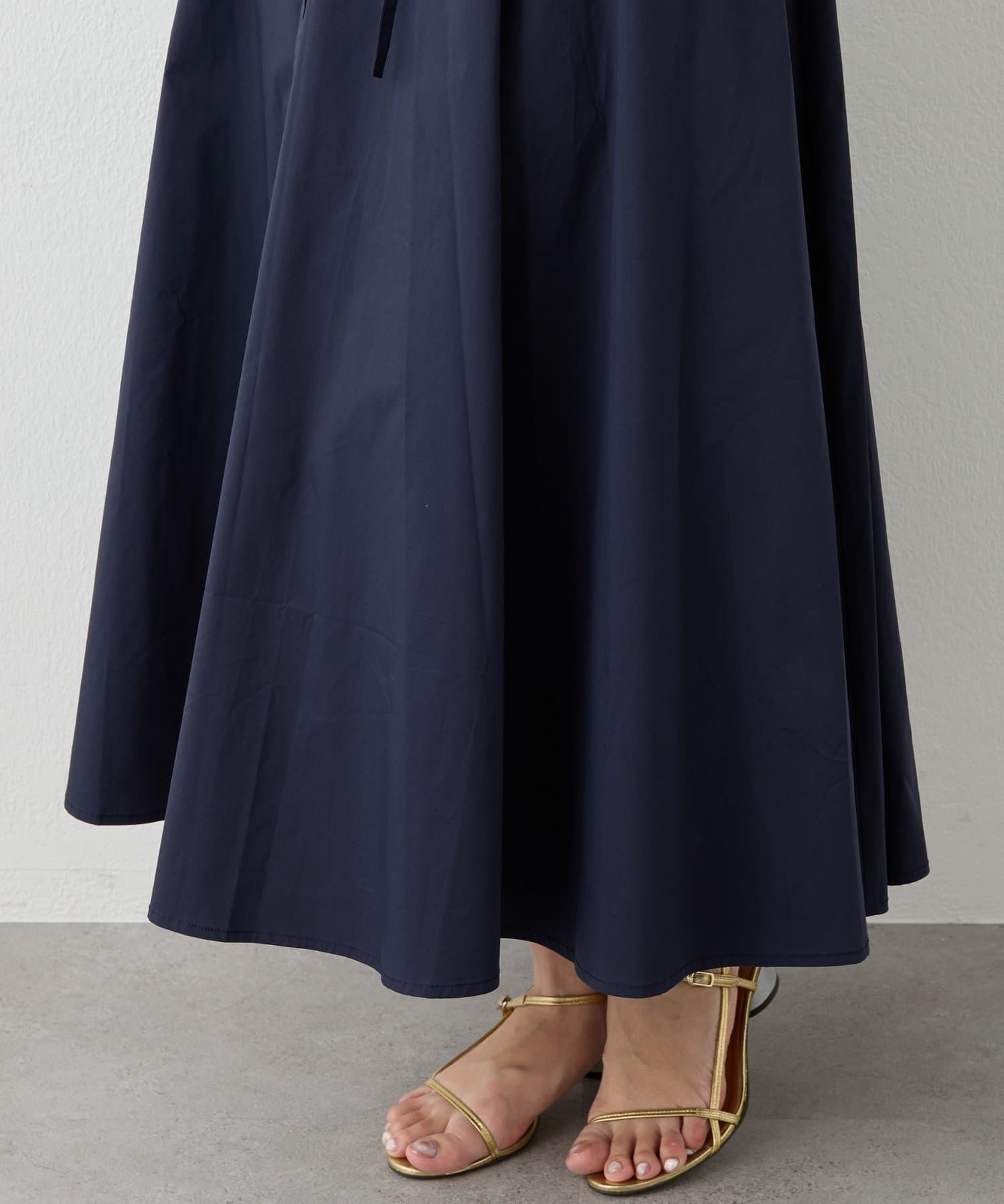 裾に向かって広がるたっぷりとしたフレアラインが歩くたびに美しく揺れ、