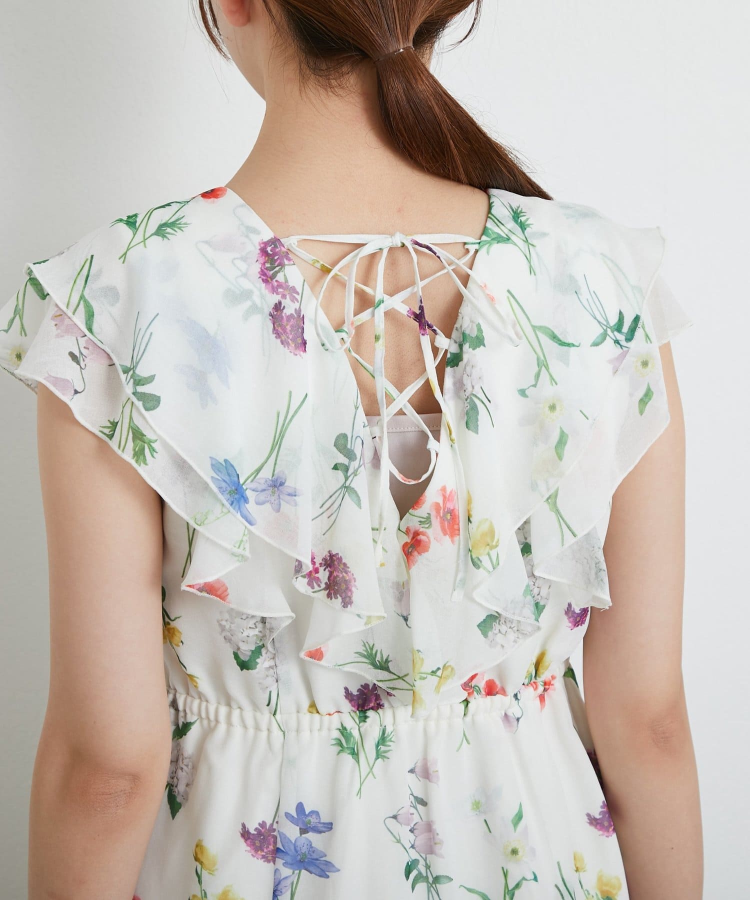 背中にはレースアップデザインをあしらい、程よい肌見せを楽しめ、