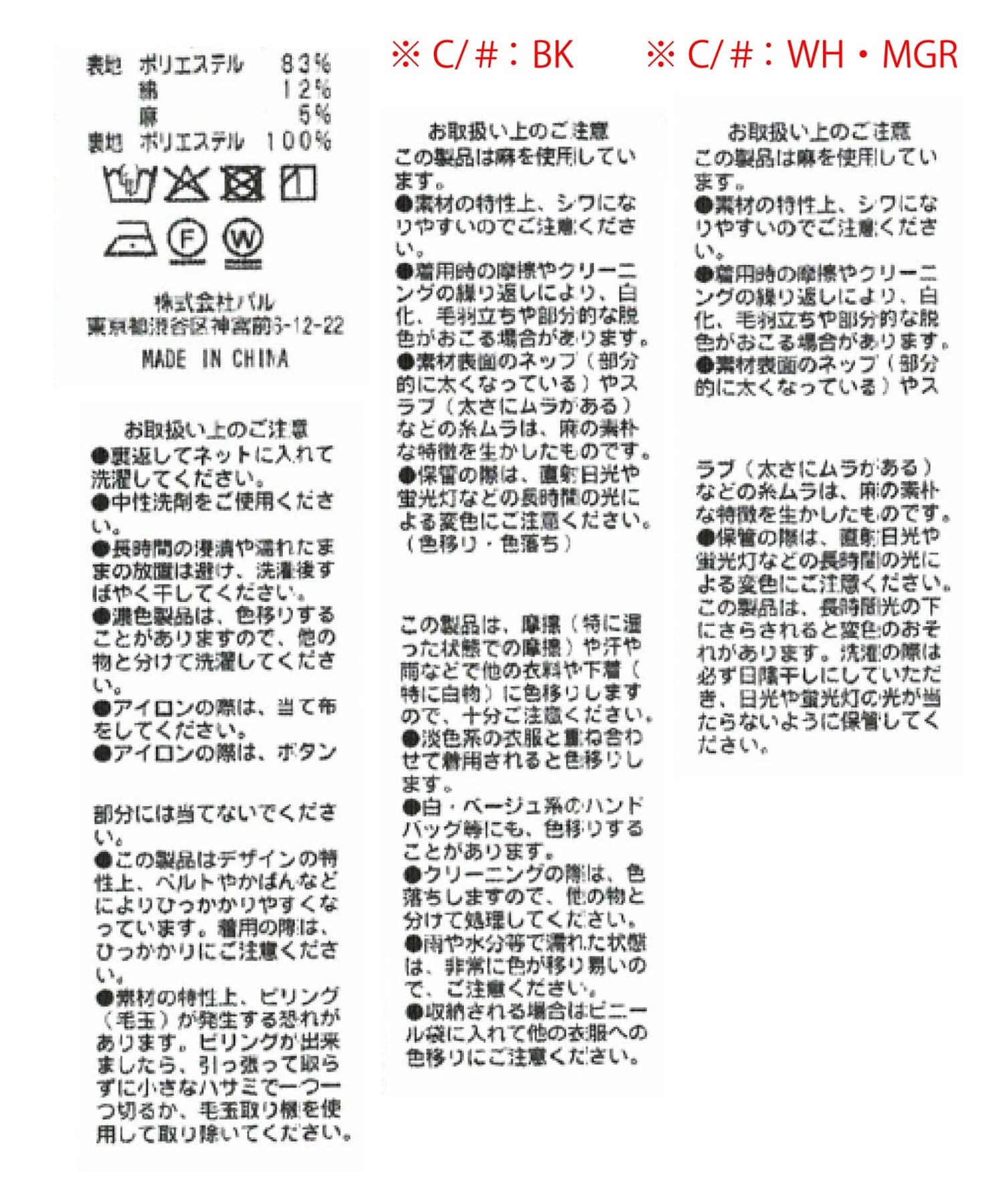 ポリエステル : 83%