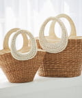 天然素材の風合いとデザインポイントになっているパールハンドルが大変愛らしく、