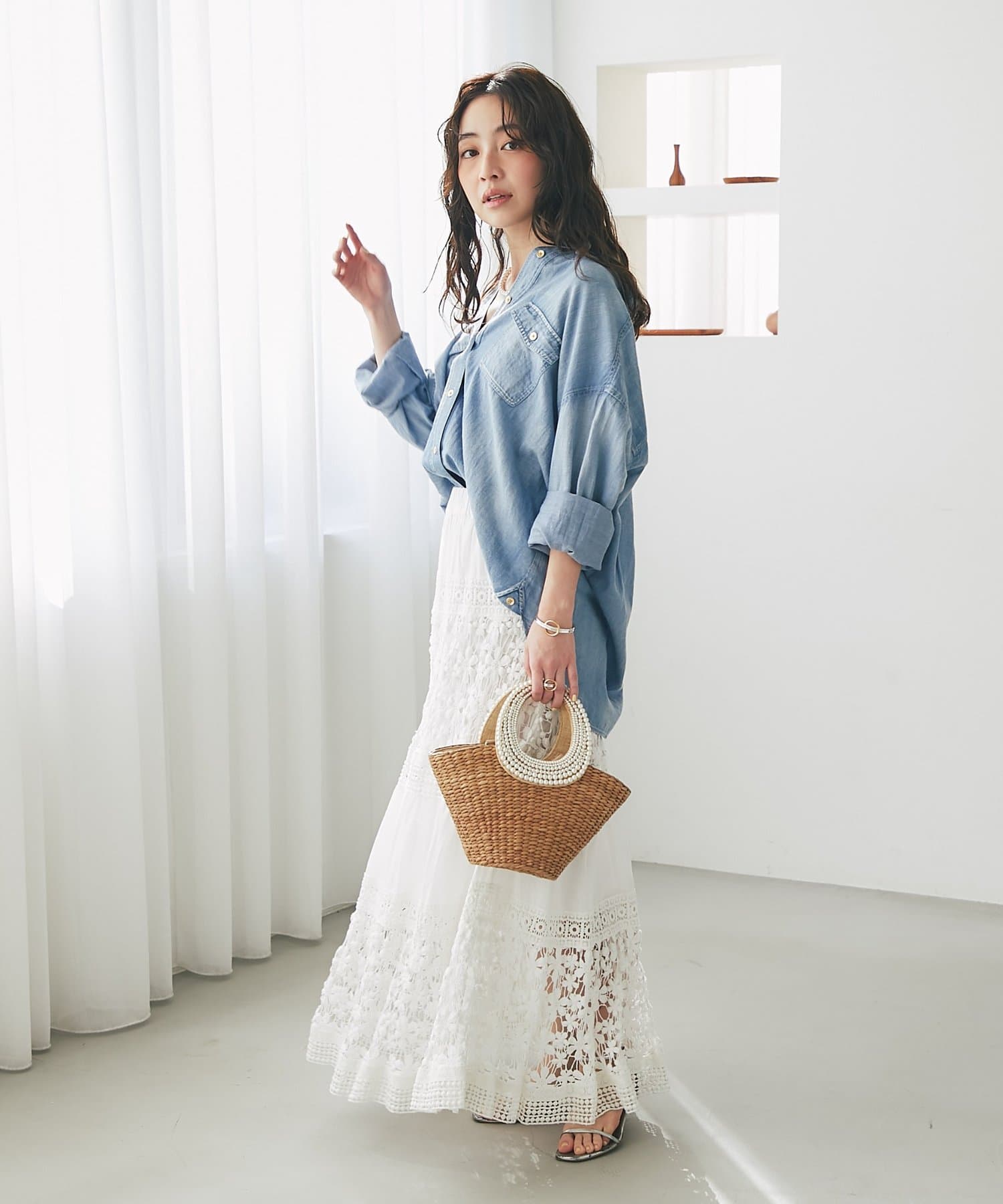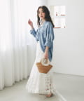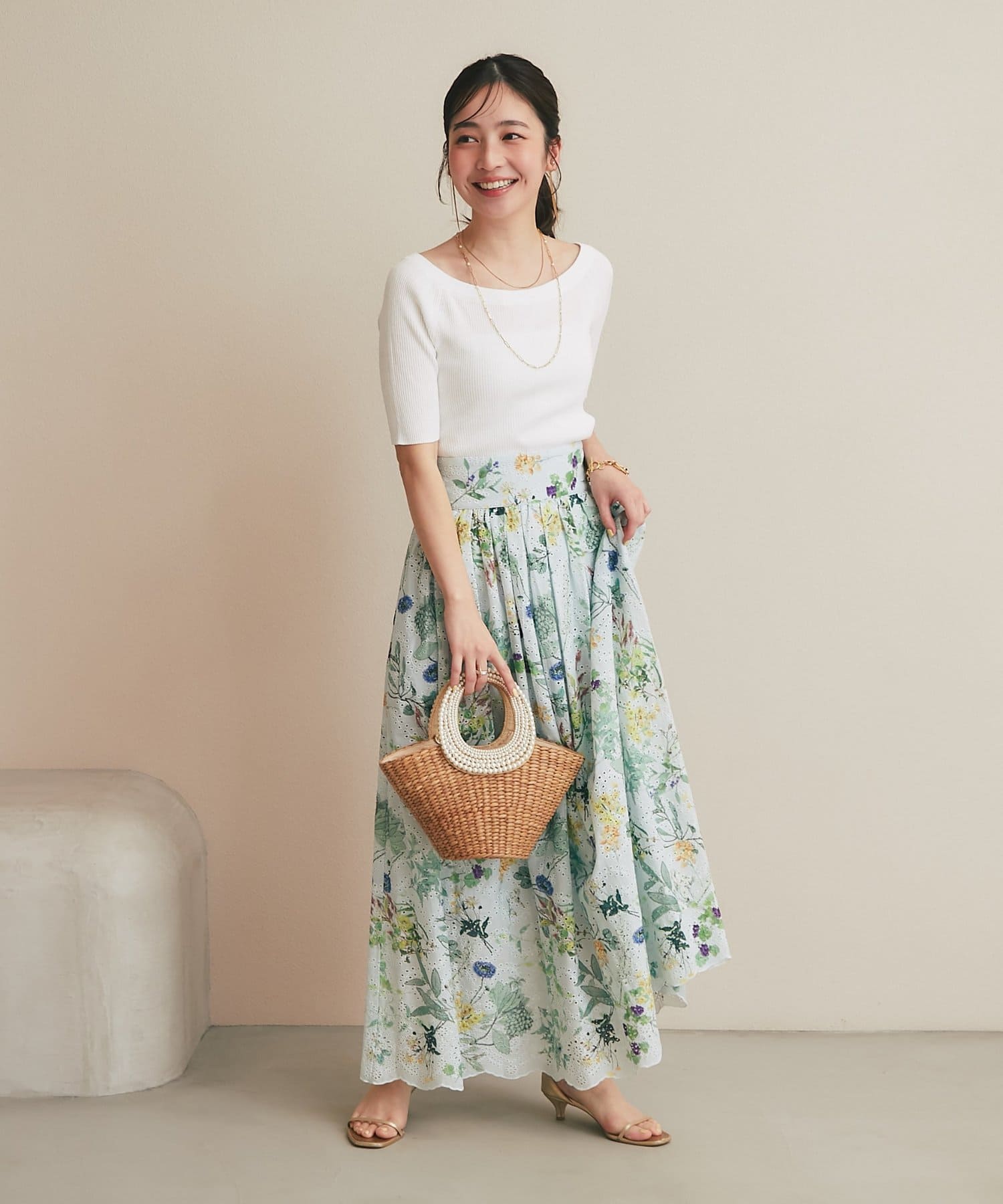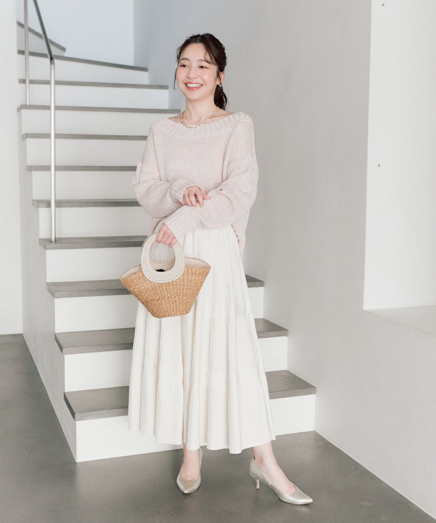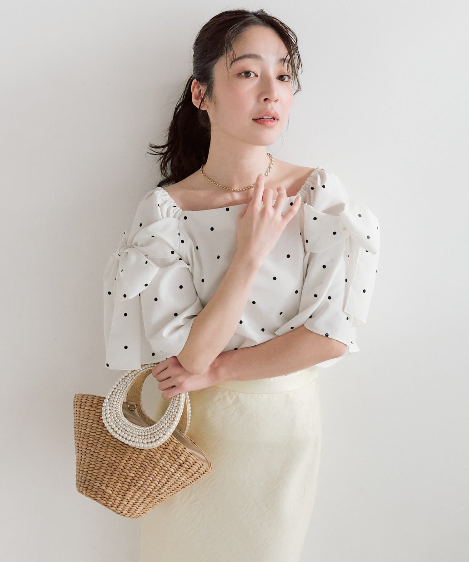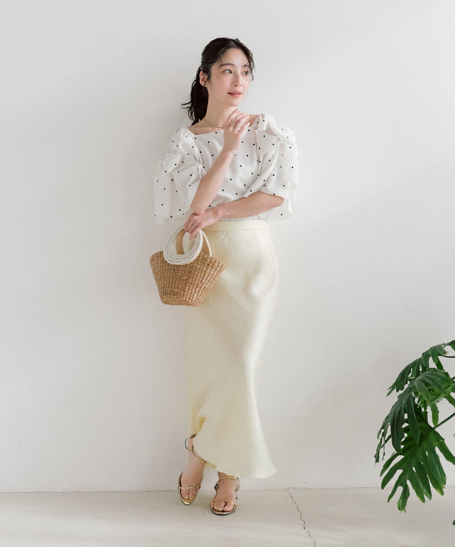 ドット柄スカートなどフェミニンなスカート合わせもおすすめです。