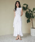 デコルテをきれいに見せながらも肩周りと腕を包み込むようなデザイン。