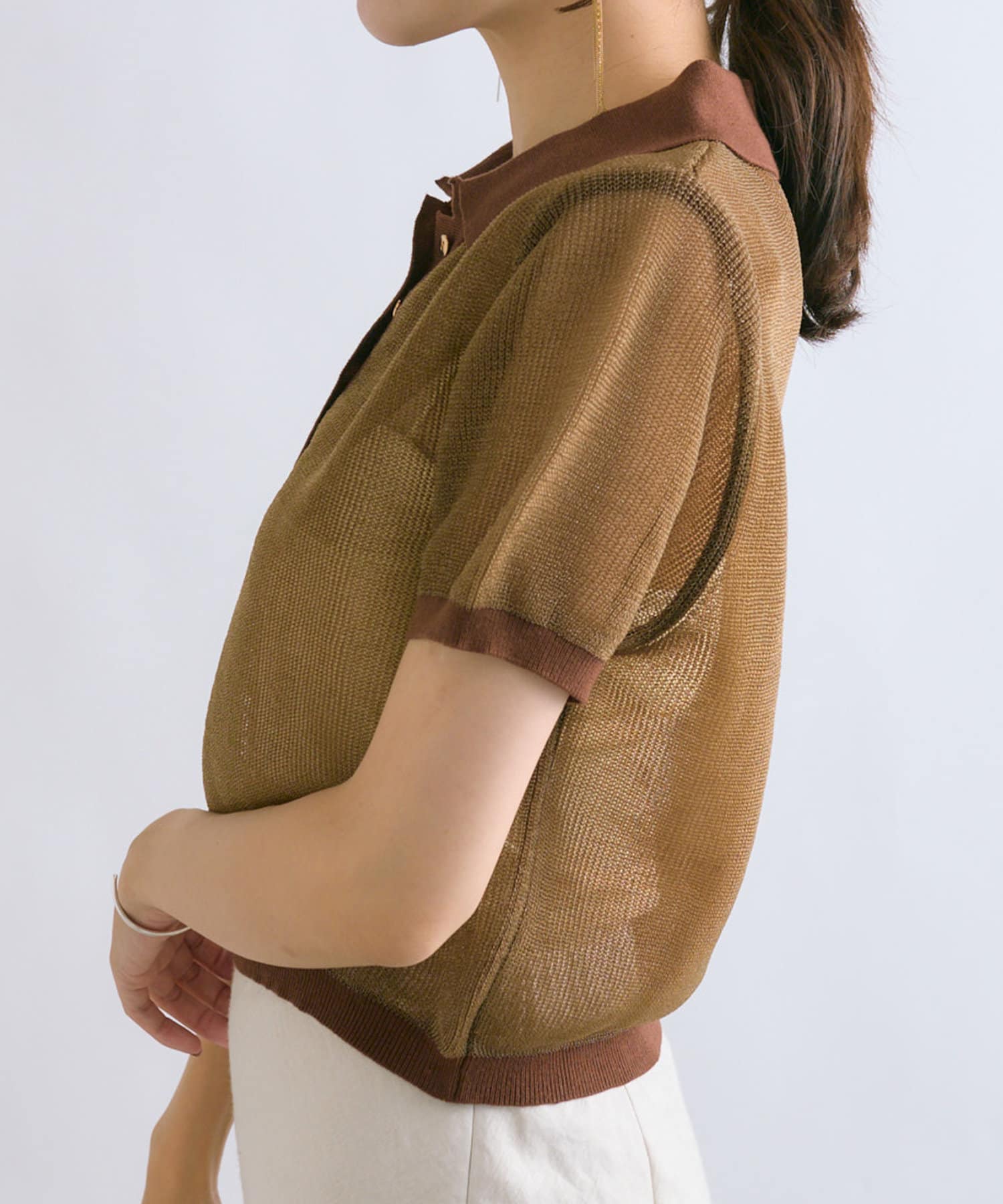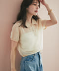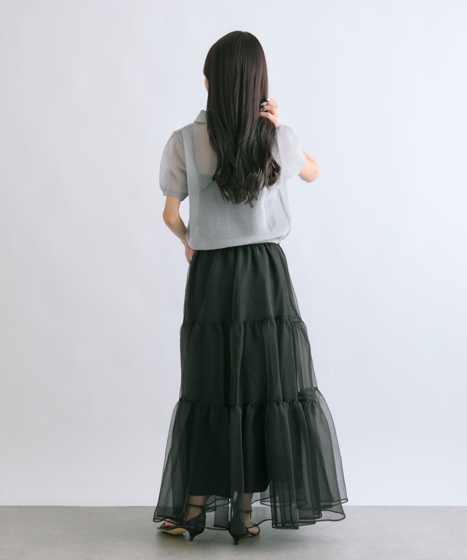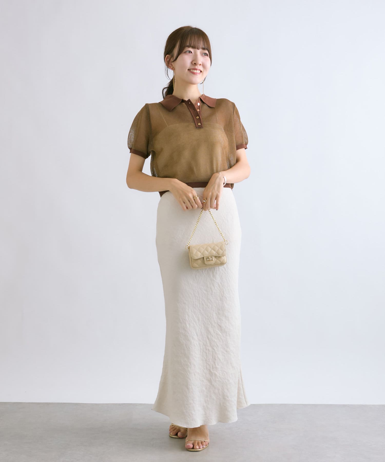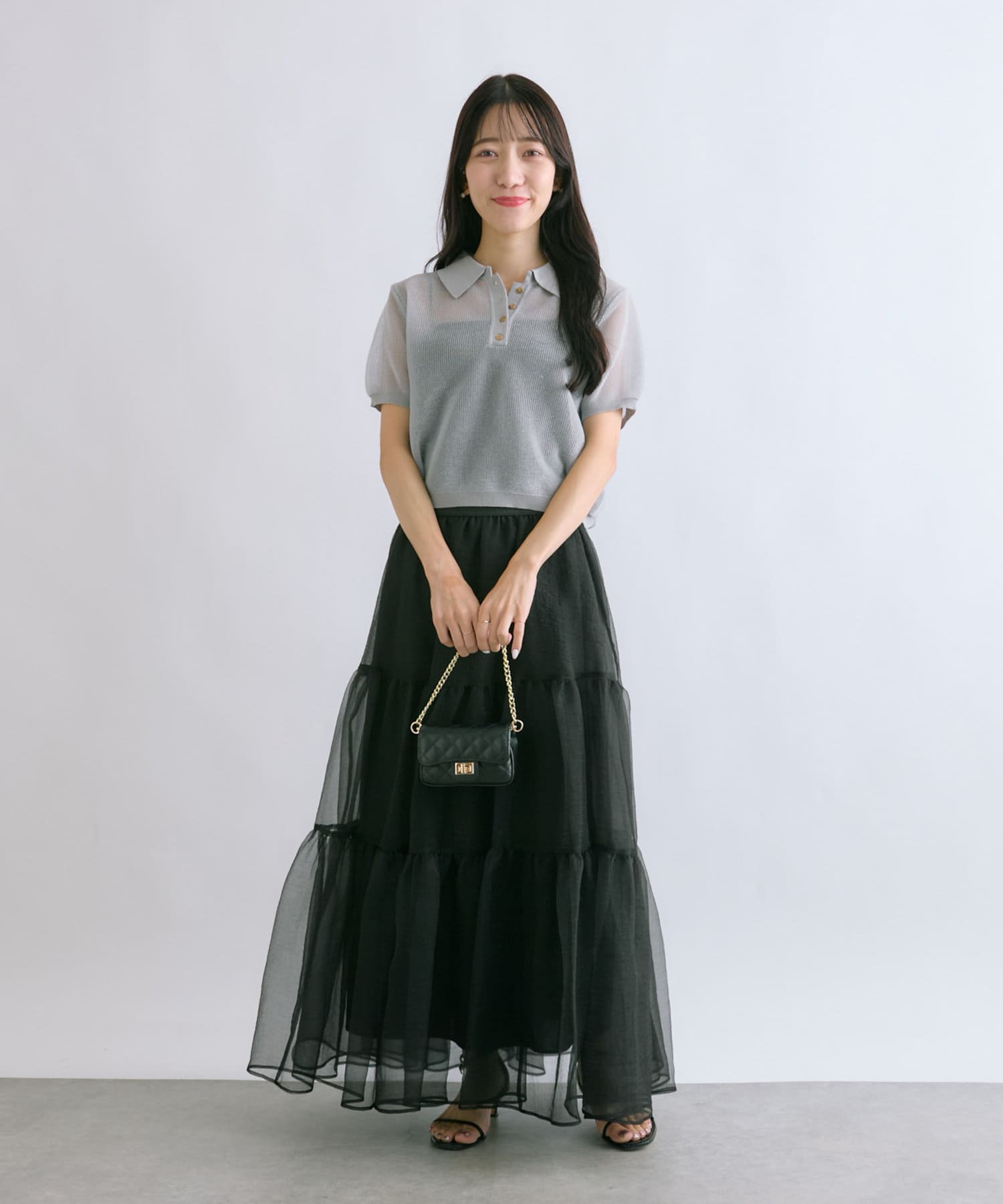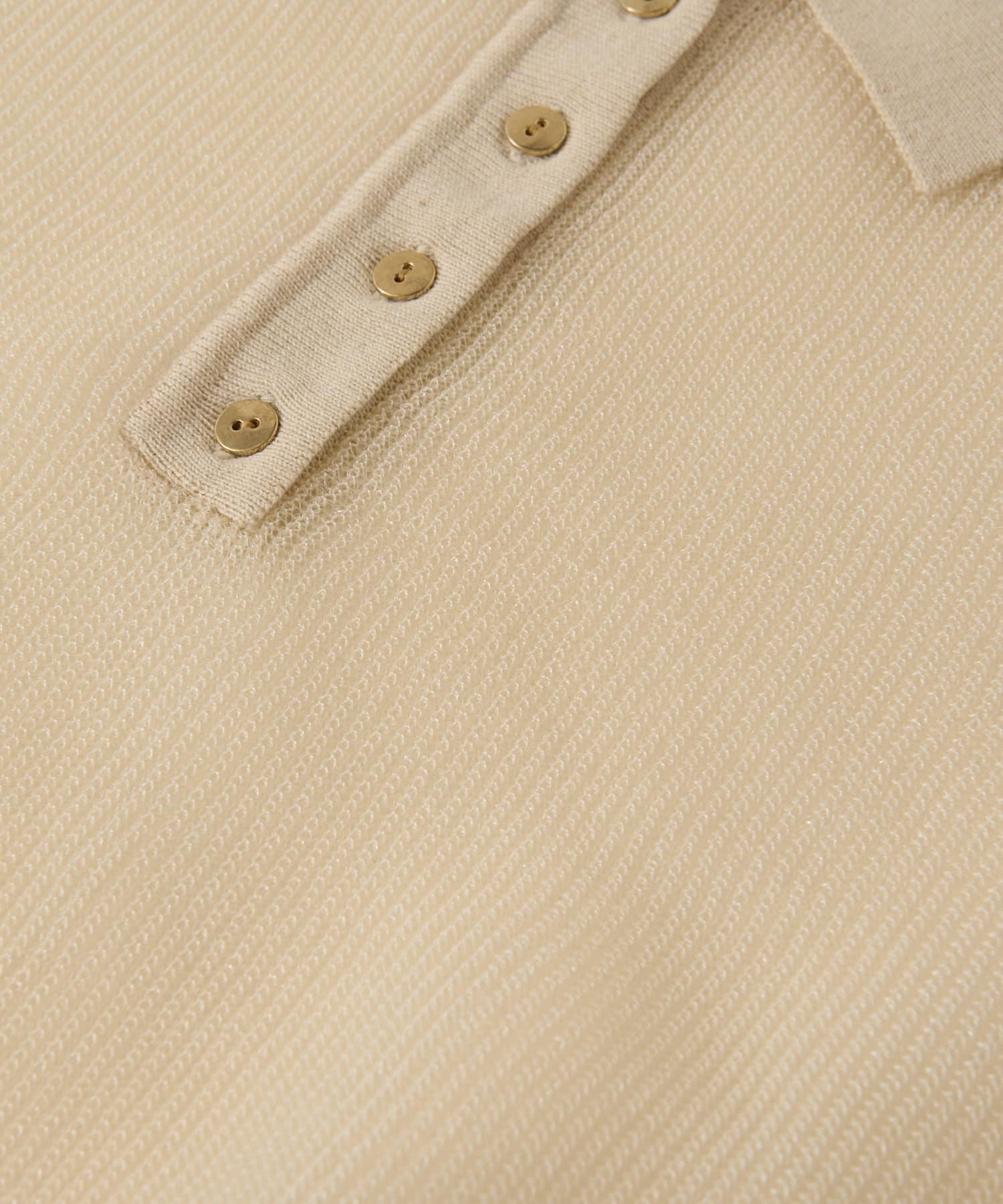 凹凸のある片畦の編地でハリのあるポリエステル糸を使用することで、シルエットにハリを出しています。