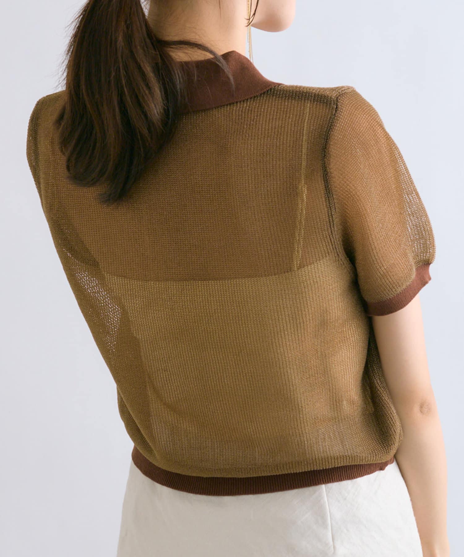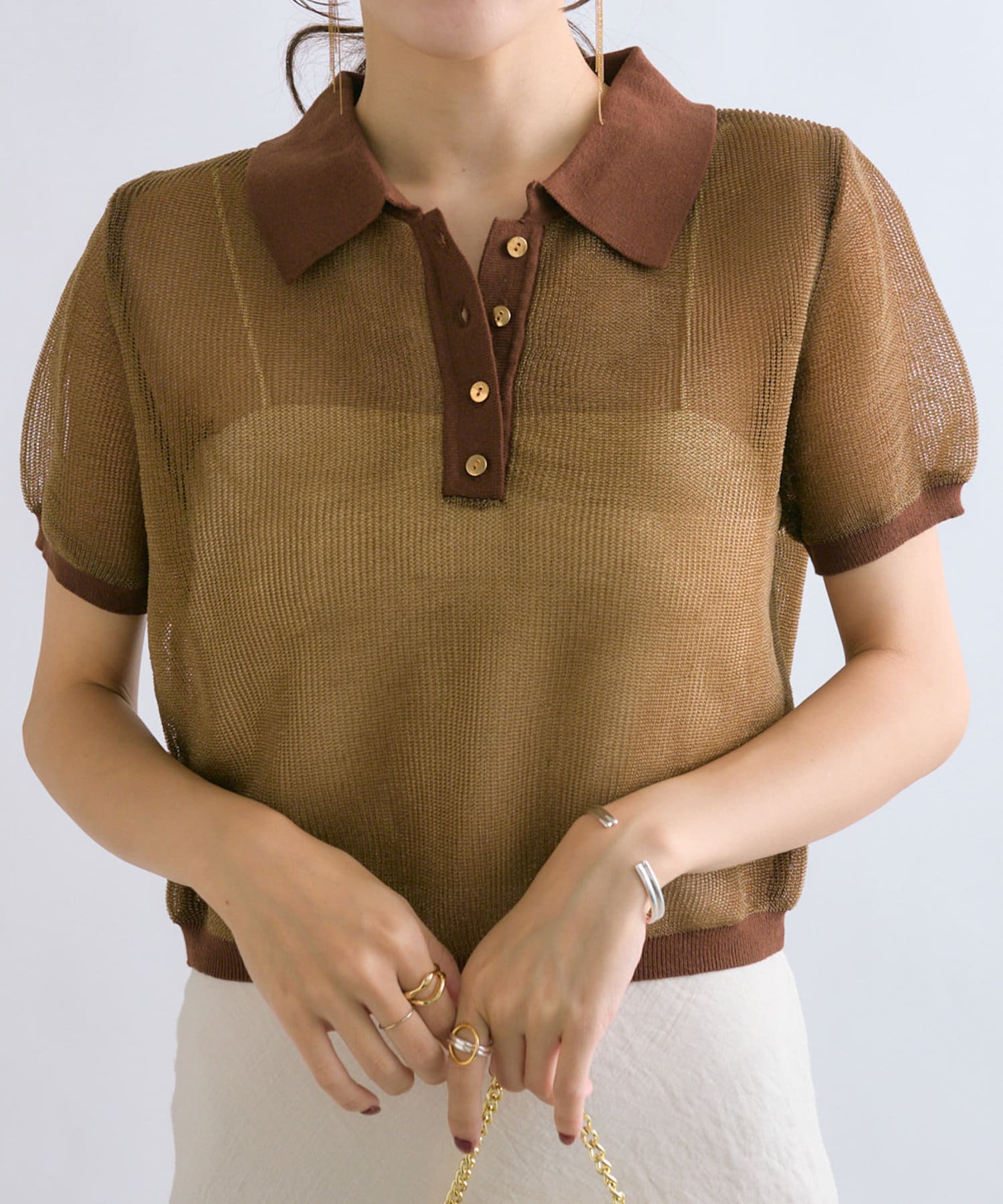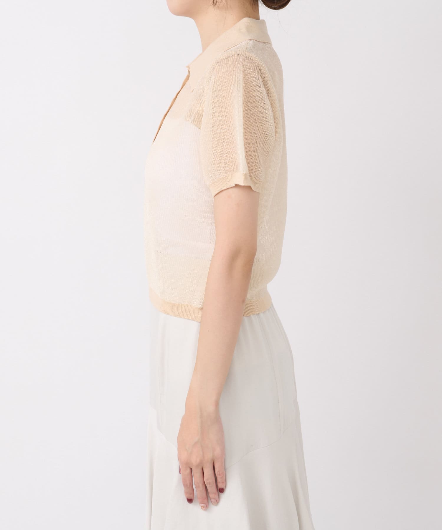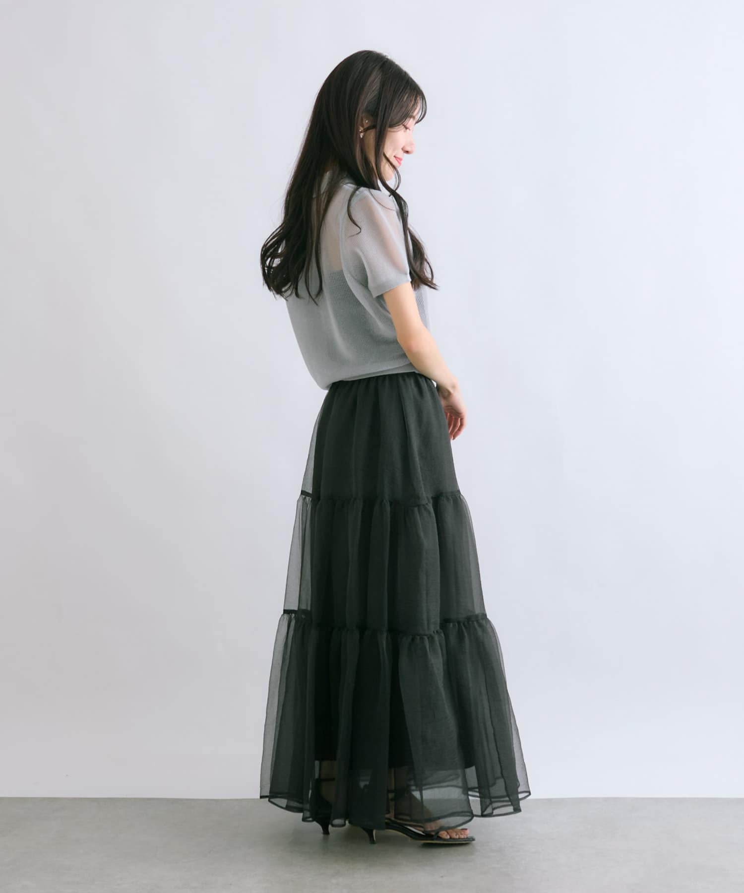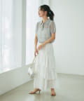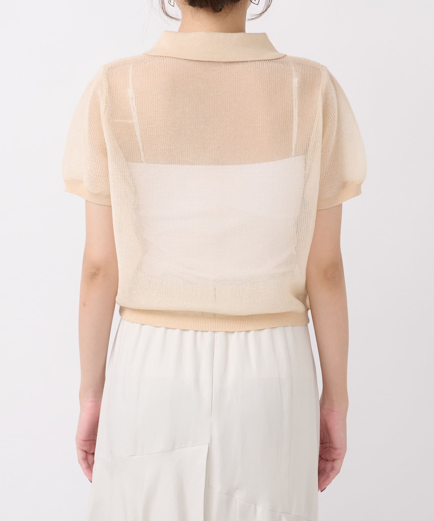 凹凸のある片畦の編地でハリのあるポリエステル糸を使用することで、シルエットにハリを出しています。