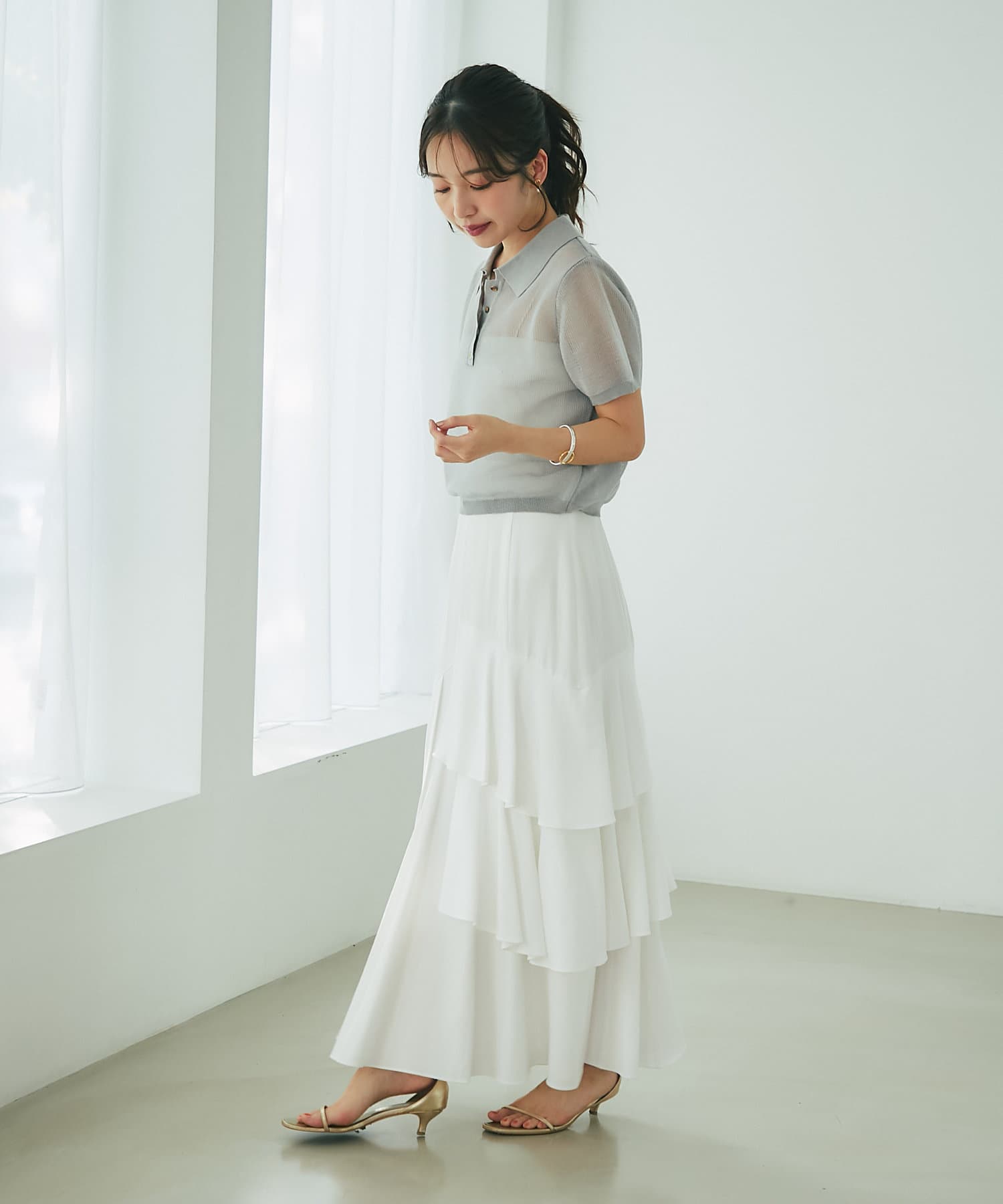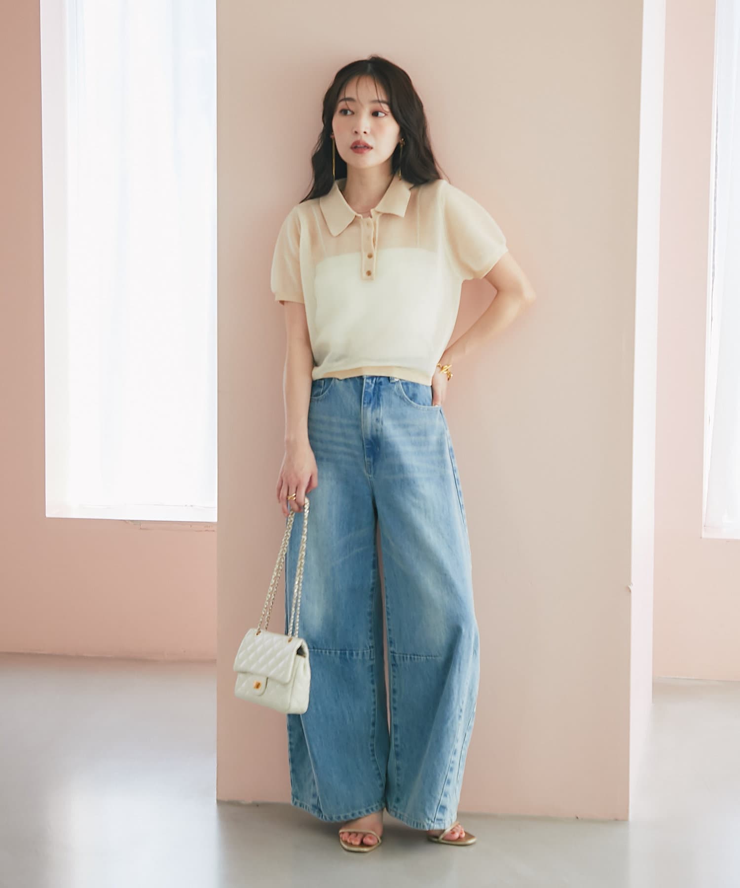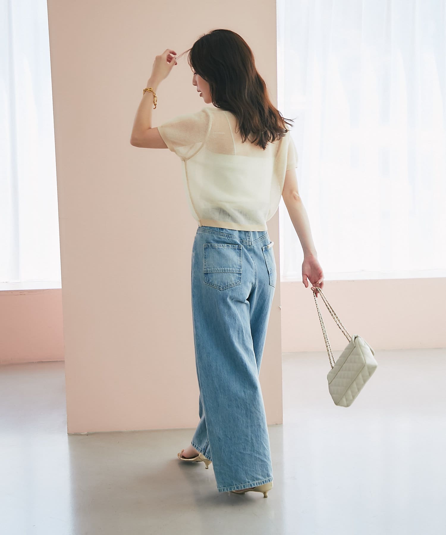 クロップド丈なので、どのボトムでもスタイルUPに。