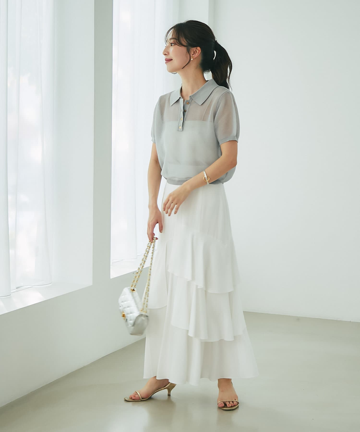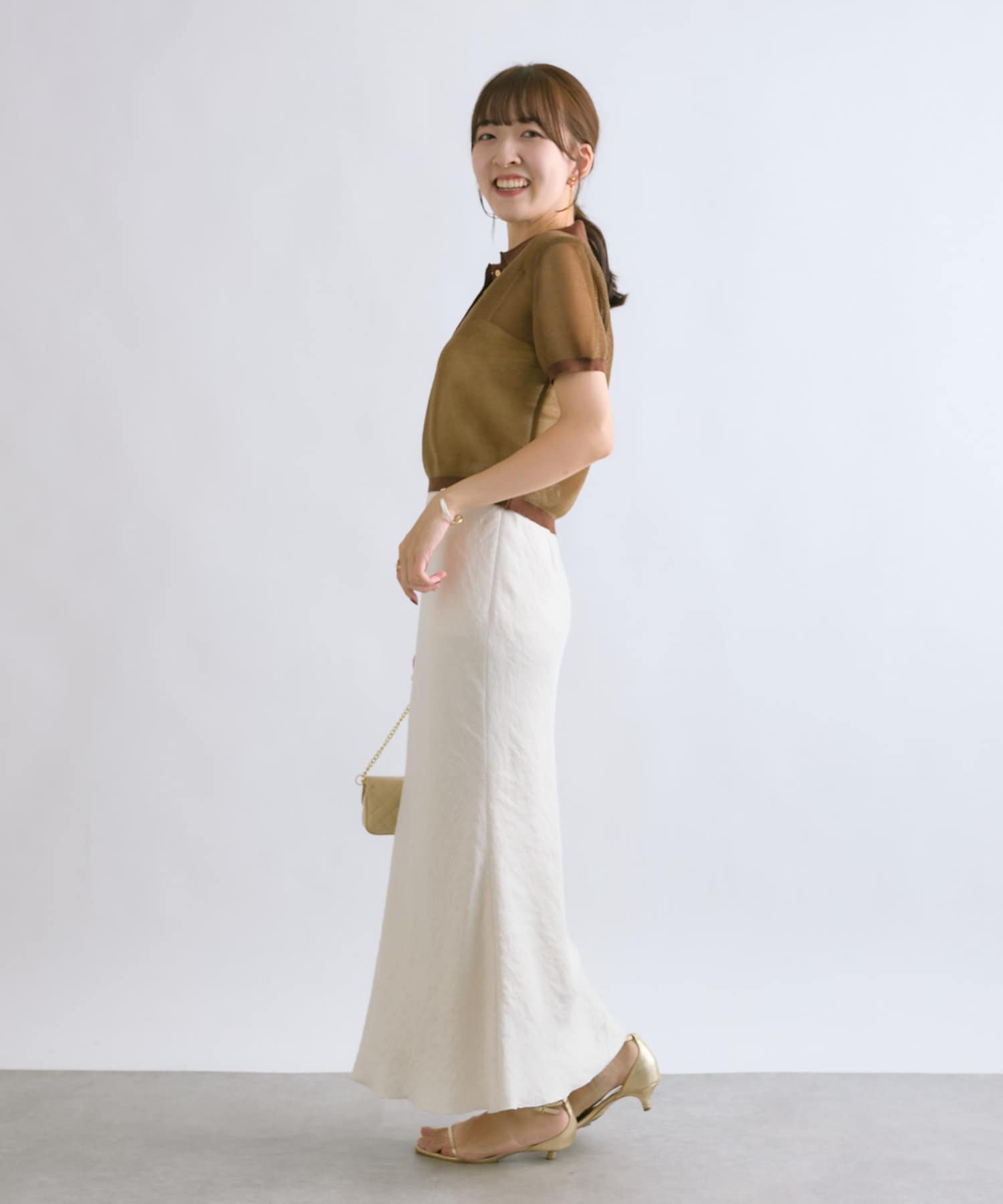 キレイめなボトムス合わせで抜け感のある大人カジュアルに。