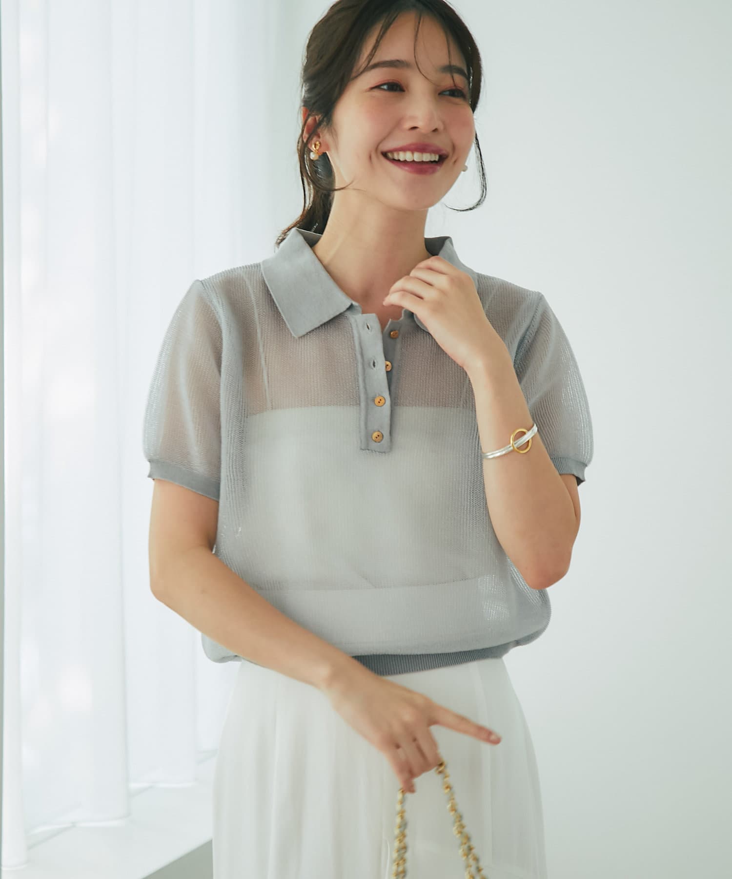 コンパクトなクロップド丈がかわいくて新鮮なバランス。小さな金ボタンもポイントです。