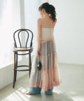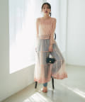 チュールのワンピースだけをデニムに合わせたレイヤードのカジュアルスタイルもおすすめです。