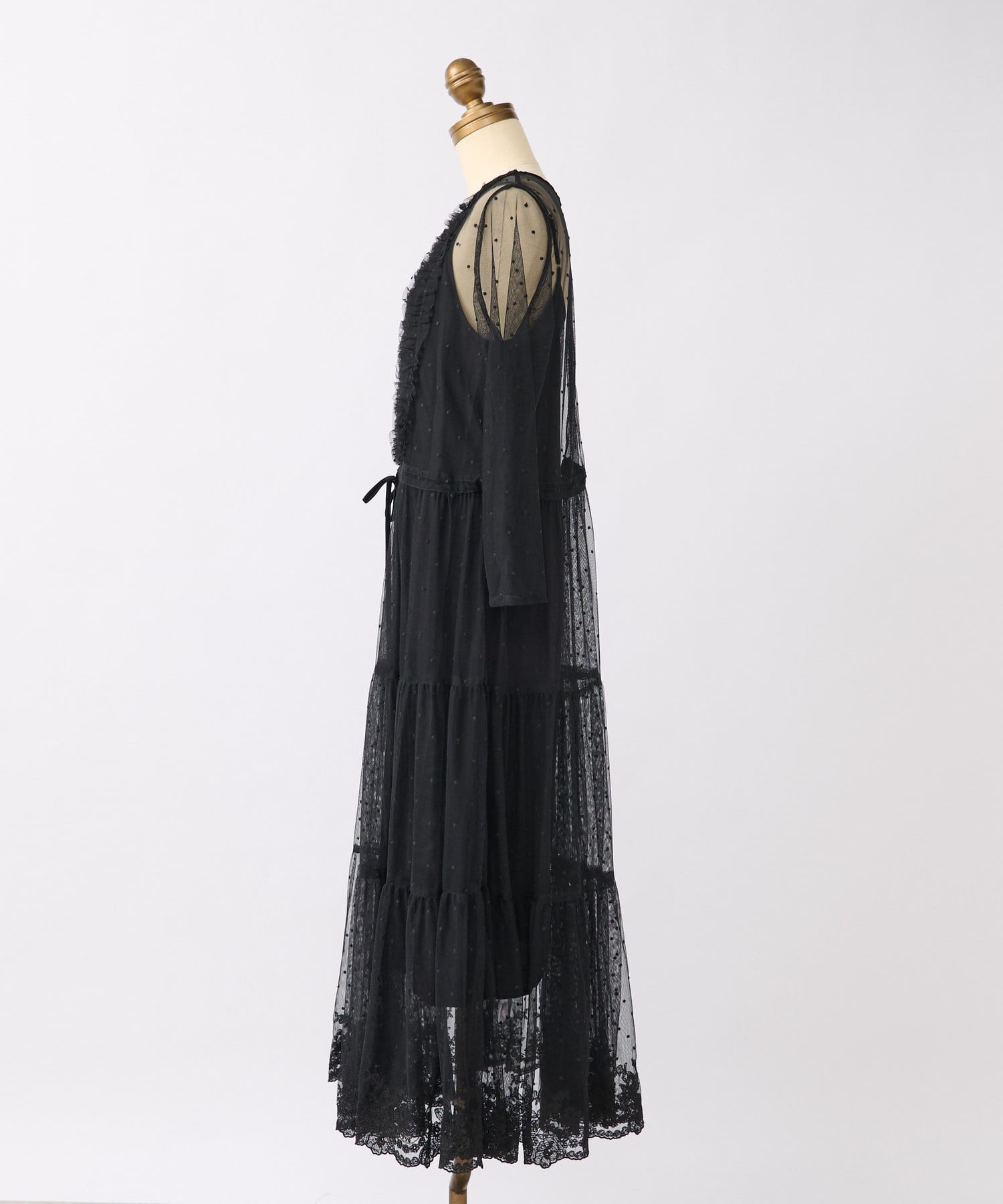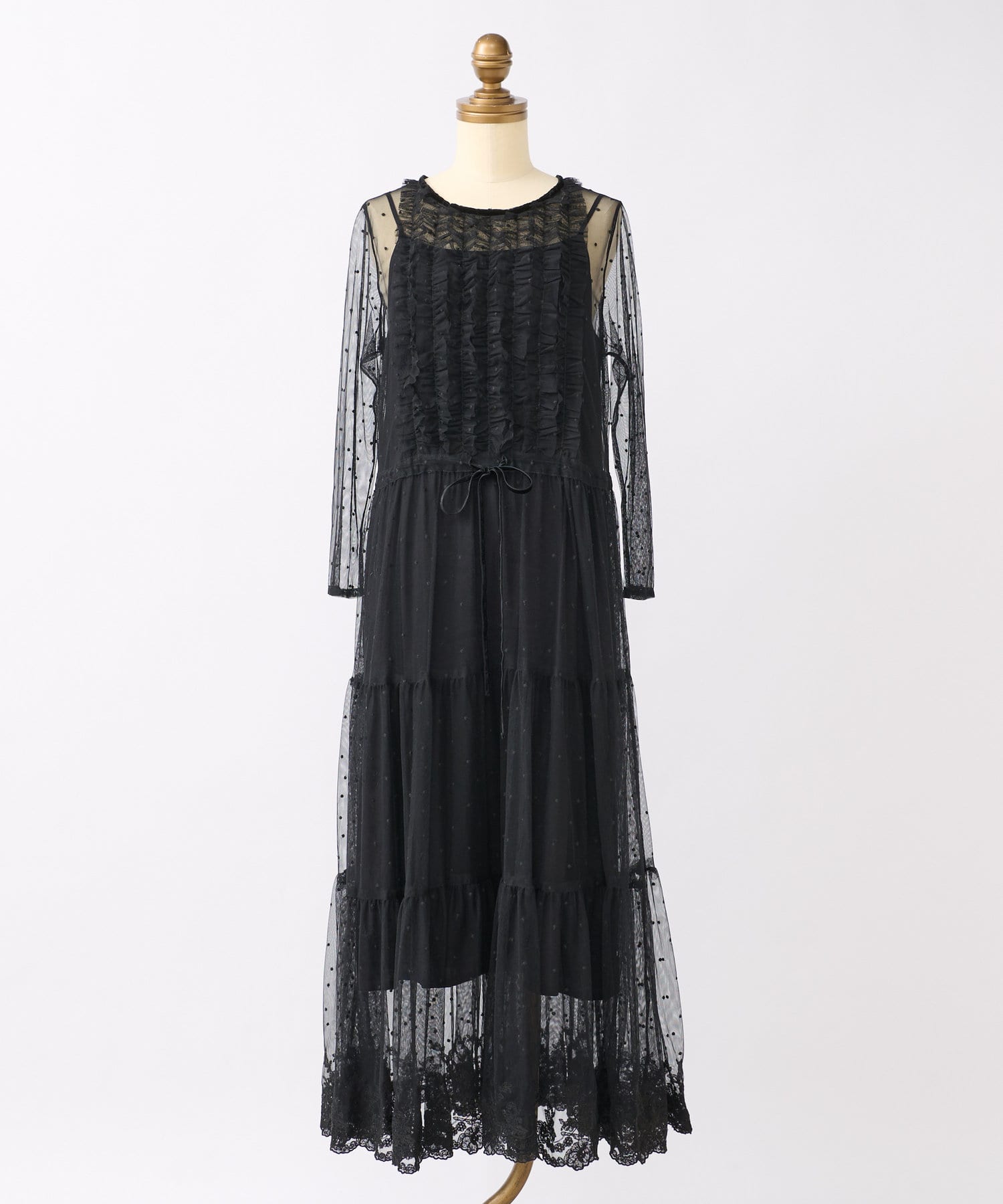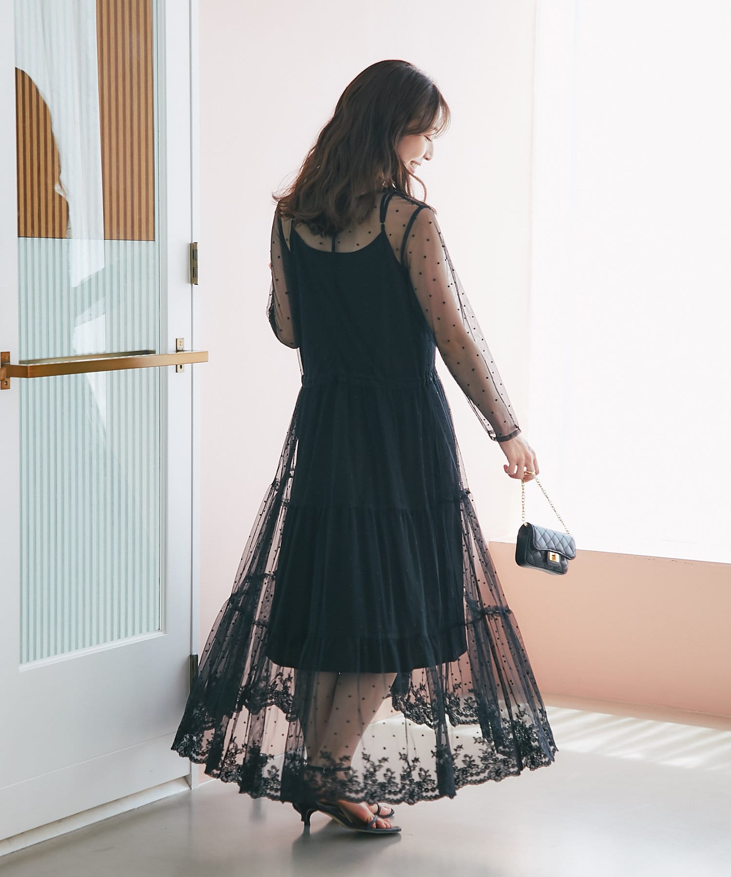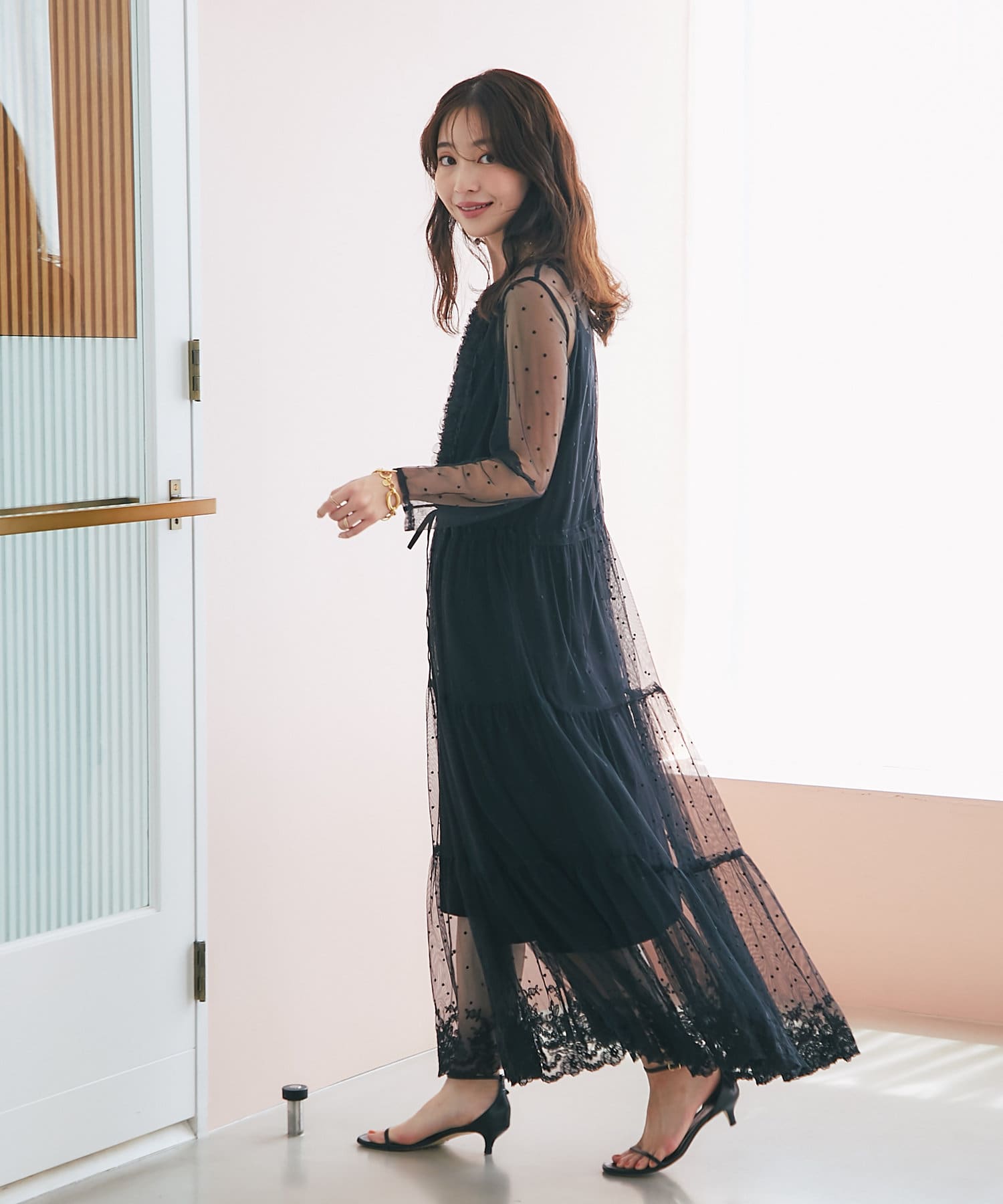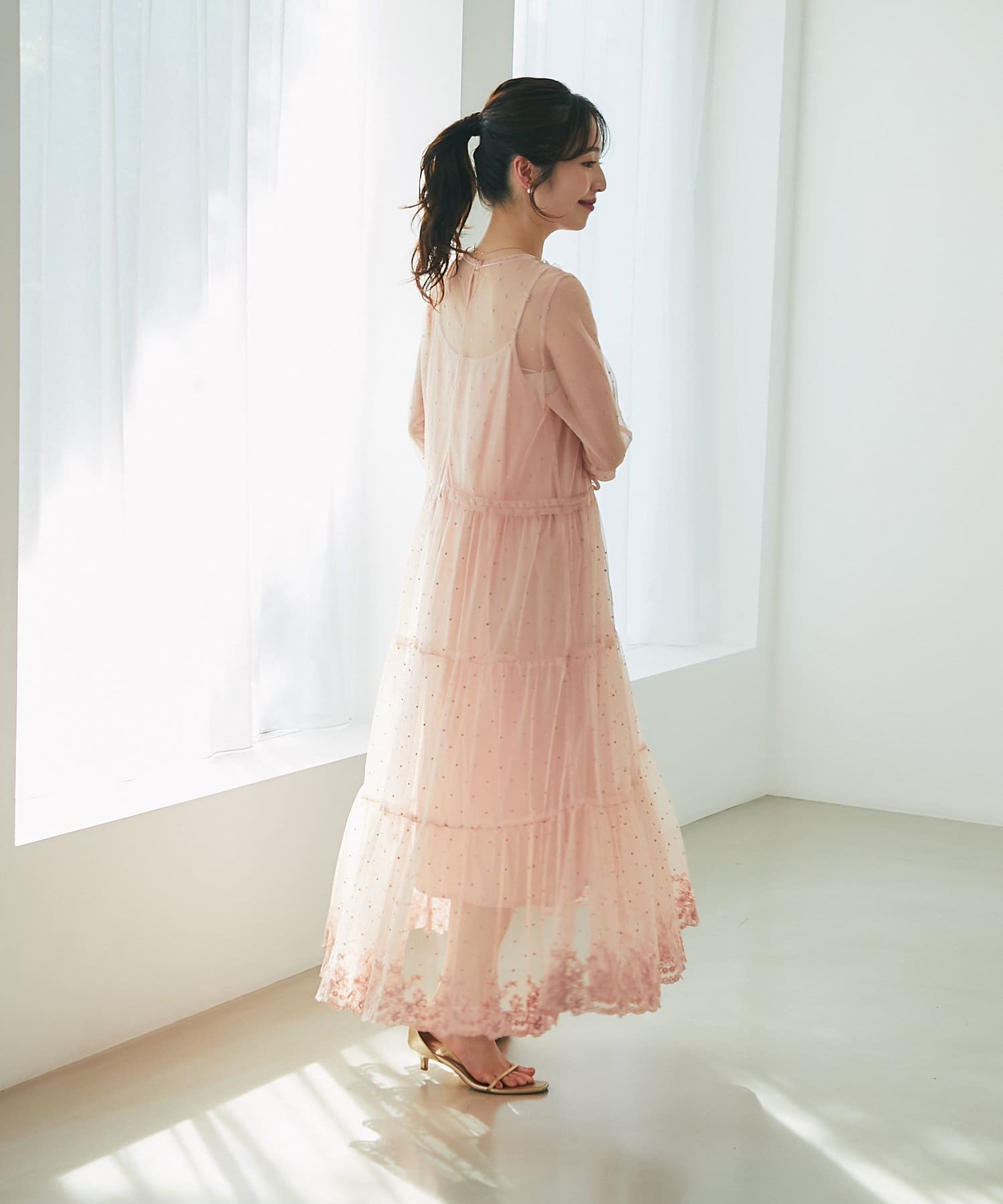 オリジナルの刺繍柄は繊細なドットとスカラップ刺繍の特別感あるワンピース。
