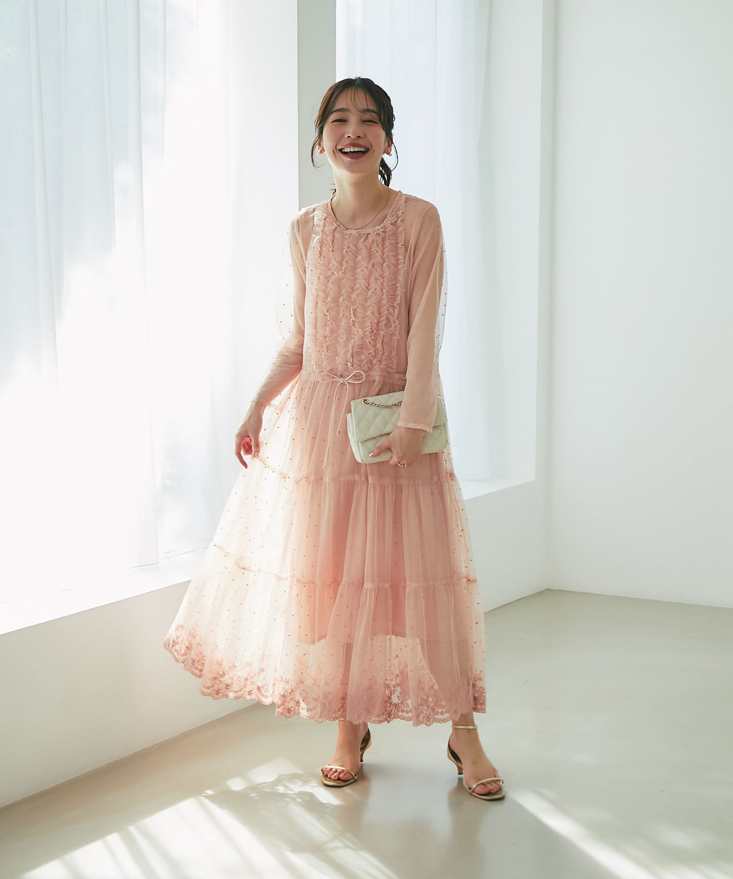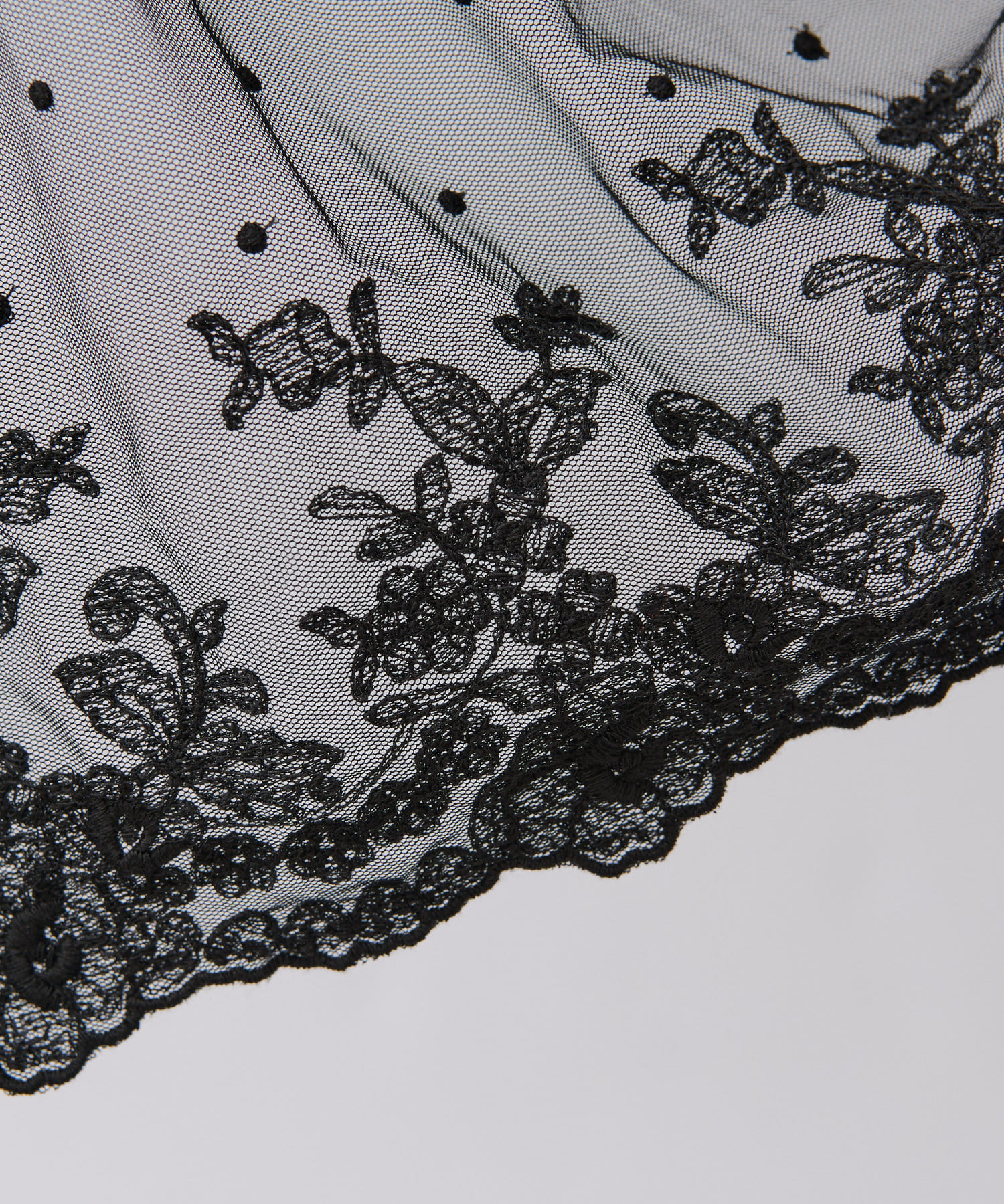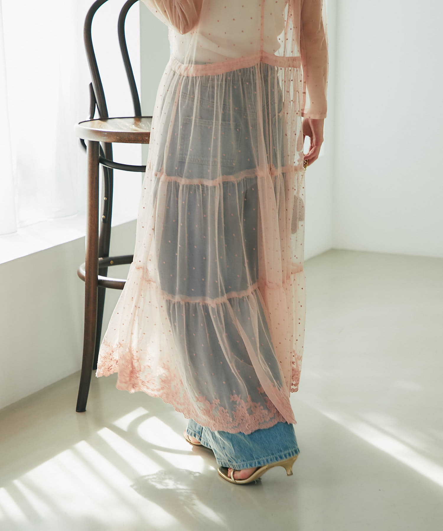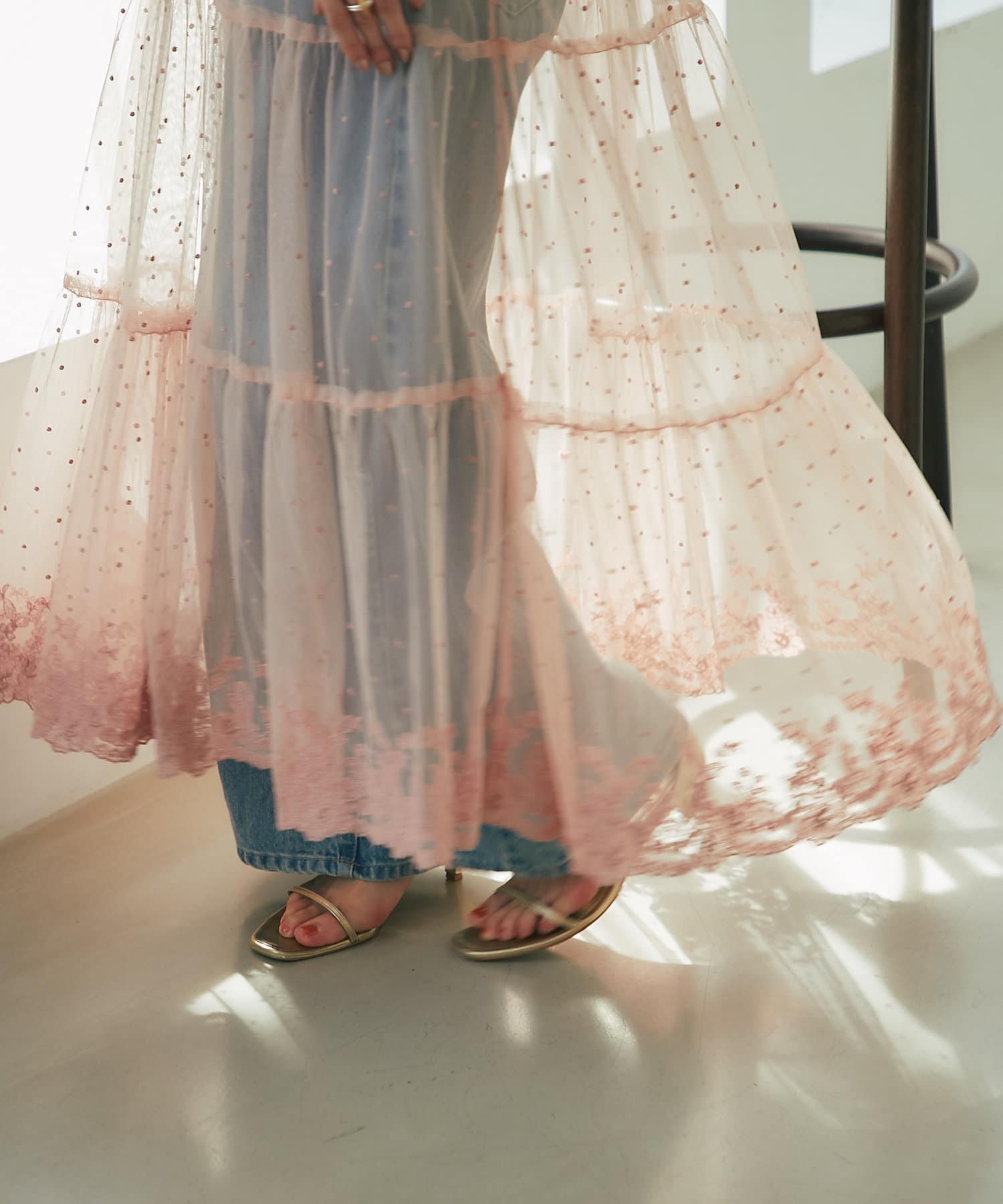 ・シアーな素材感と繊細な刺繍で華やかな印象