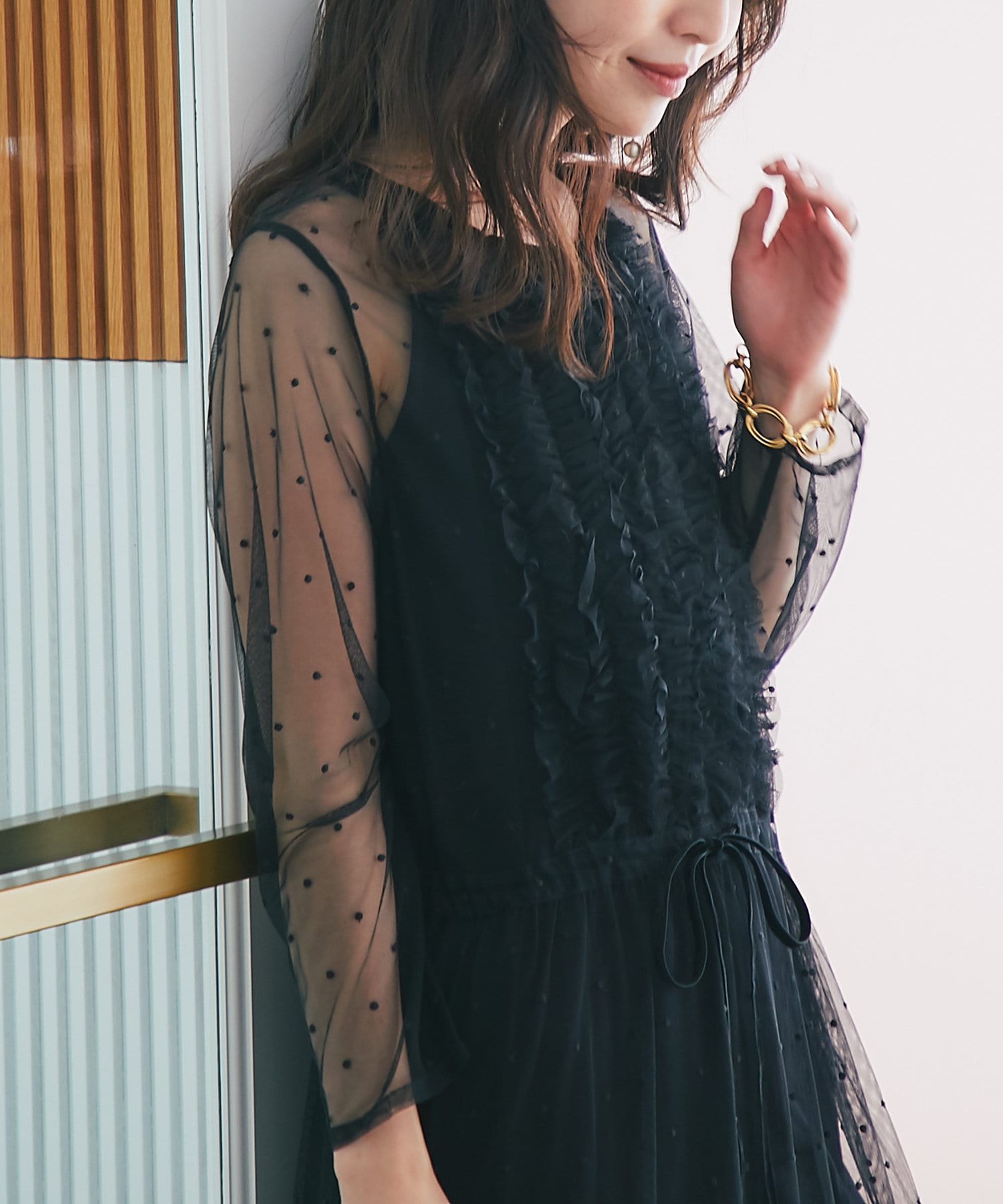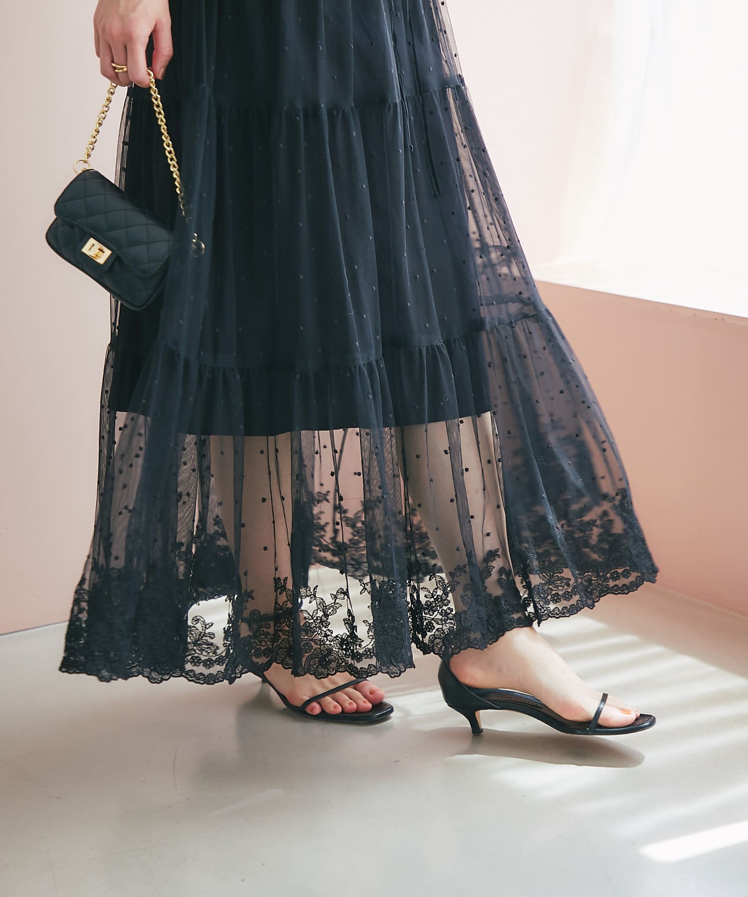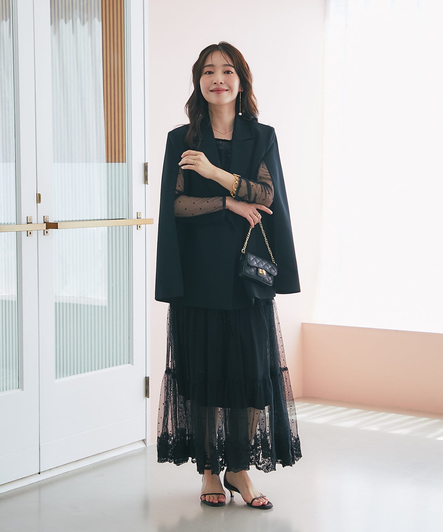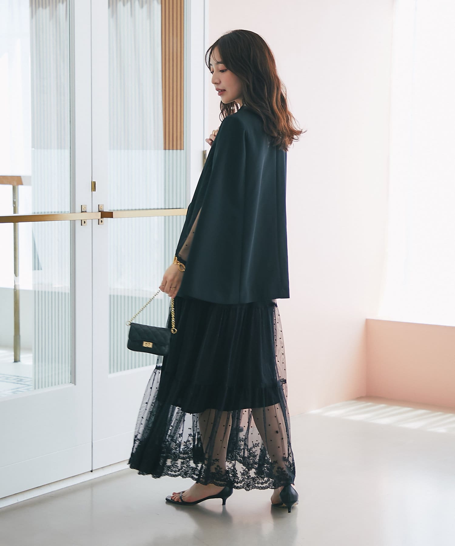 ・シアーな素材感と繊細な刺繍で華やかな印象
