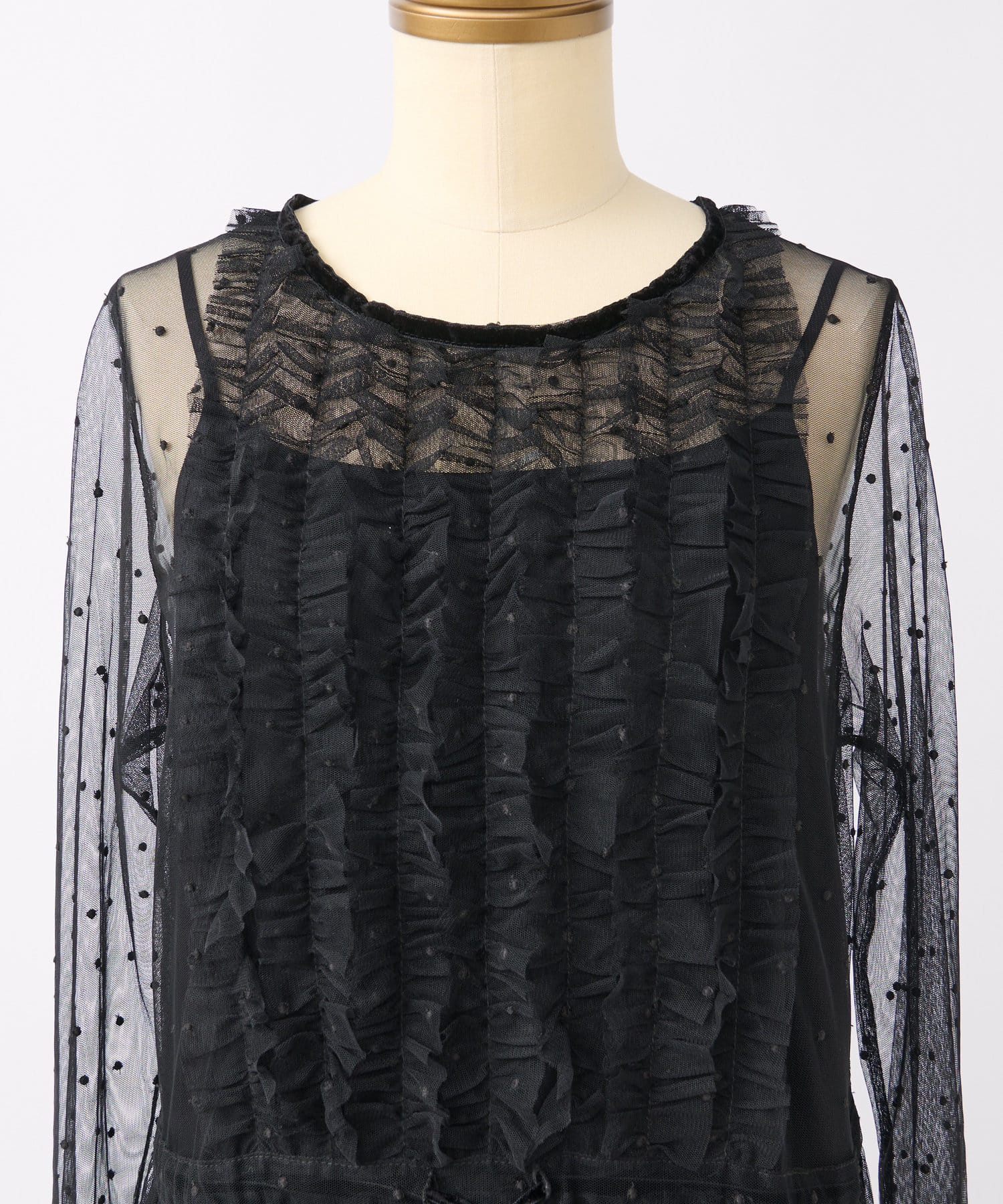 上身はフリル、スカート部分はティアードでボリュームを出したデザイン。