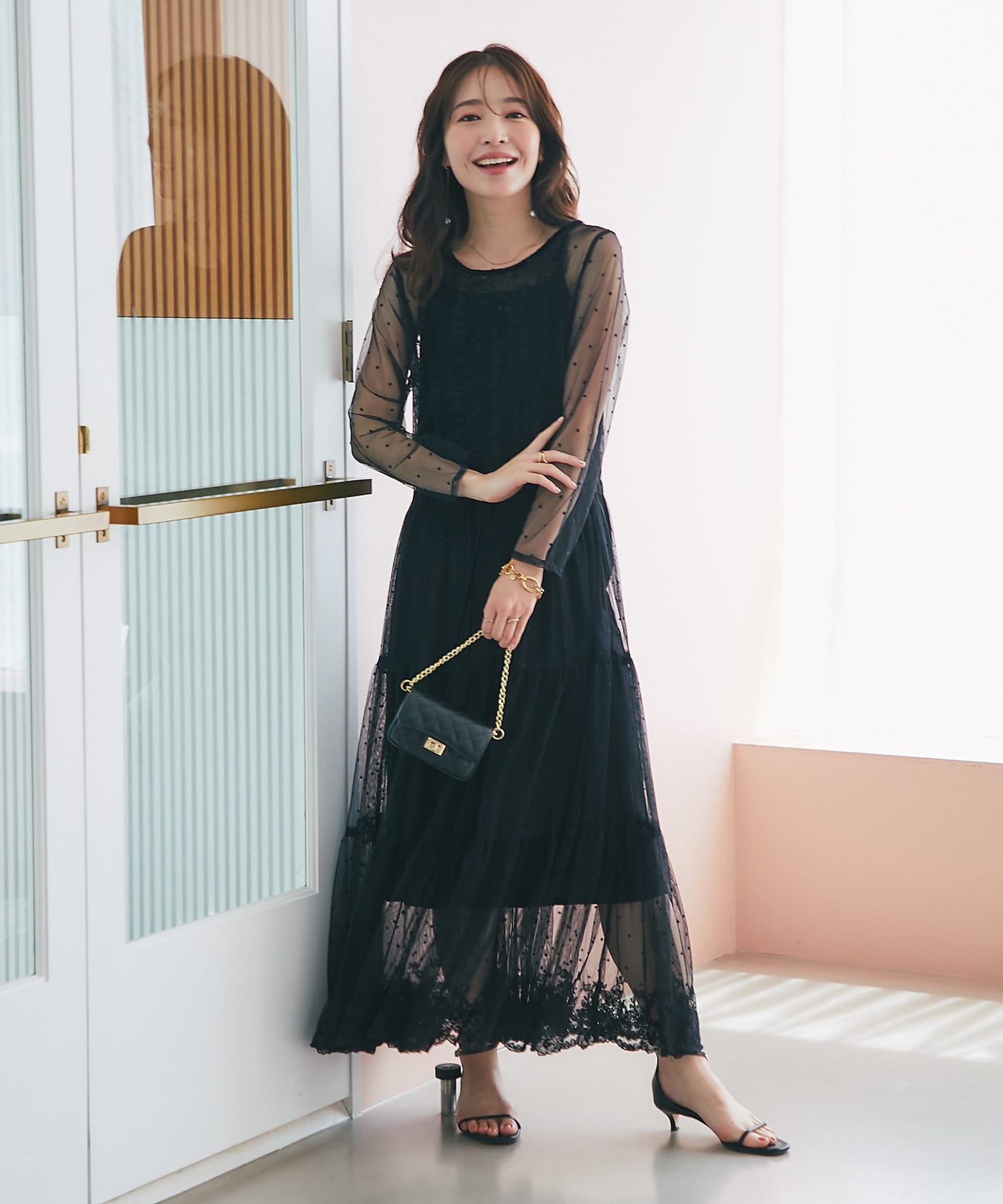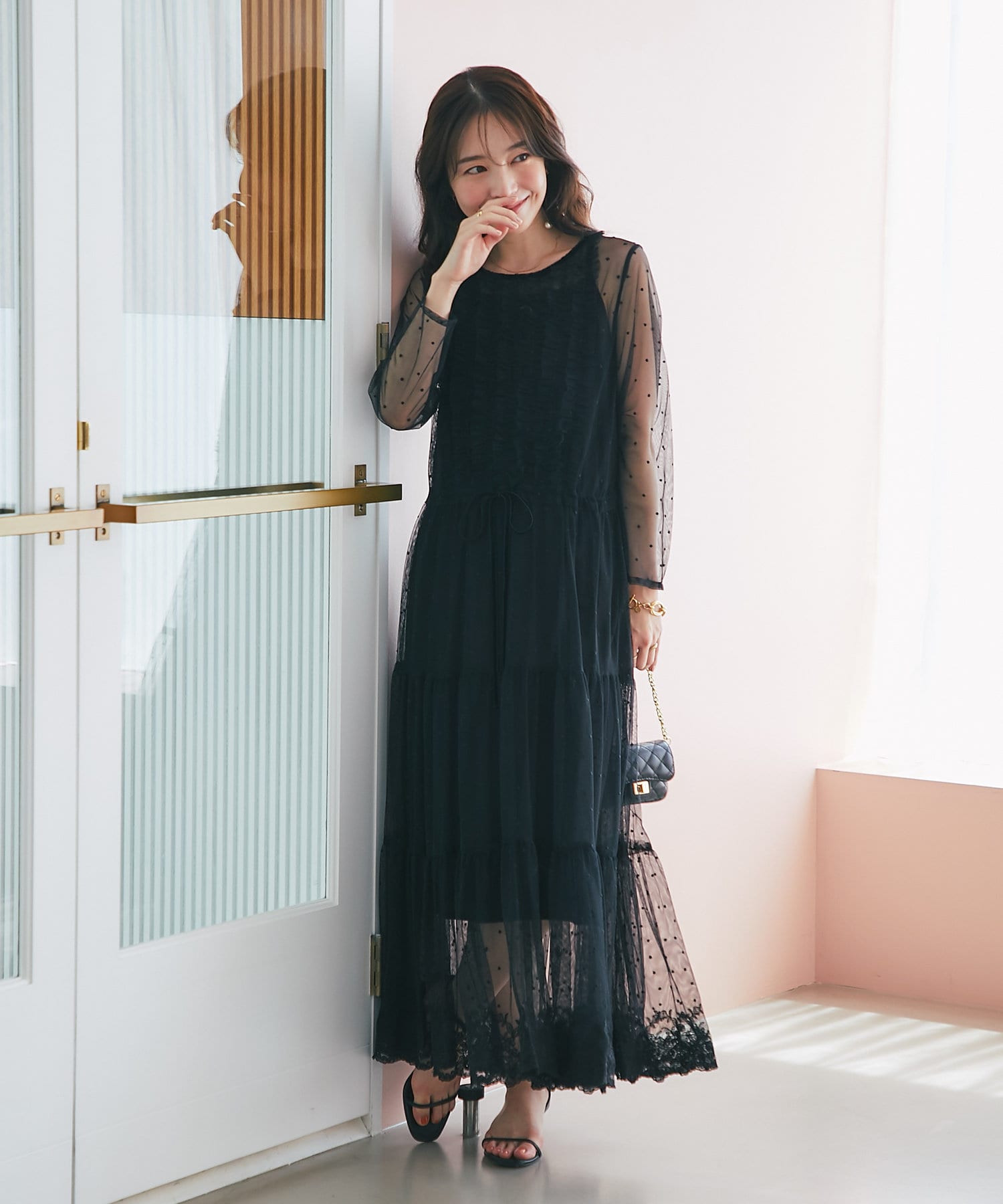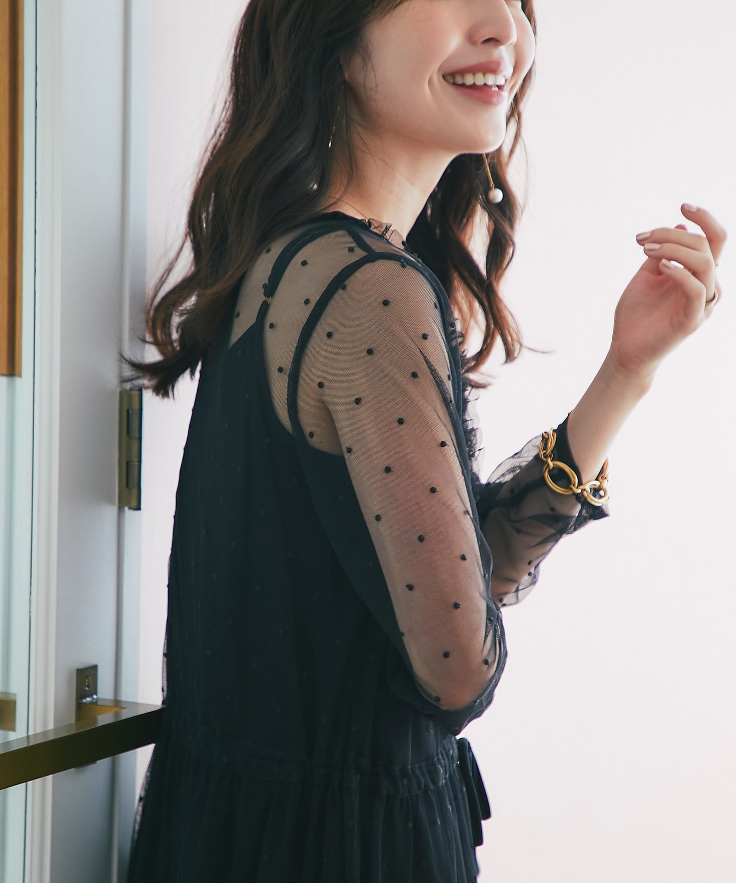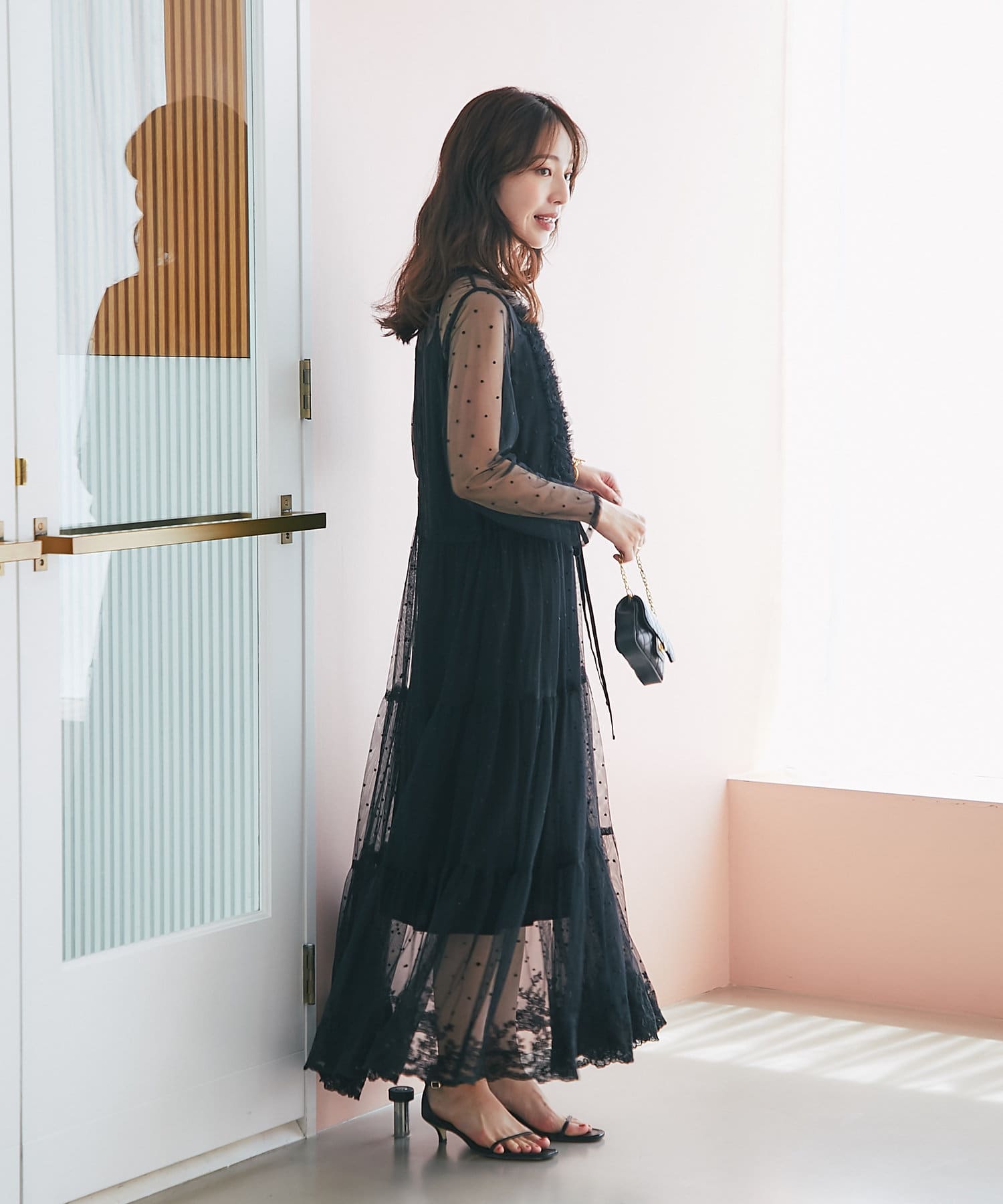 付属のインナーはワンピースよりも着丈を短くしており、足元を軽くさらに上品に見せてくれます。
