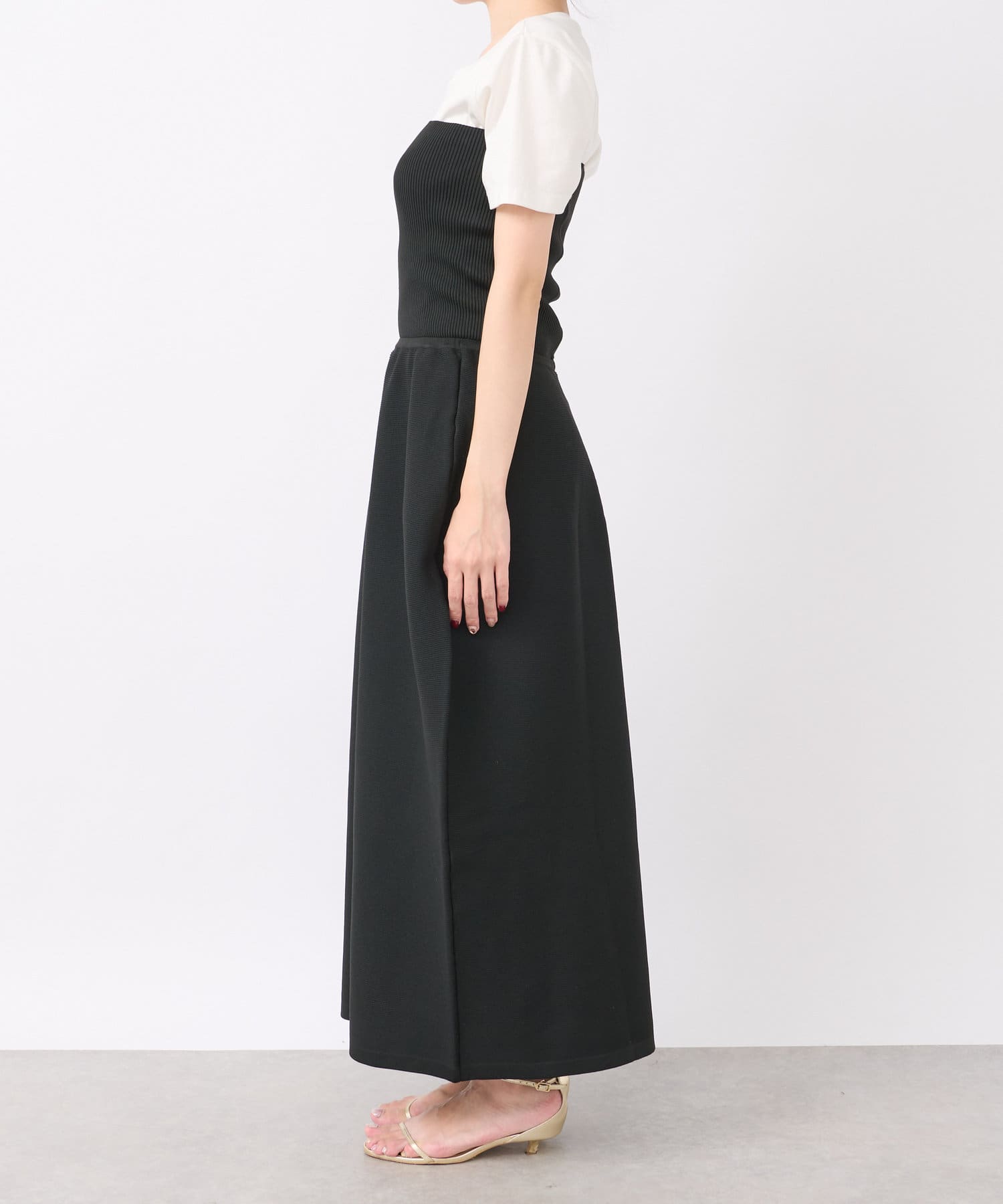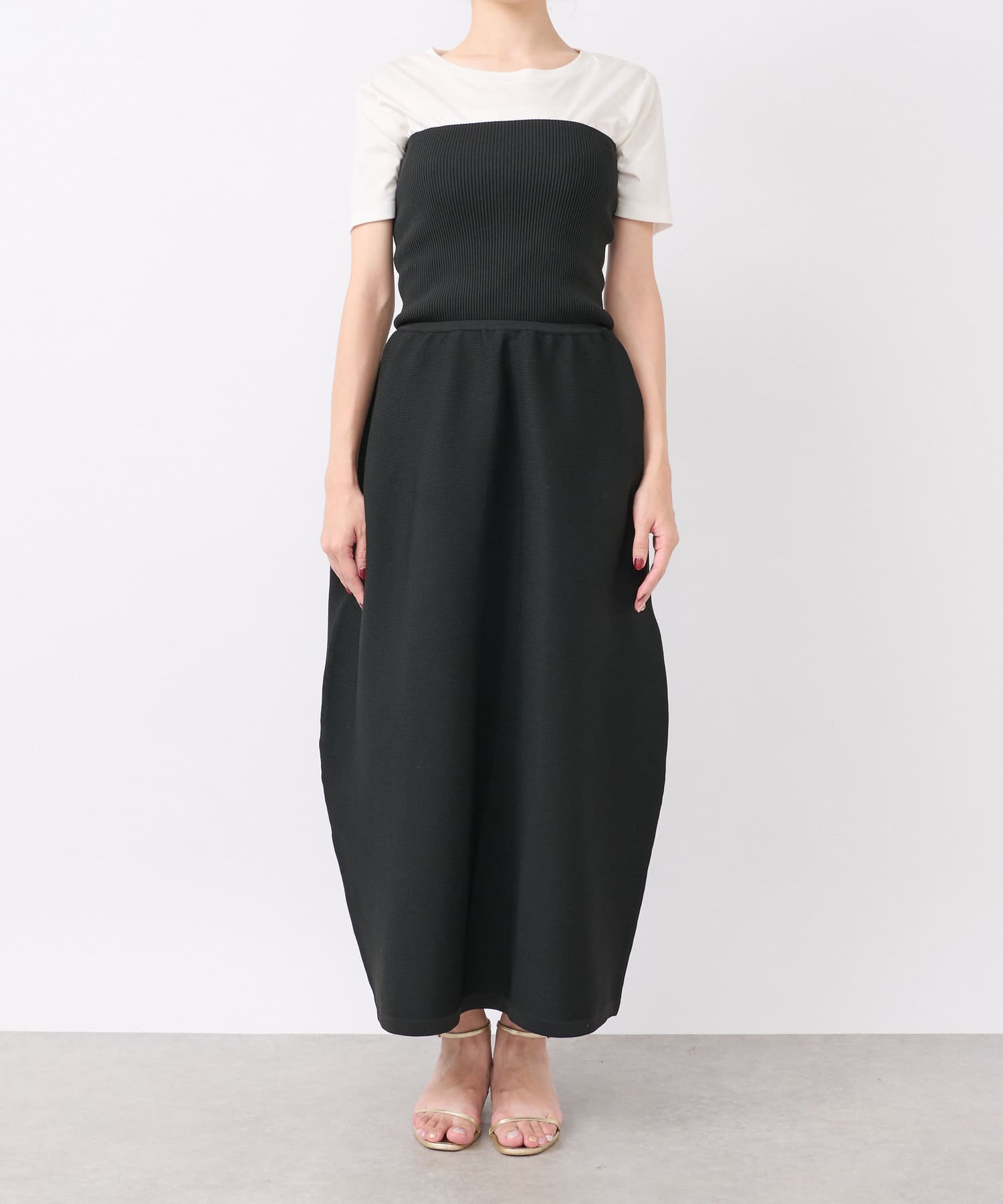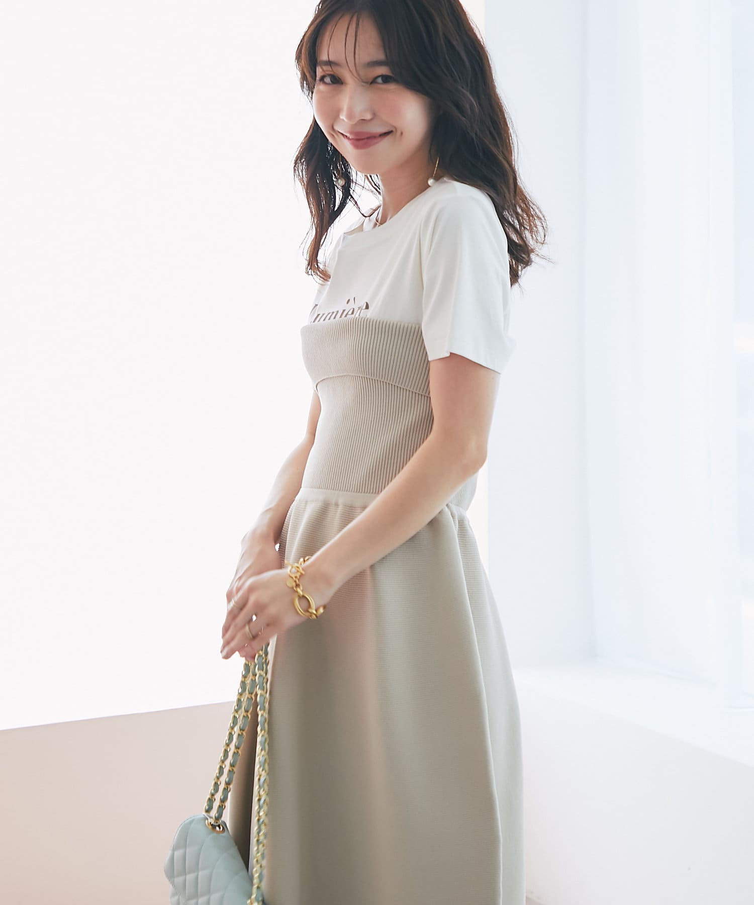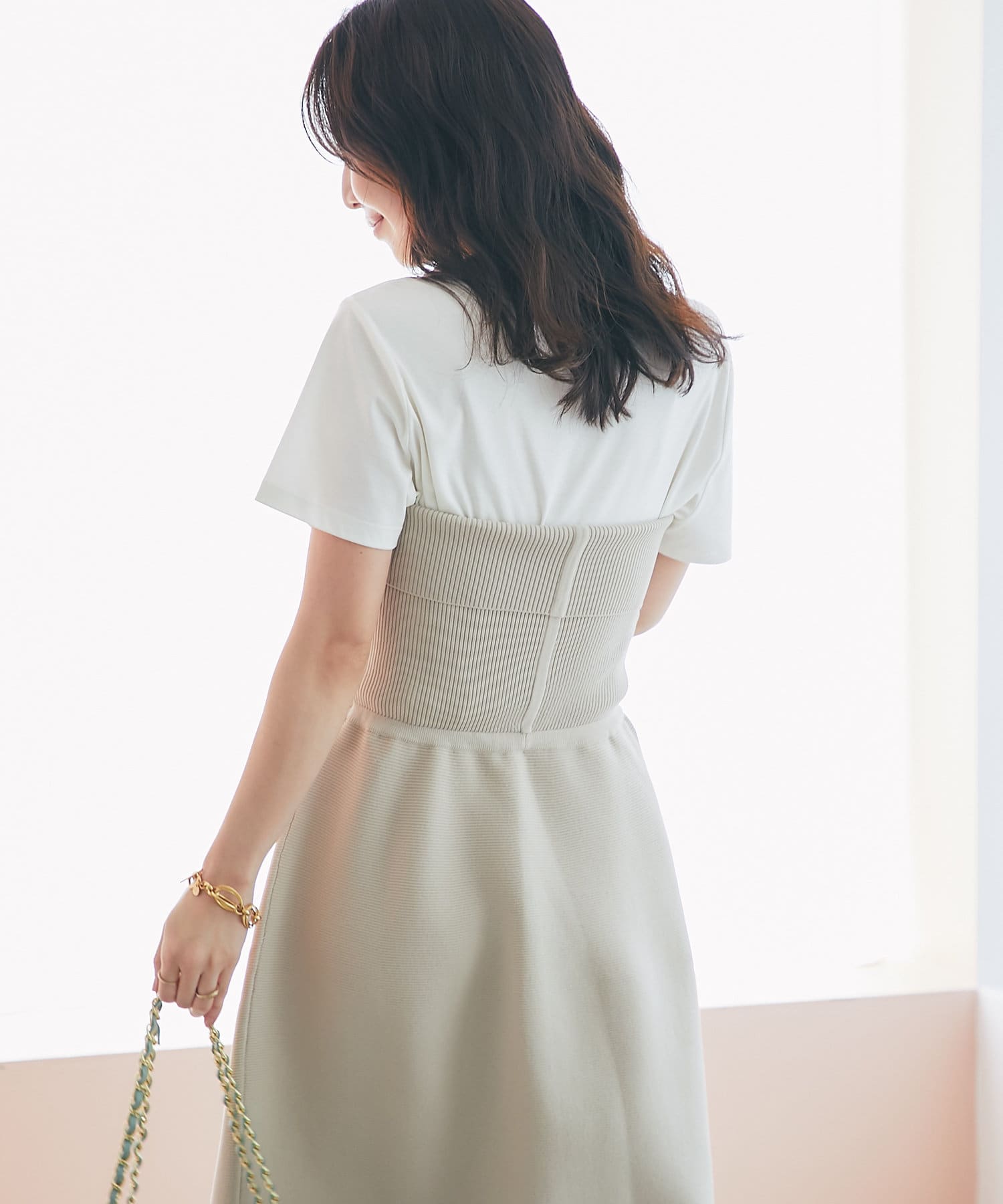 上身頃はリブ編みでフィットするようにストレッチを効かせたフェミニンなワンピース。