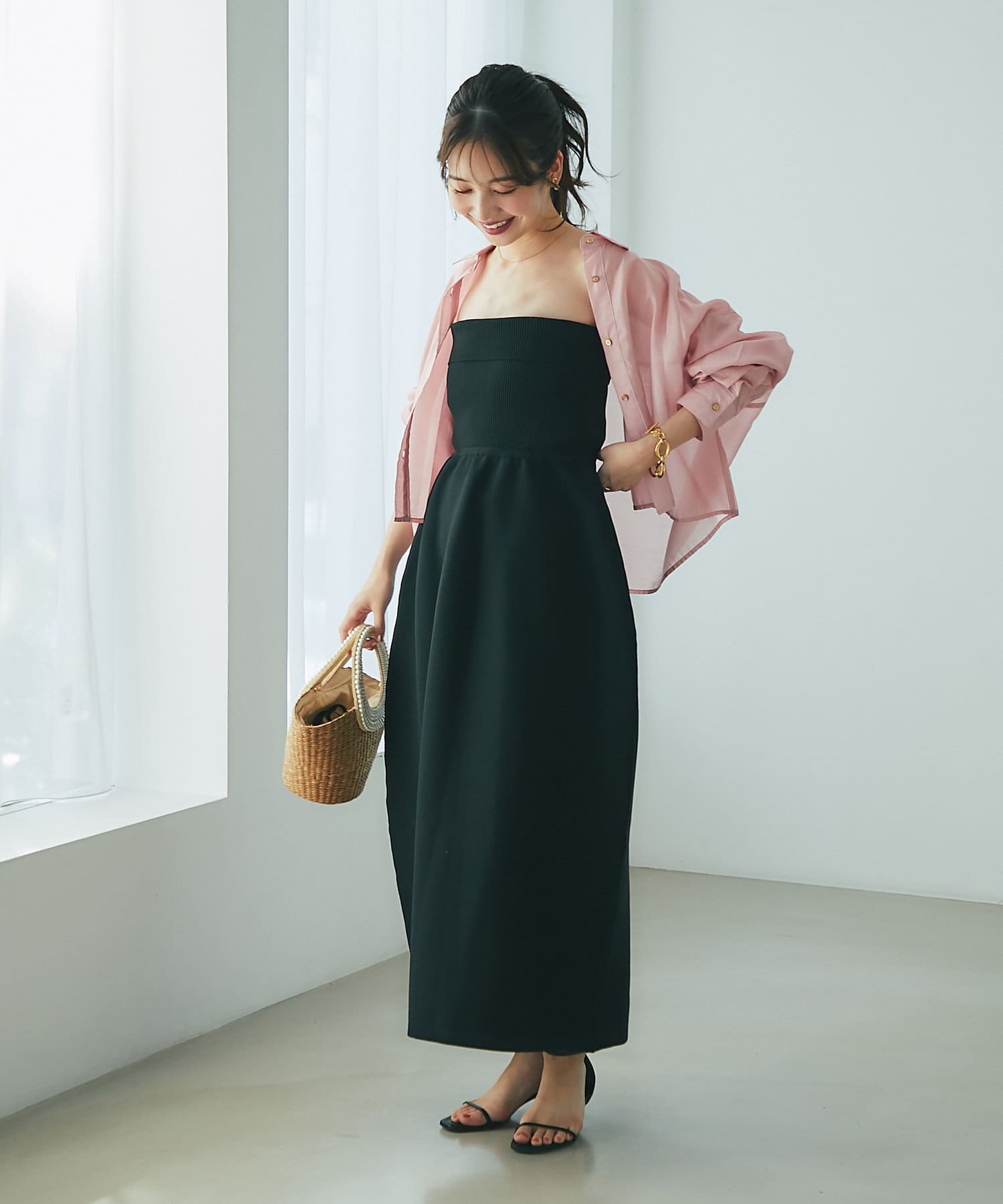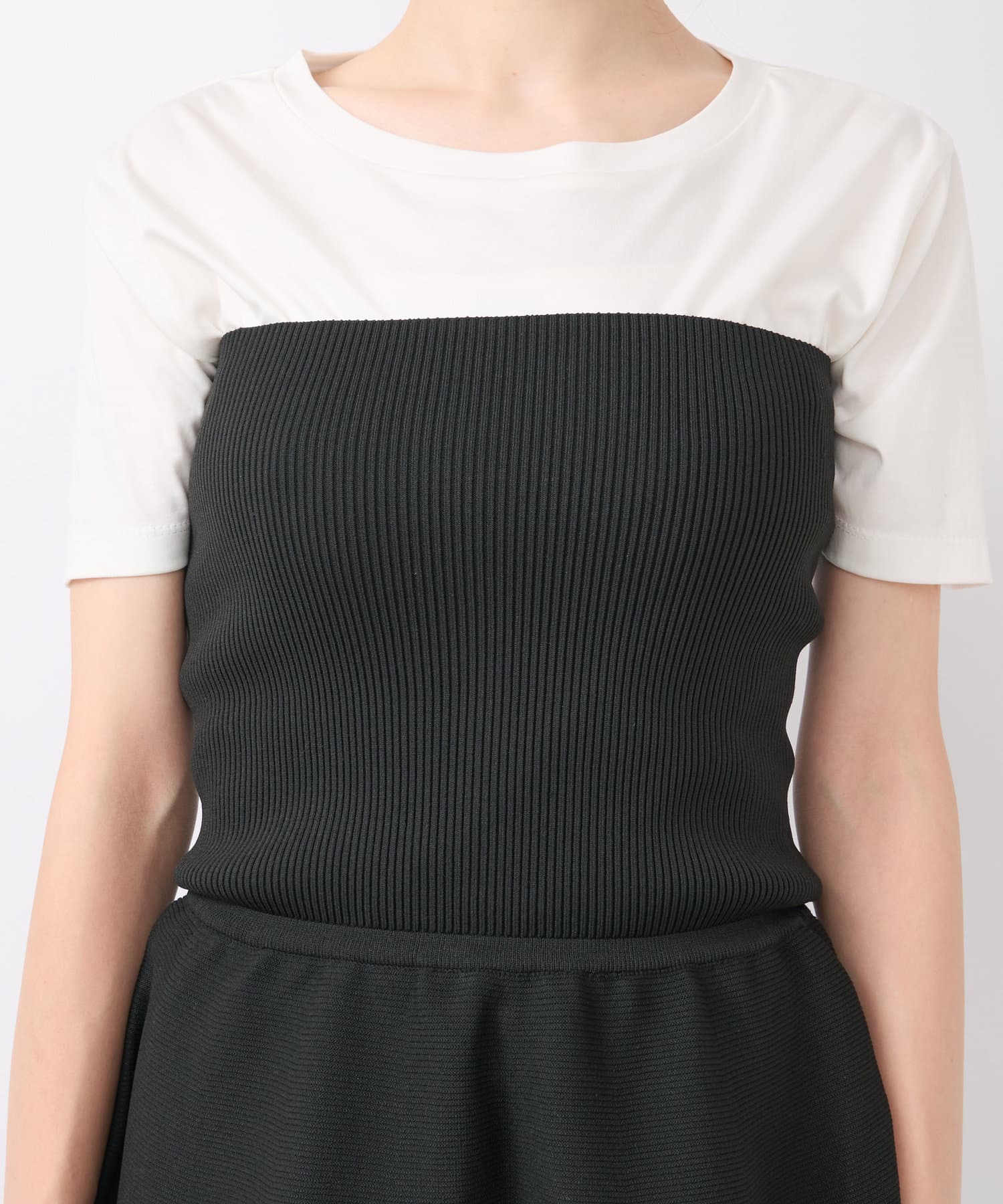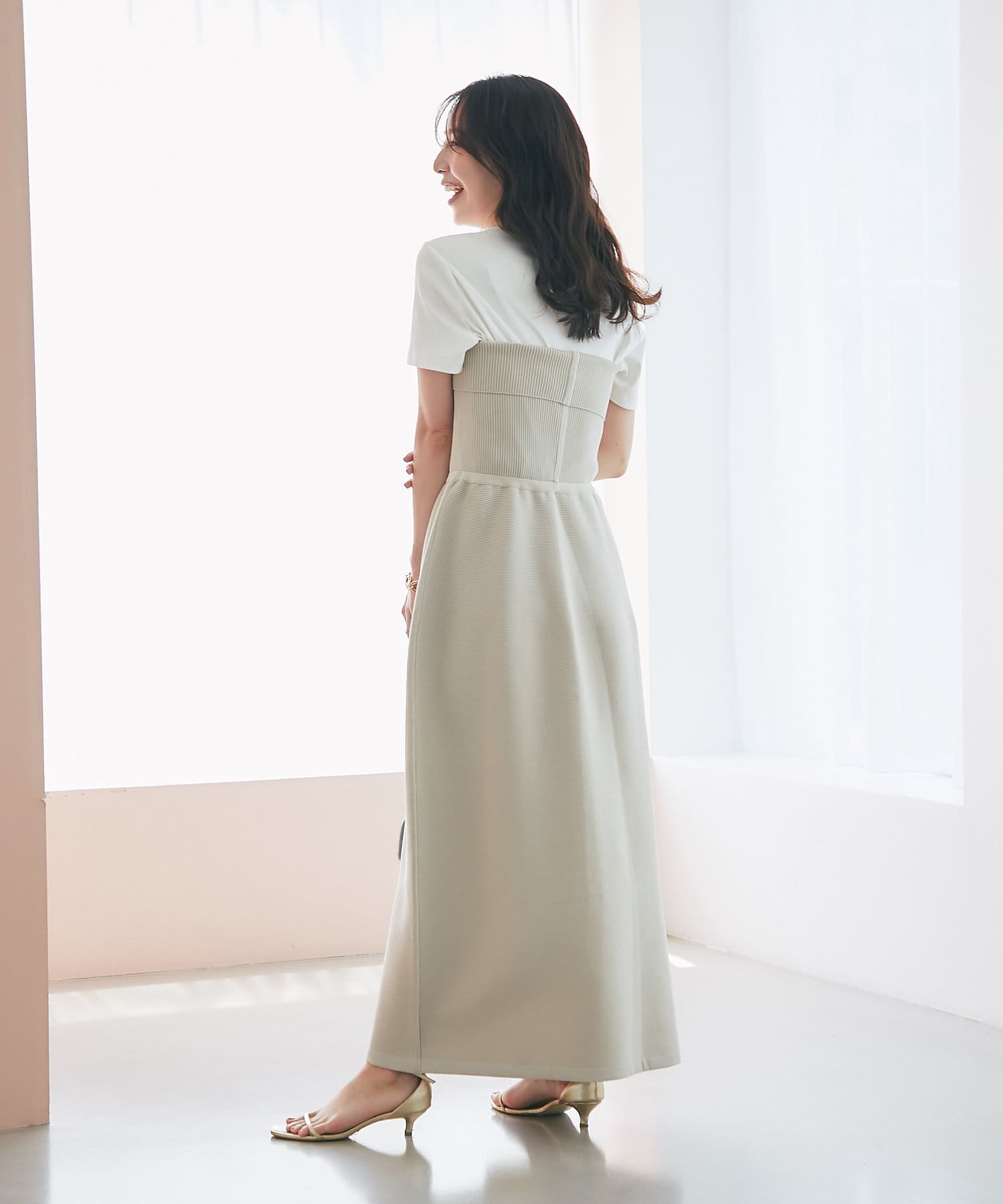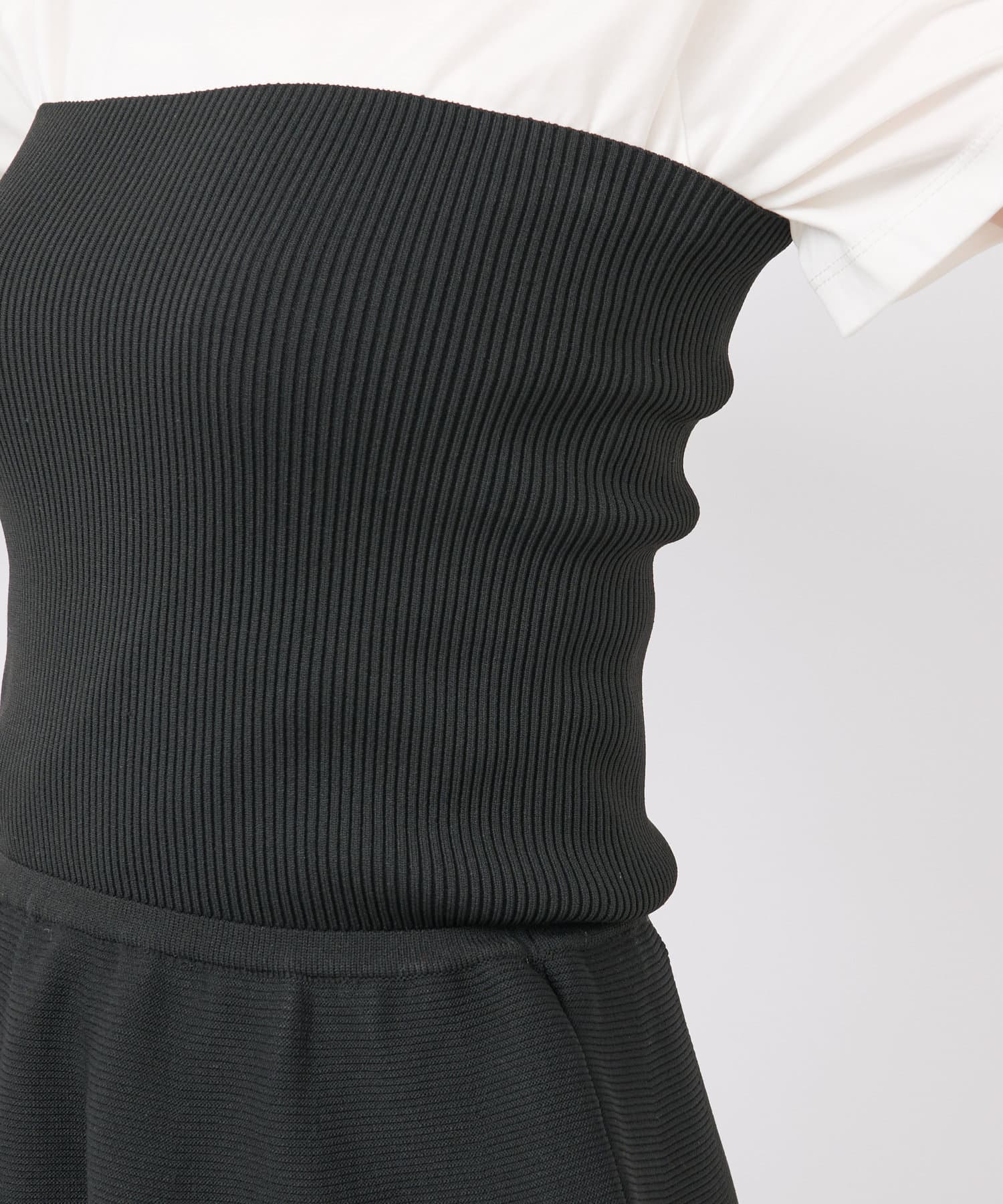 上身頃はリブ編みでフィットするようにストレッチを効かせたフェミニンなワンピース。