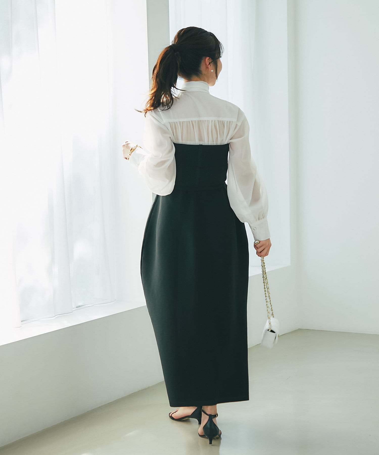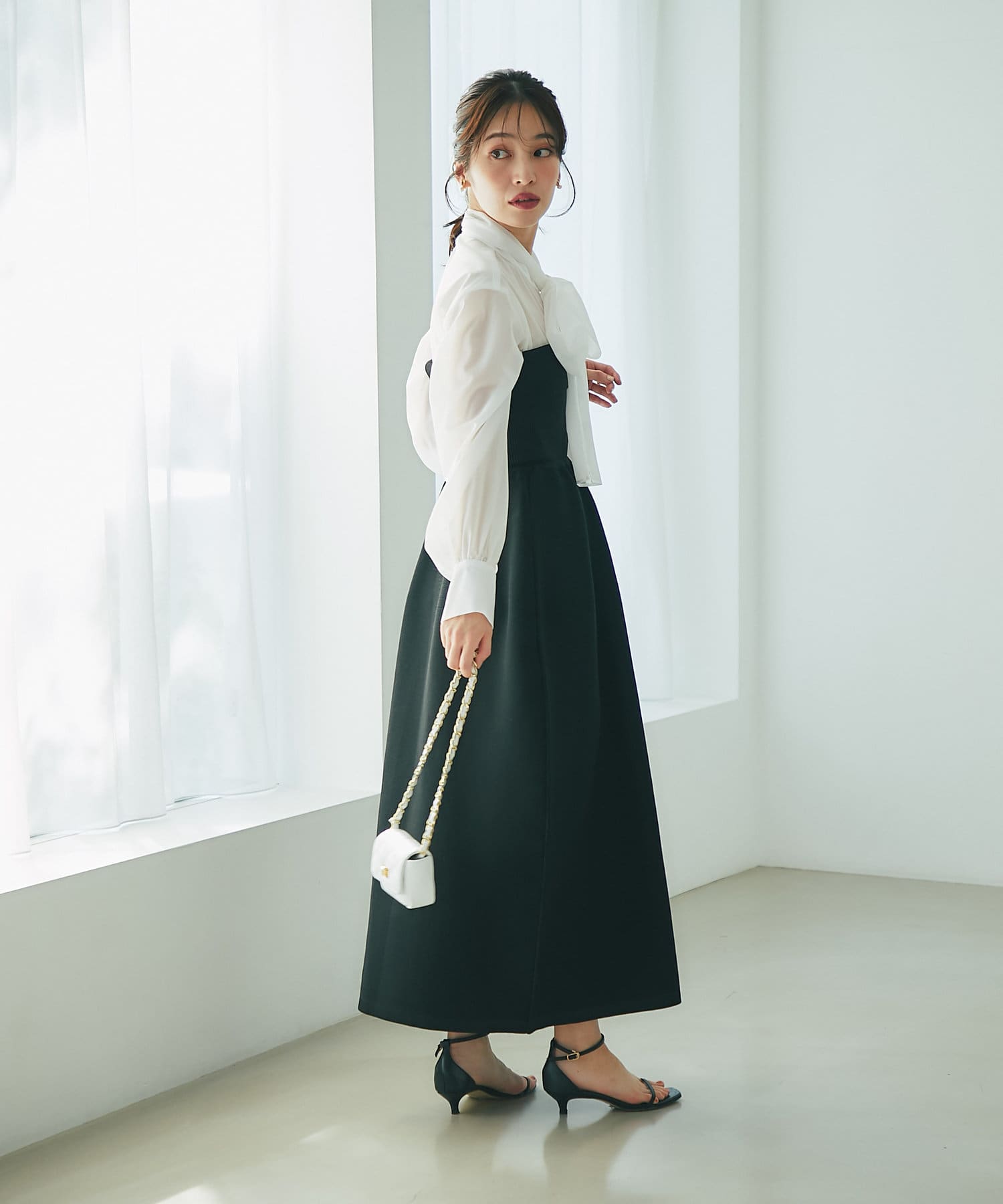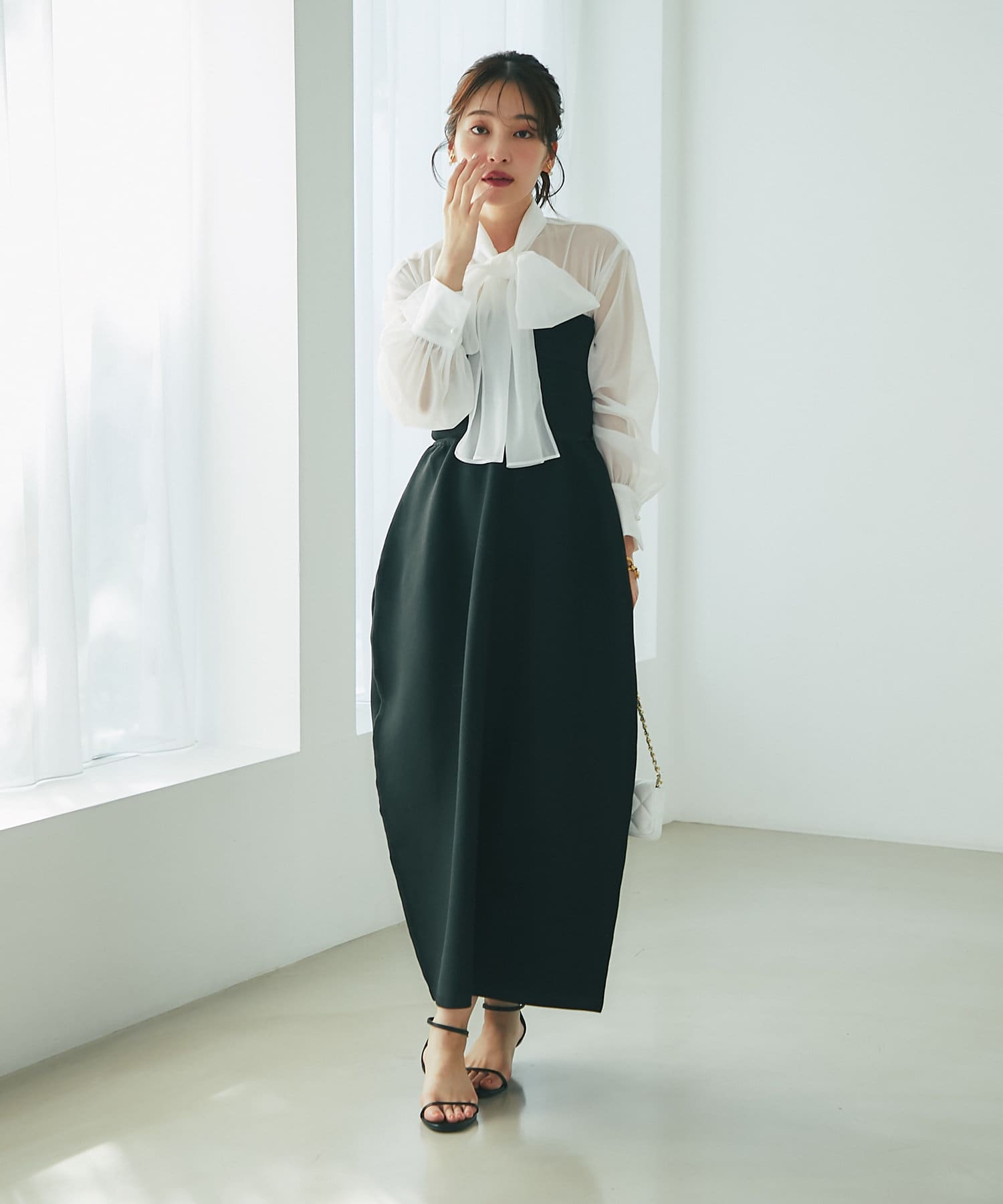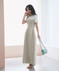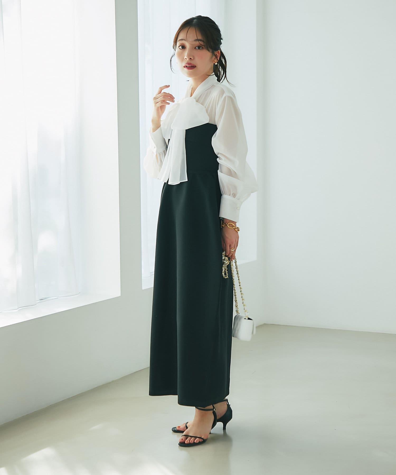 上身頃はリブ編みでフィットするようにストレッチを効かせたフェミニンなワンピース。