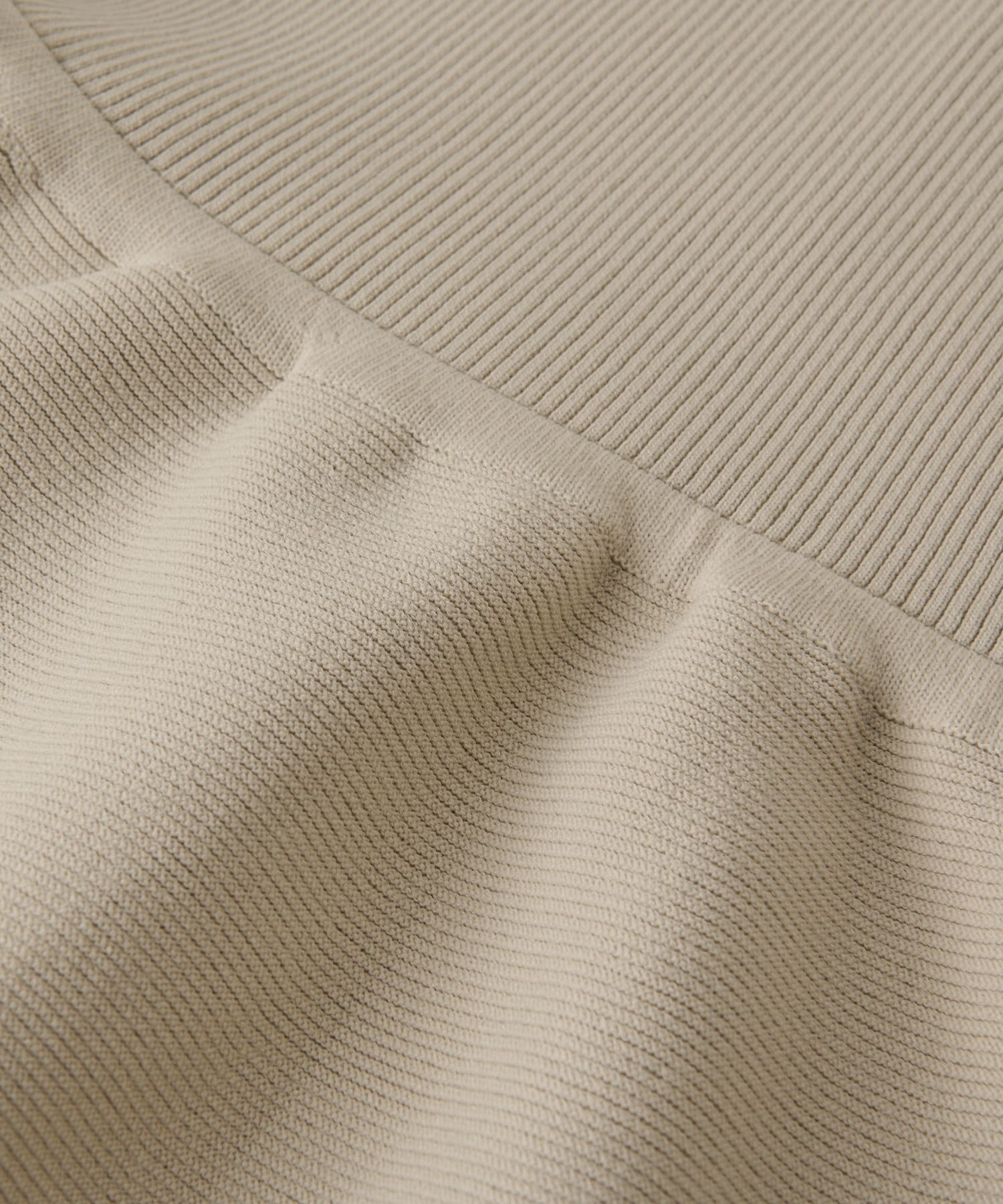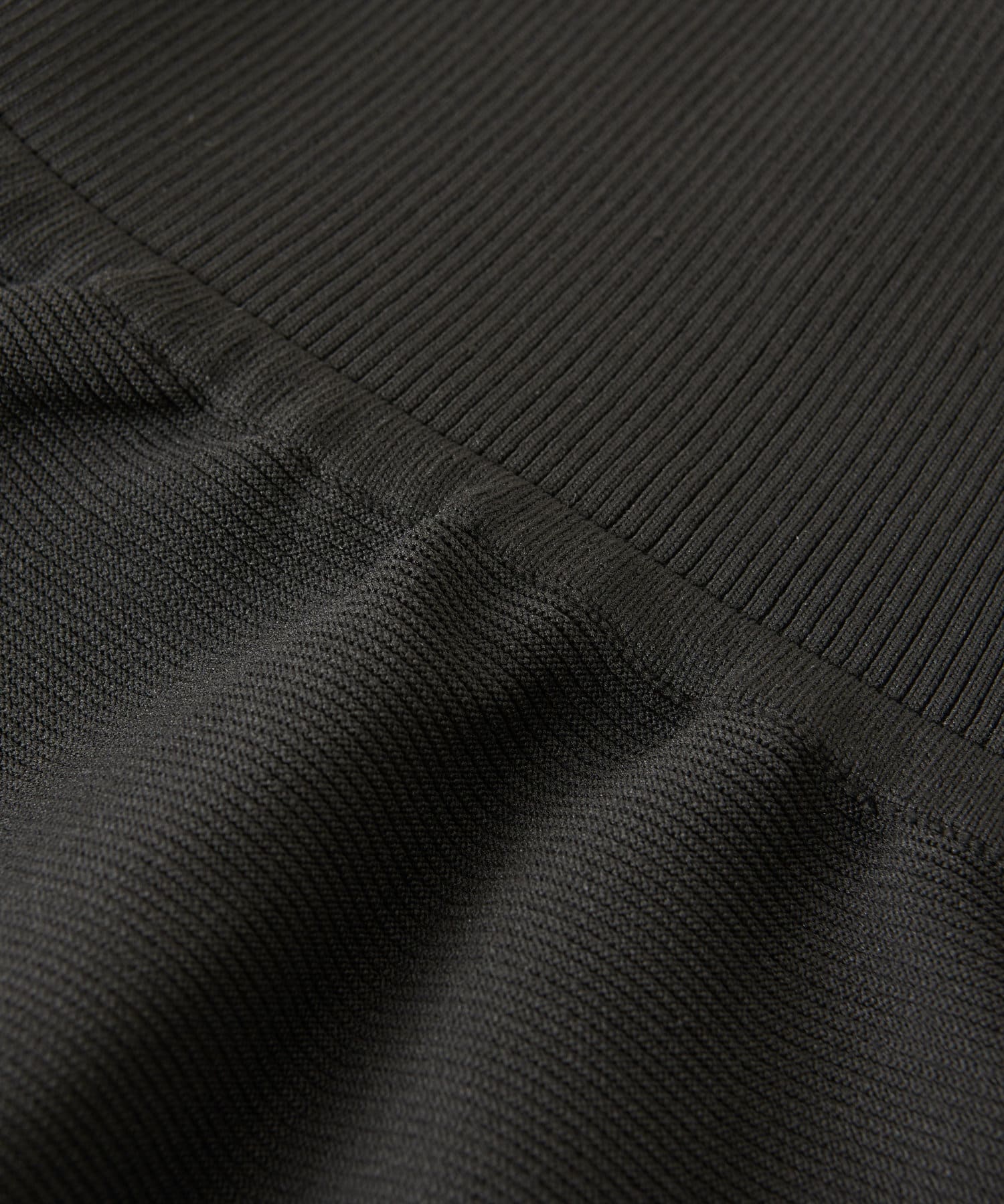 上身はフィットするようにストレッチを利かせたリブの編地、