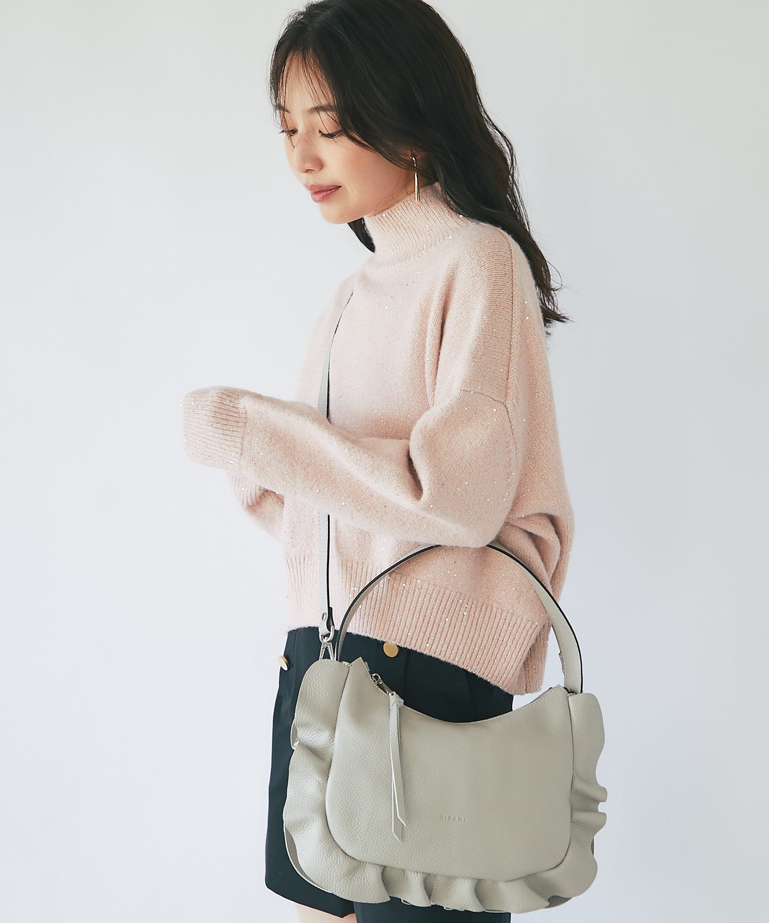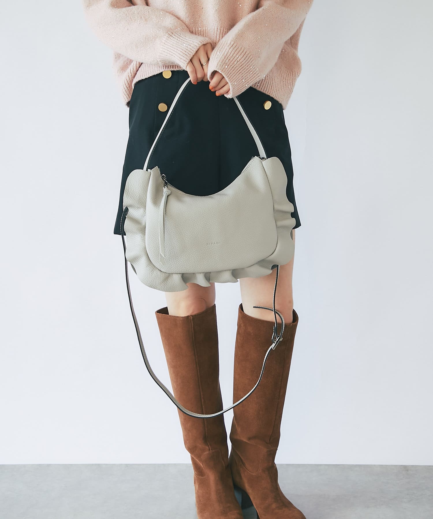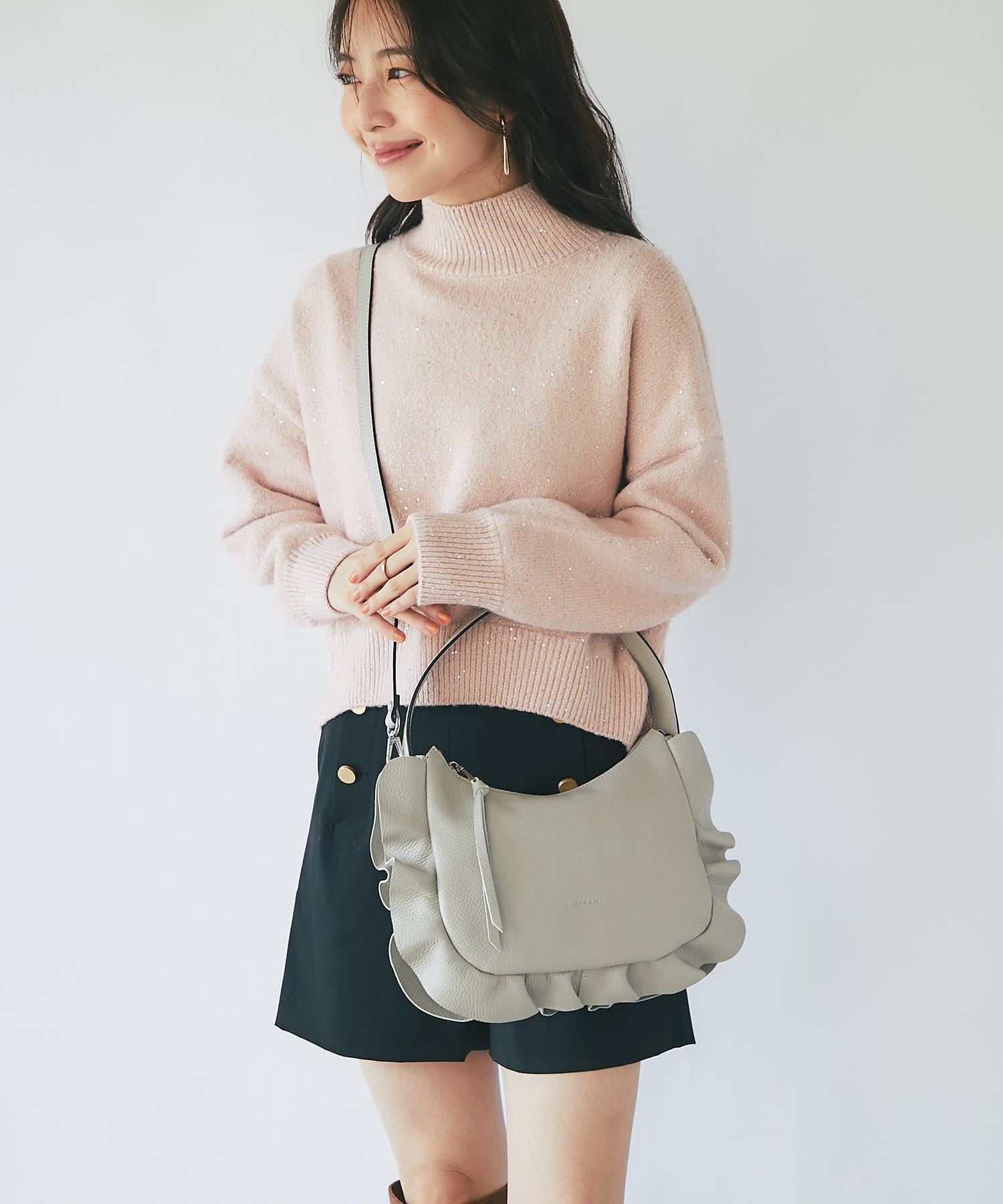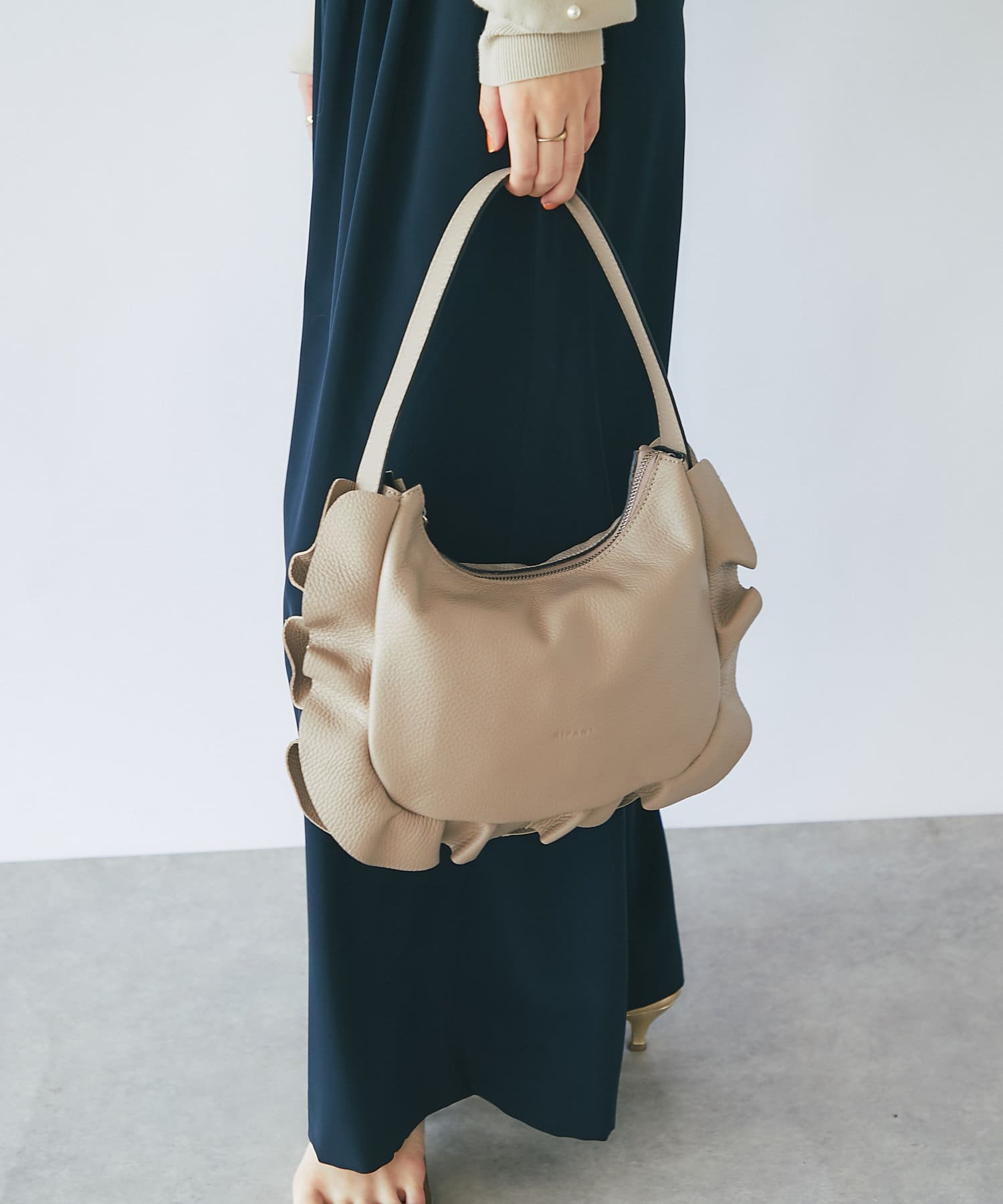【リパーニ】ストラップ付フリルクロワッサンバッグ