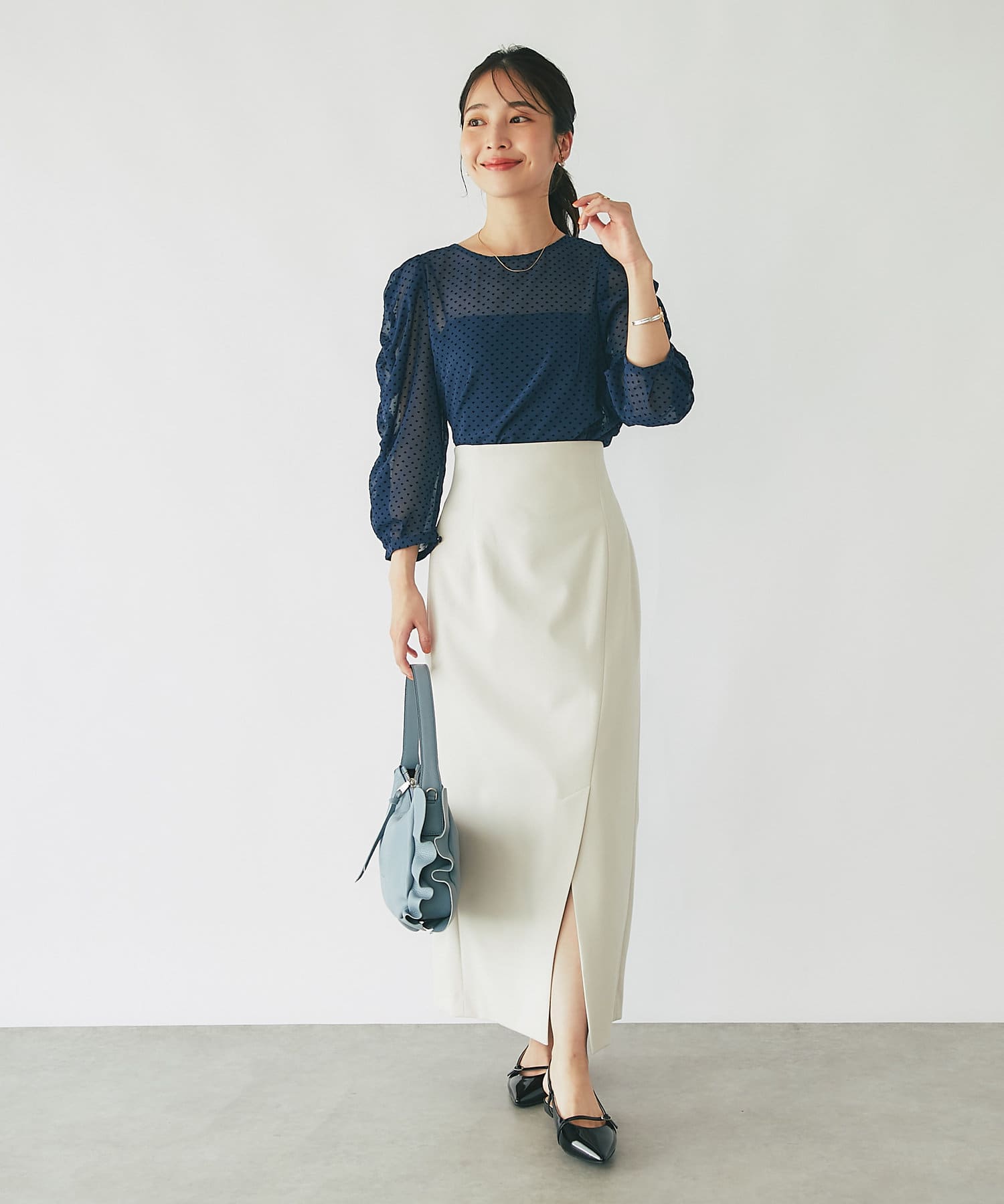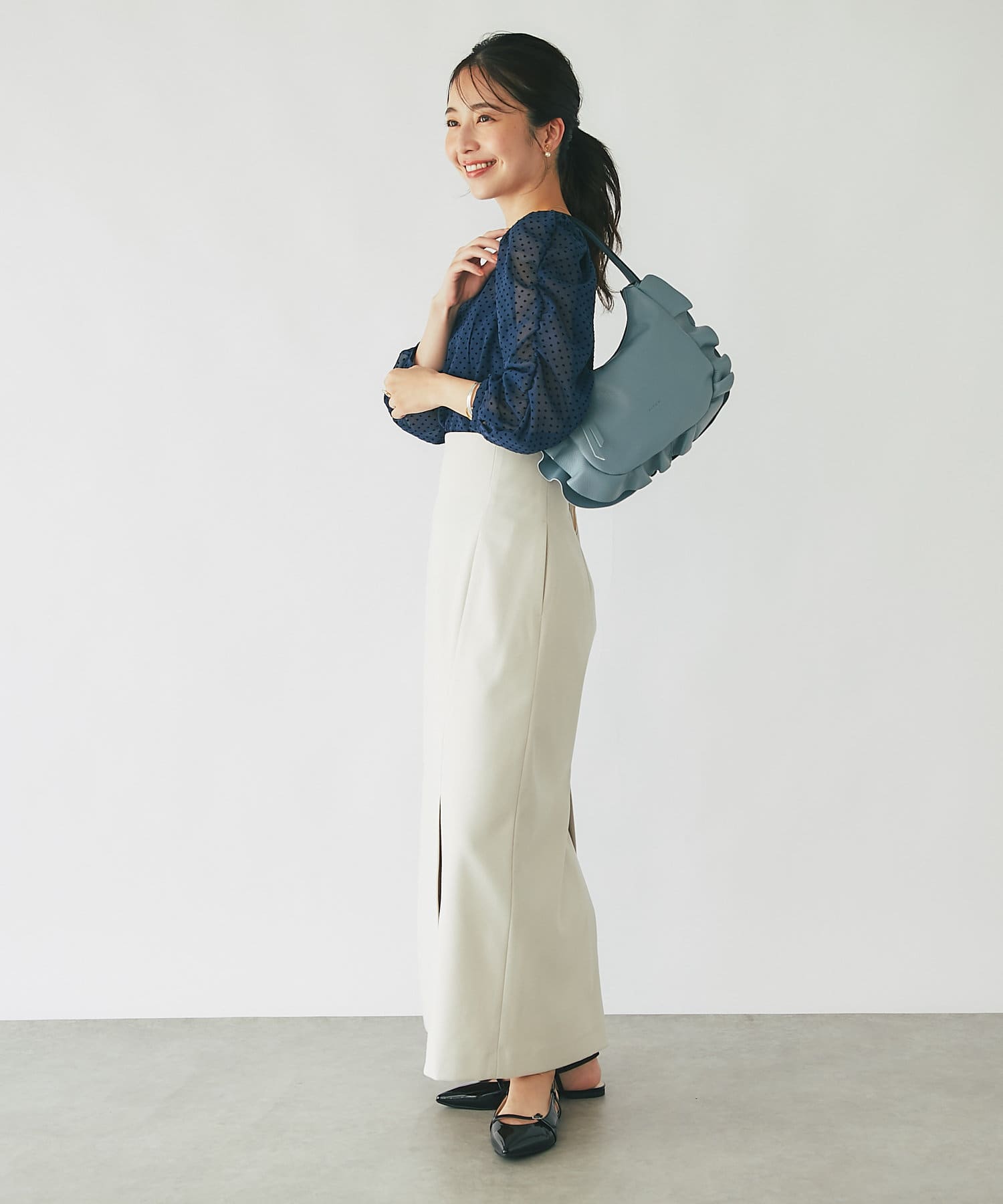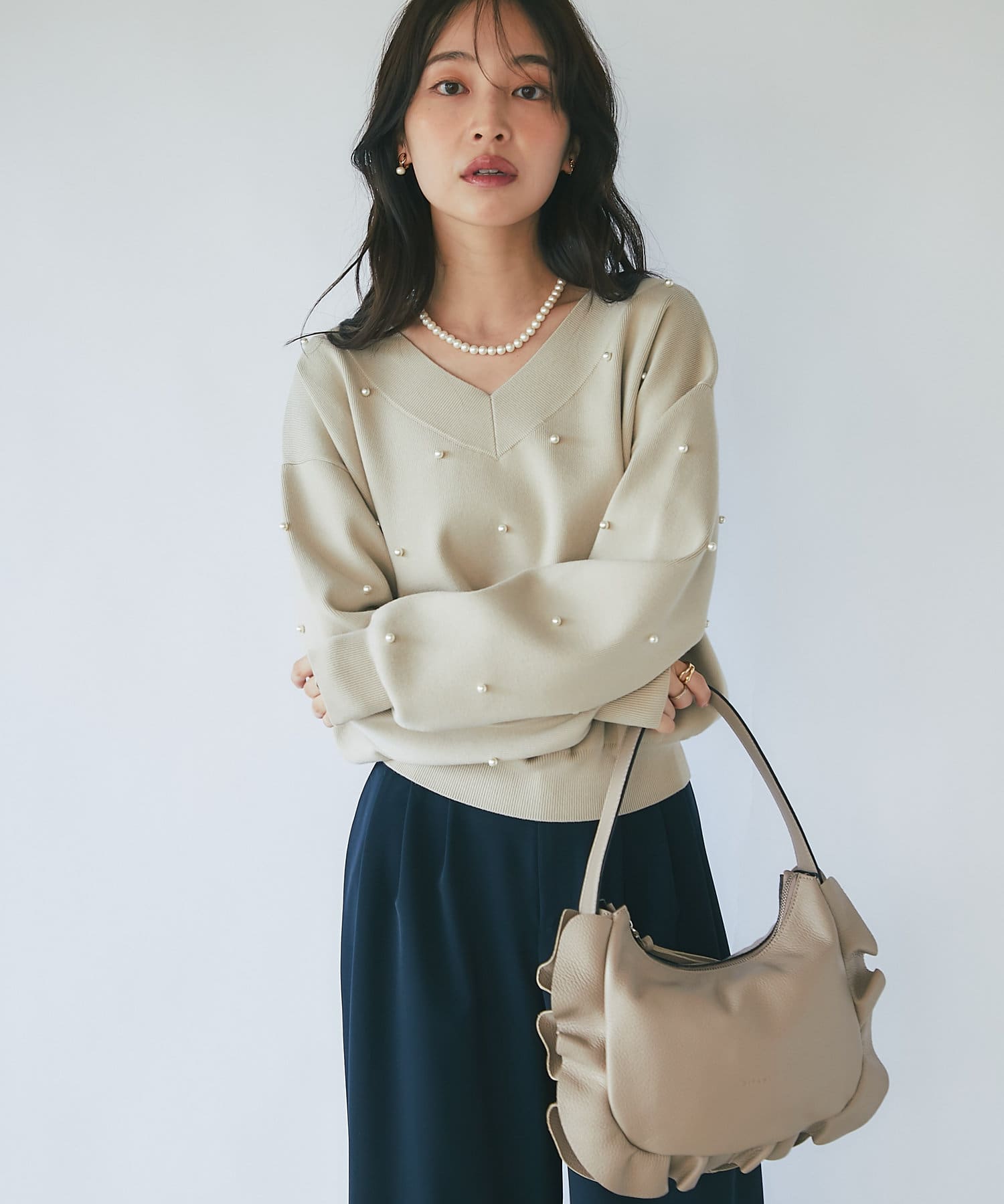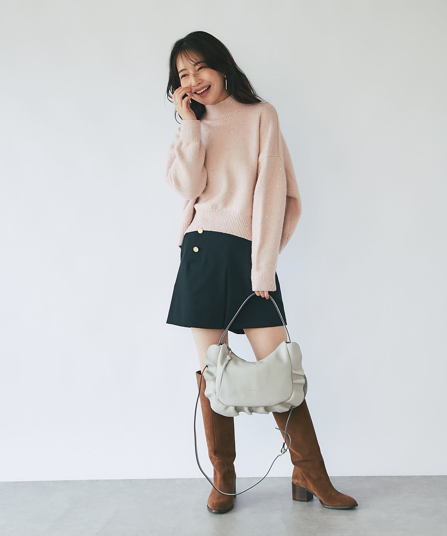 フェミニンなスタイルに合わせて持つとより女性らしい印象に。