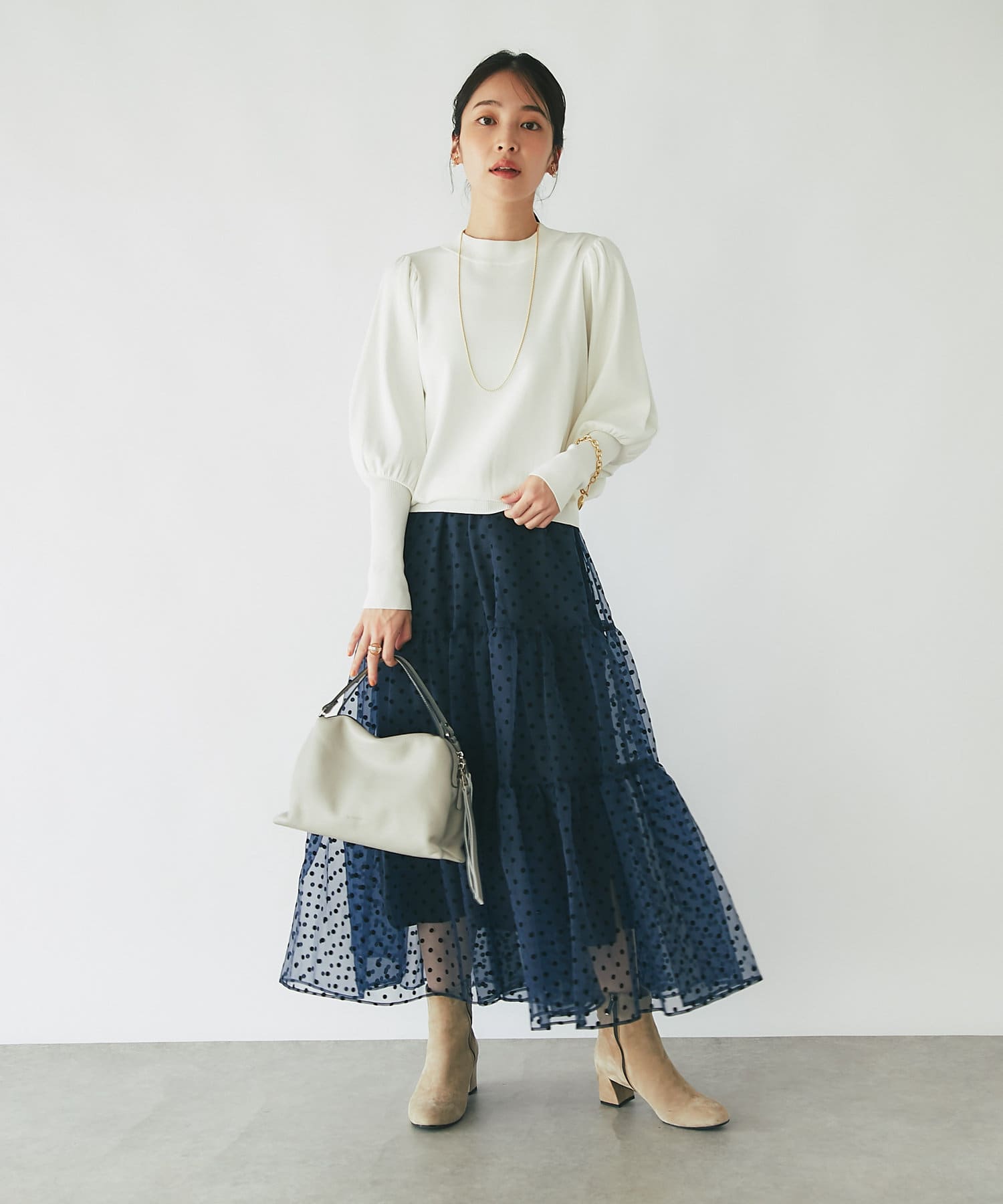 フェミニンなスタイルやカジュアルなど、どんなコーディネートにも合わせやすくおすすめです。