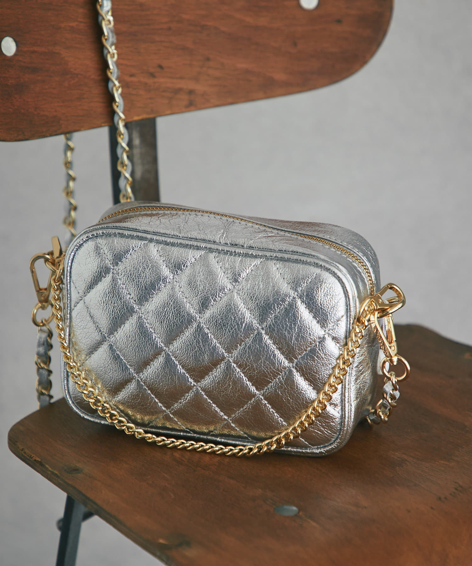 【オウレンティ】メタリックキルティングチェーンカメラバッグ