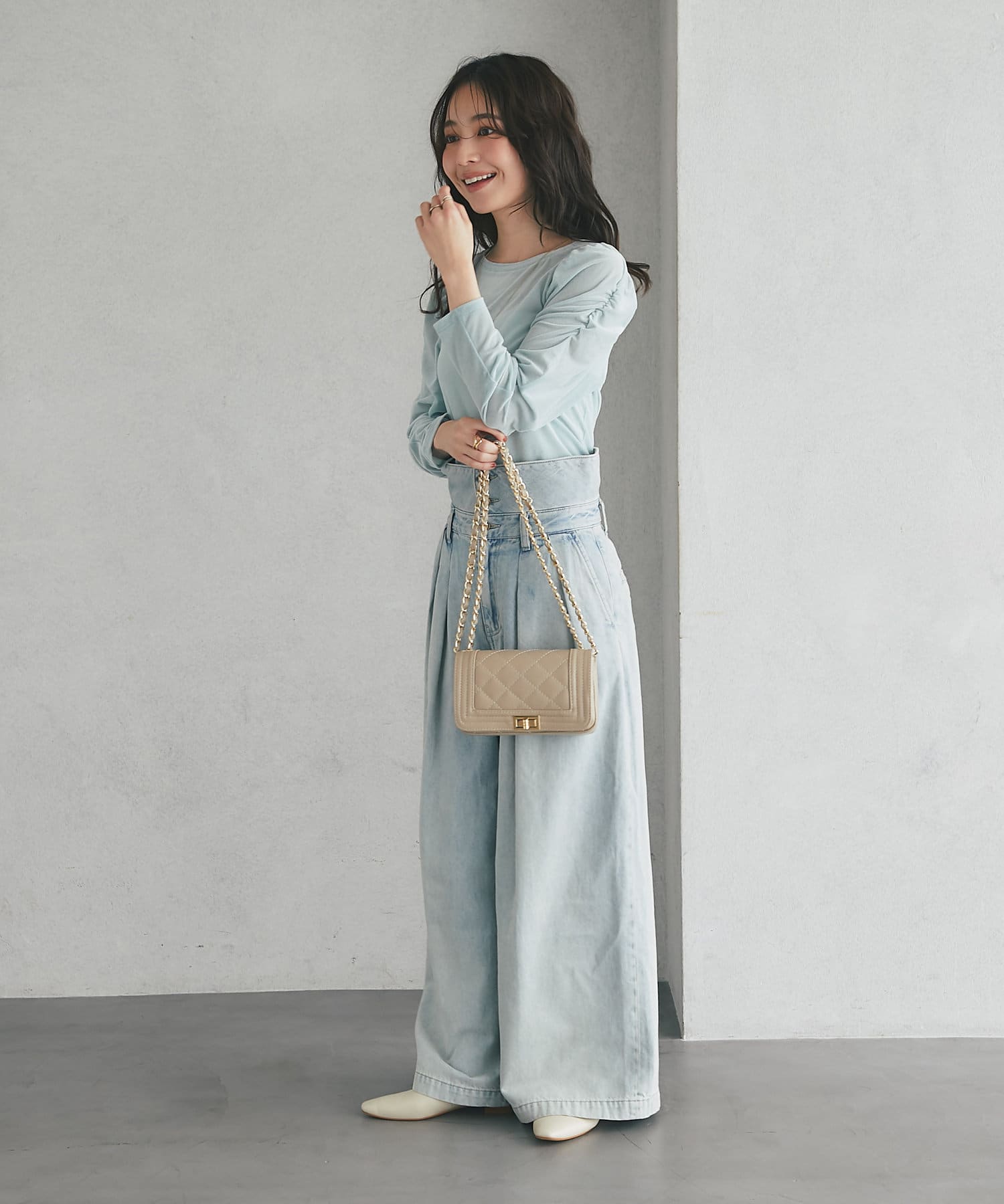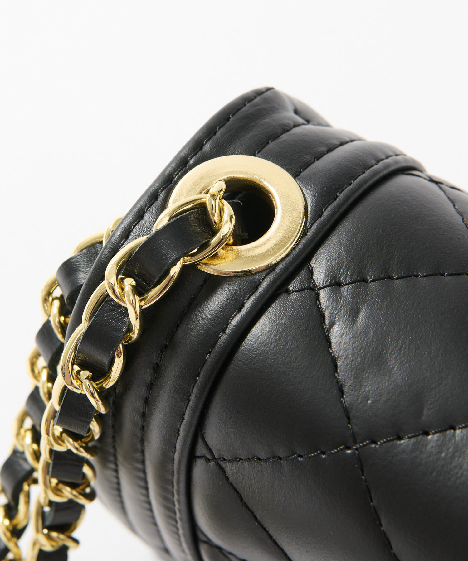 キルティングレザーにゴールドチェーンが上品で大人な印象に。
