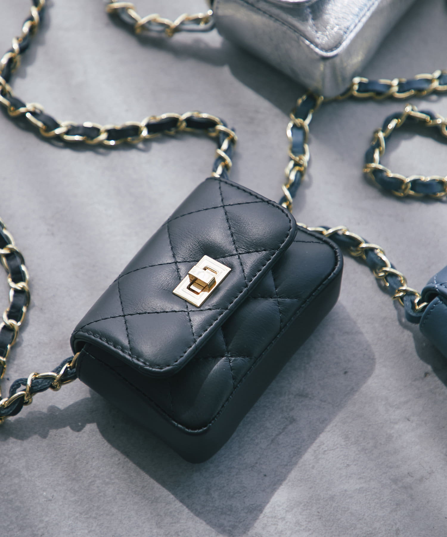 レザーにキルティングステッチを施したクラシカルなデザインです。