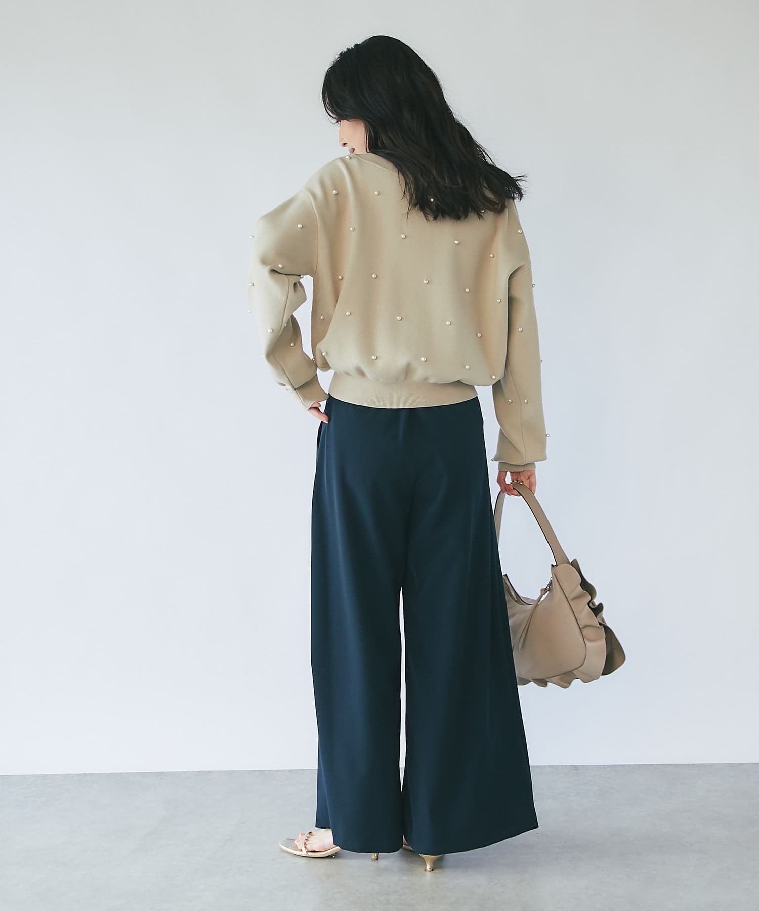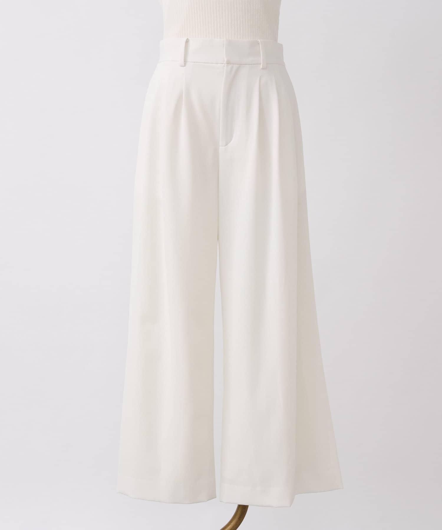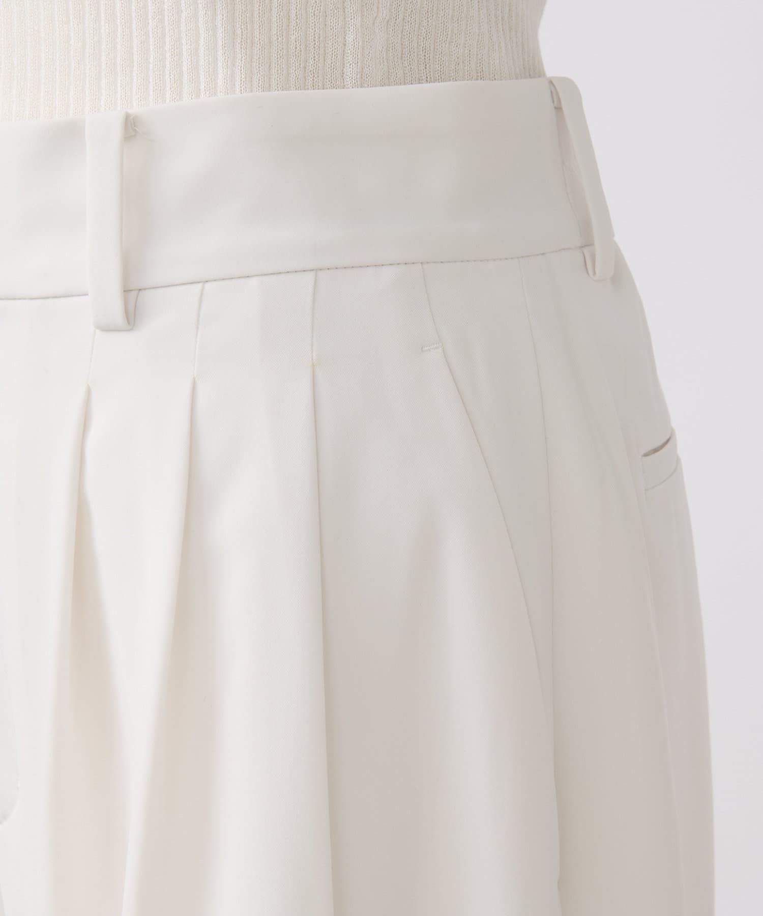 さらっとした表面感のダブルクロスに近いツイルを使用し、薄手で柔らかく落ち感のある素材感のワイドパンツ。