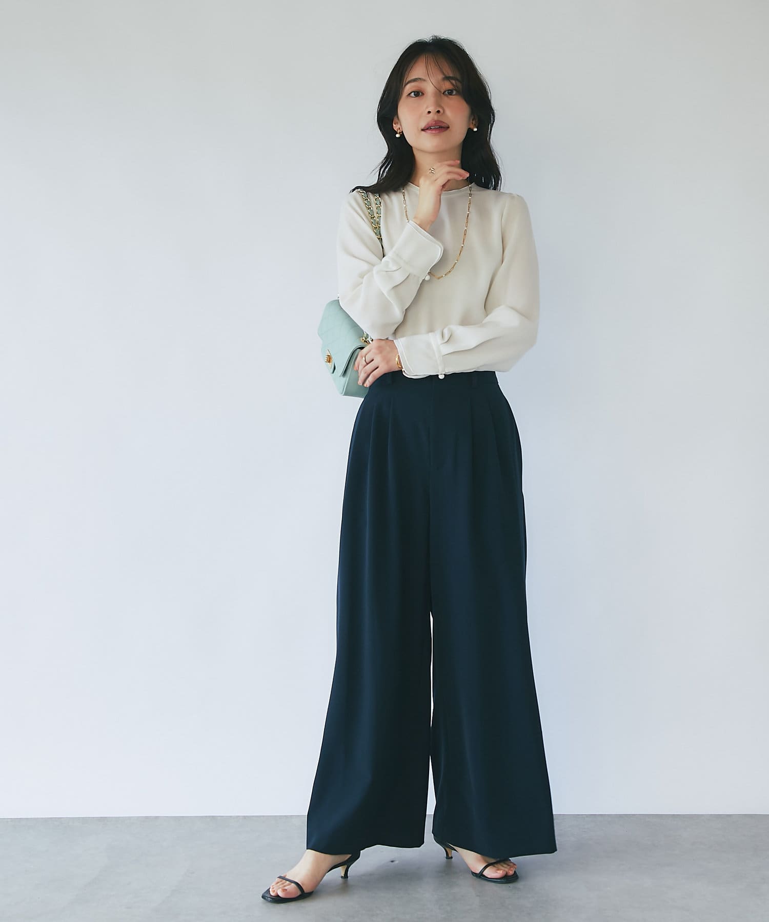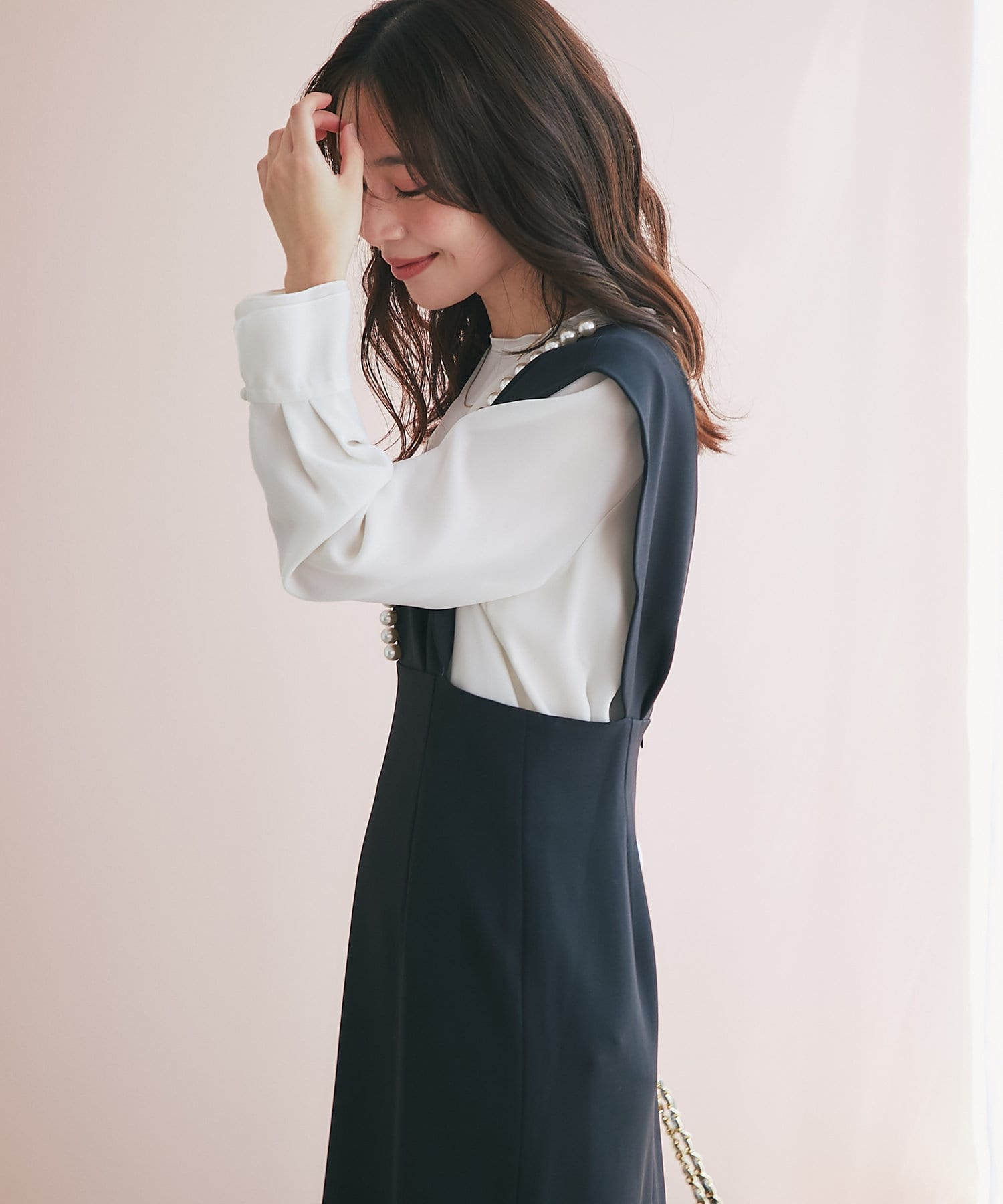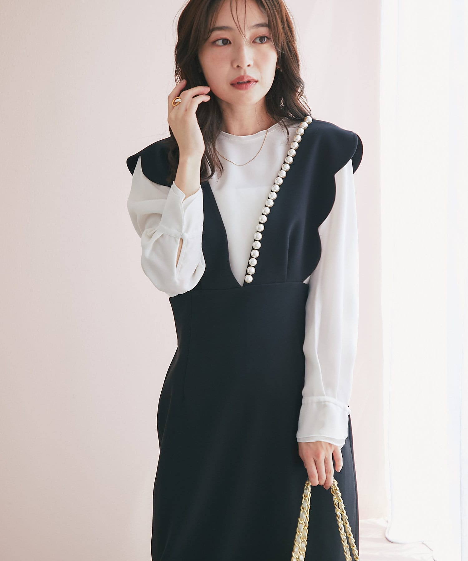 ワンピースのインナーにも合わせられて様々なスタイリングを楽しめます。