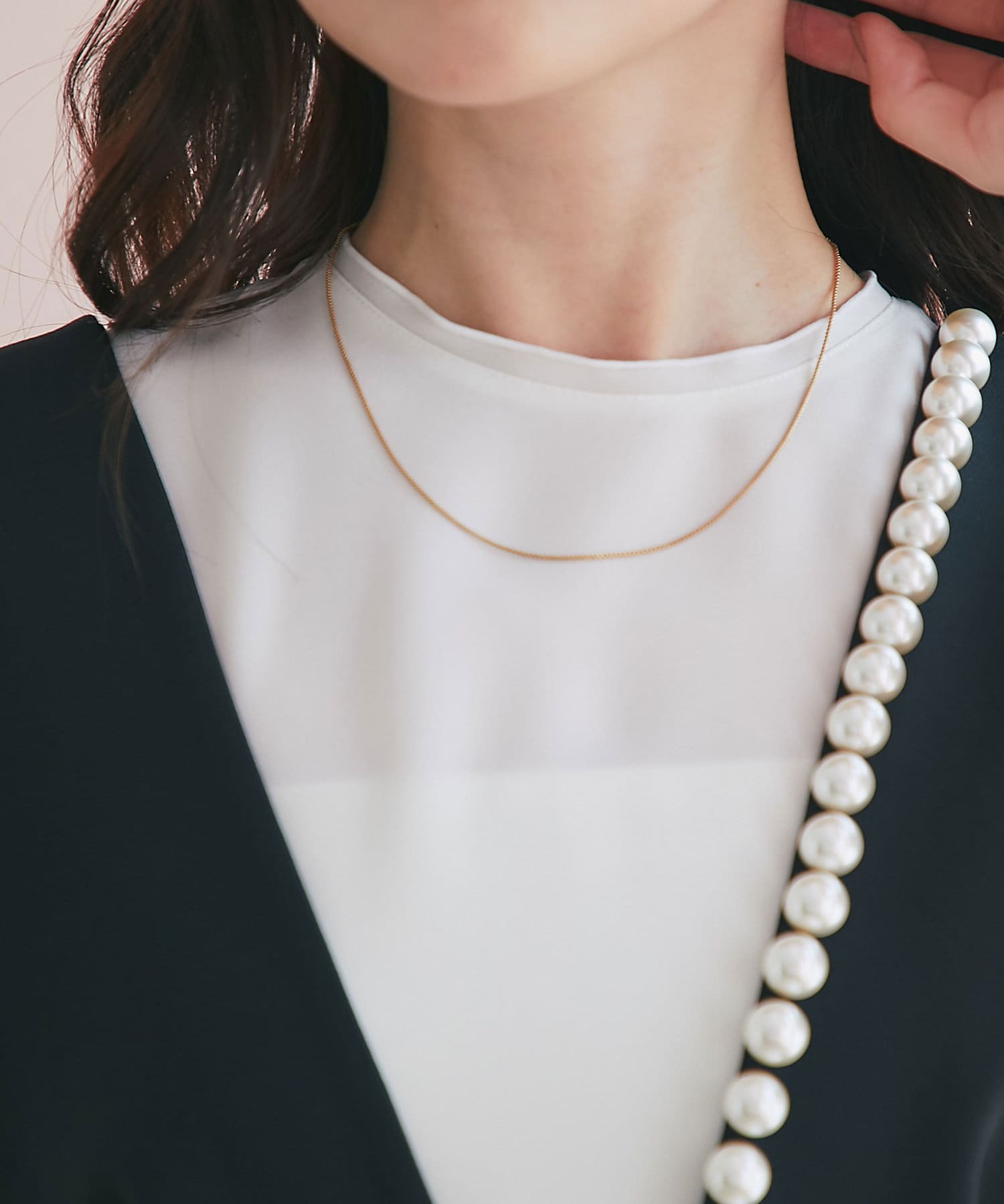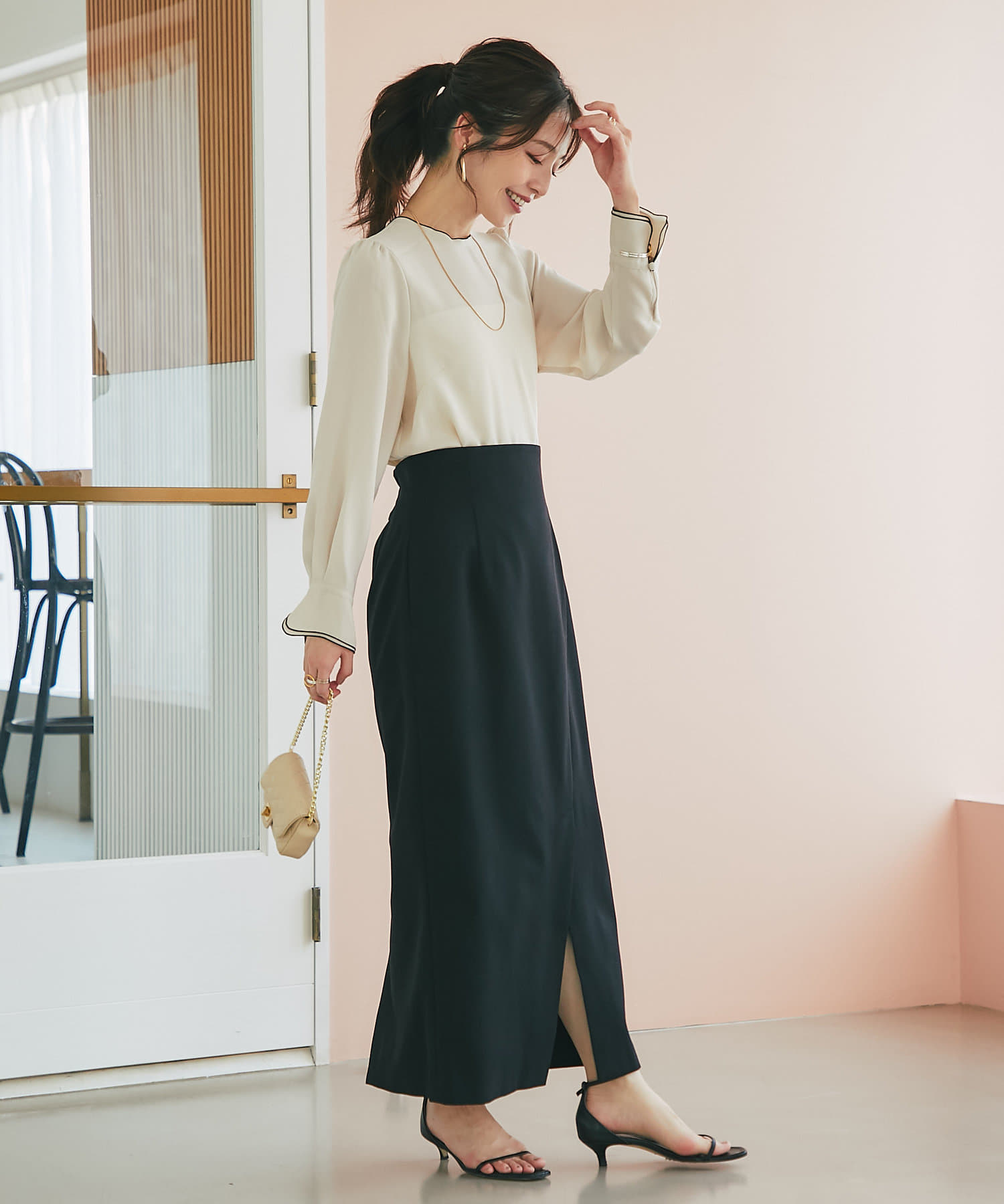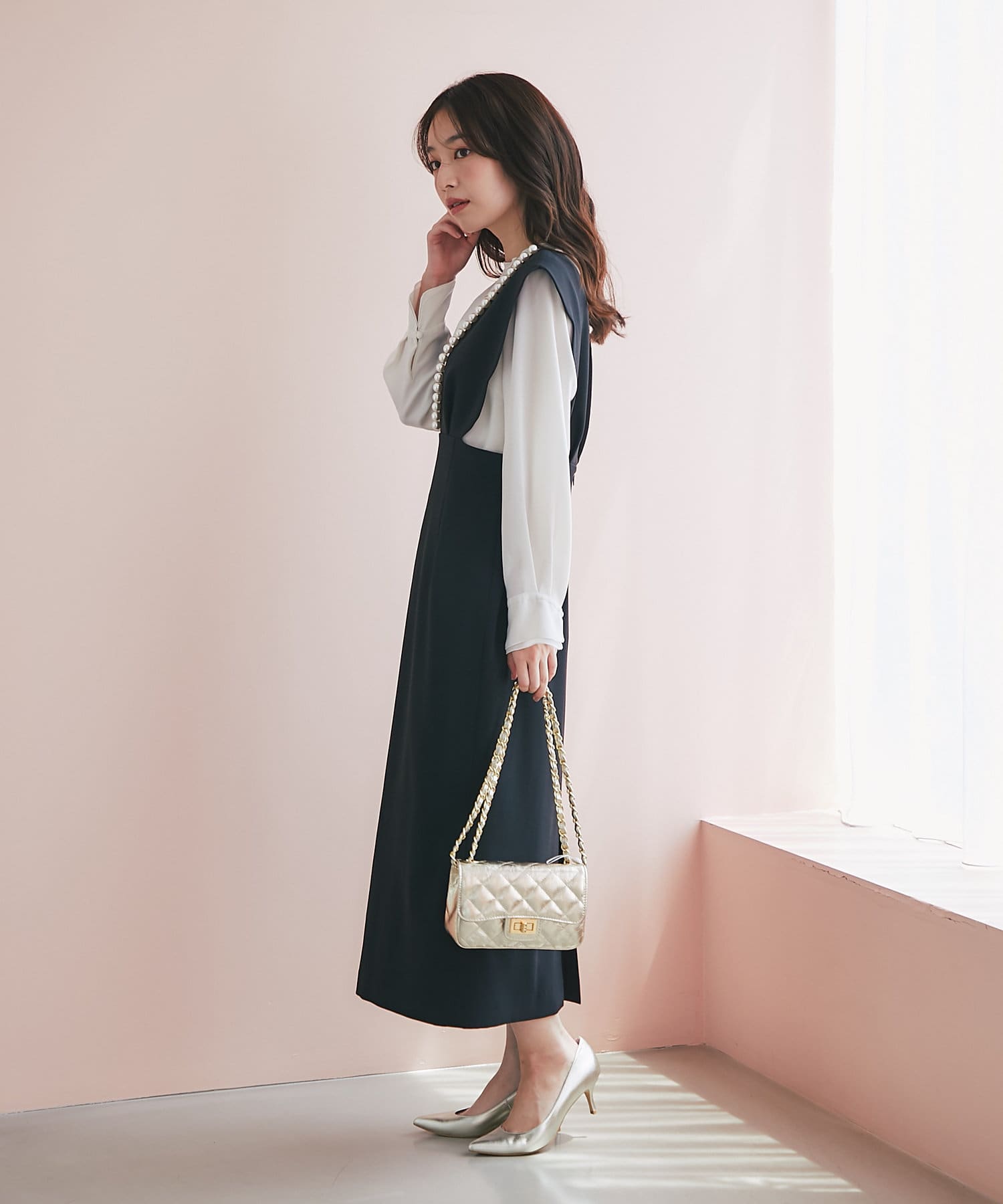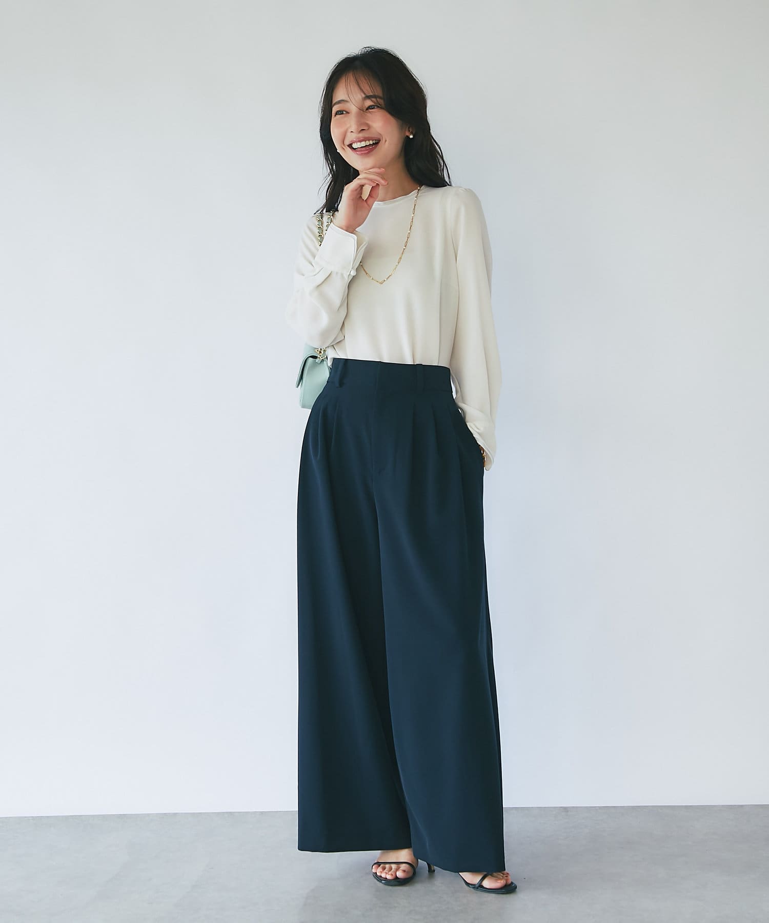 ワンピースのインナーにも合わせられて様々なスタイリングを楽しめます。