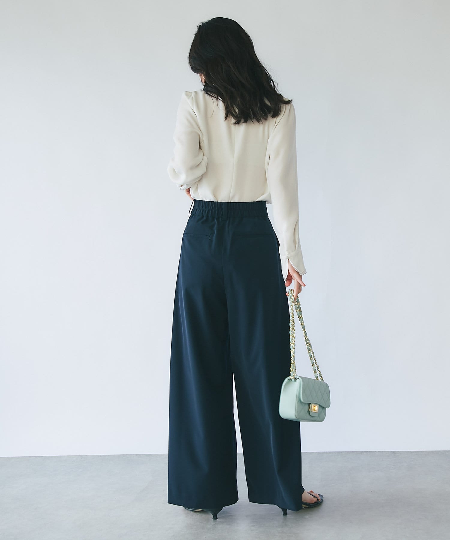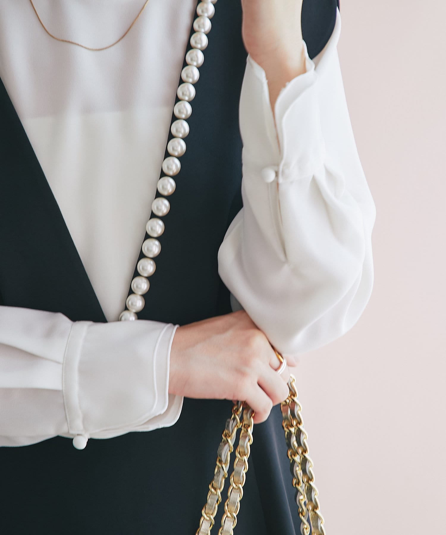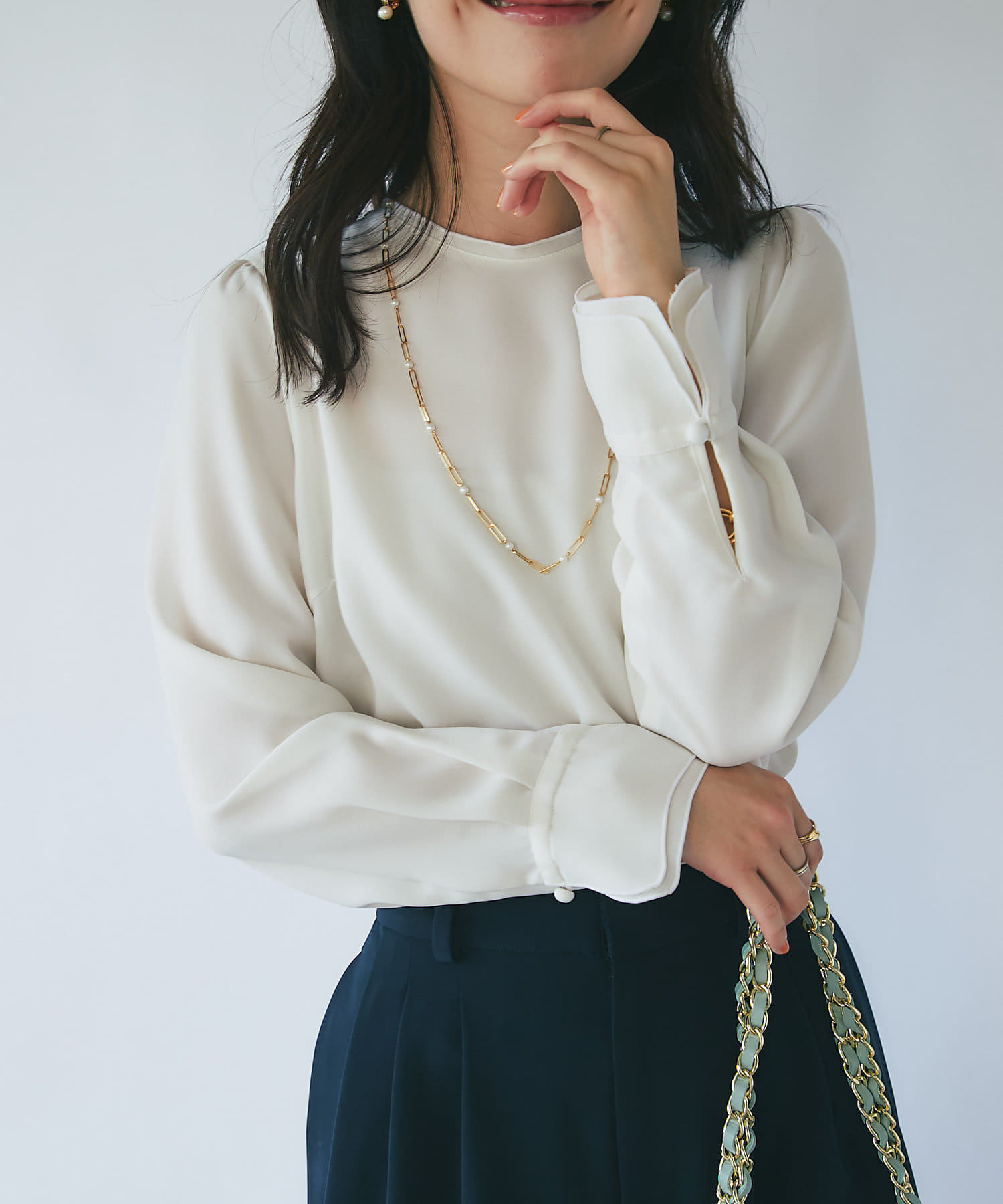 白でも透け感が気にならないふくらみのあるジョーゼット素材を使用。