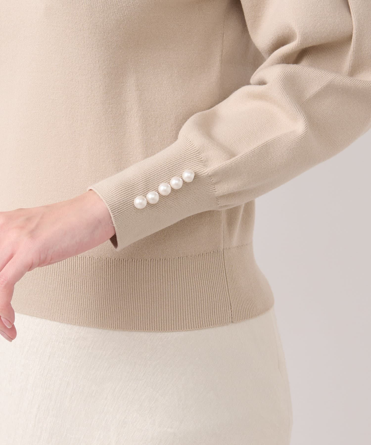 袖口パールで上品に決まるデザインニット