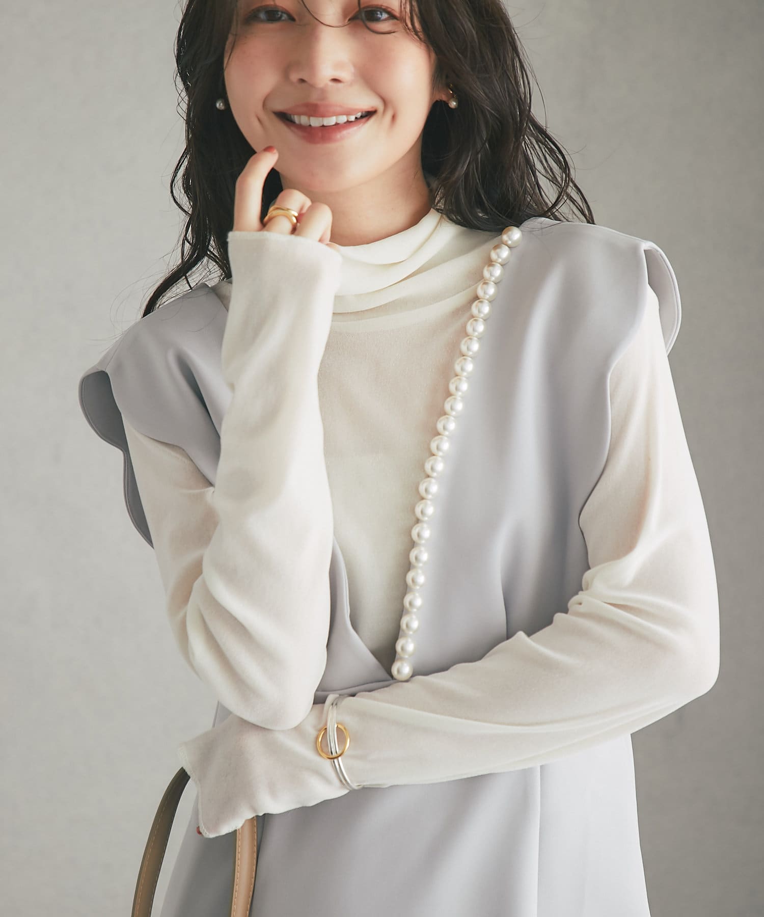 ジャケットのインナーなどにも使いやすく上品に決まるので、お仕事などにもお使いいただけます。