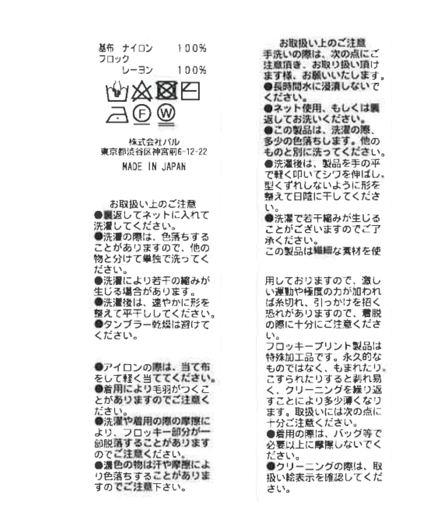 フロック レーヨン100%原産国 日本 サイズ F カテゴリ トップス > Tシャツ/カットソー タイプ レディース ギフト ラッピング 可 取り扱い 本体:手洗い可能 アイテムサイズ