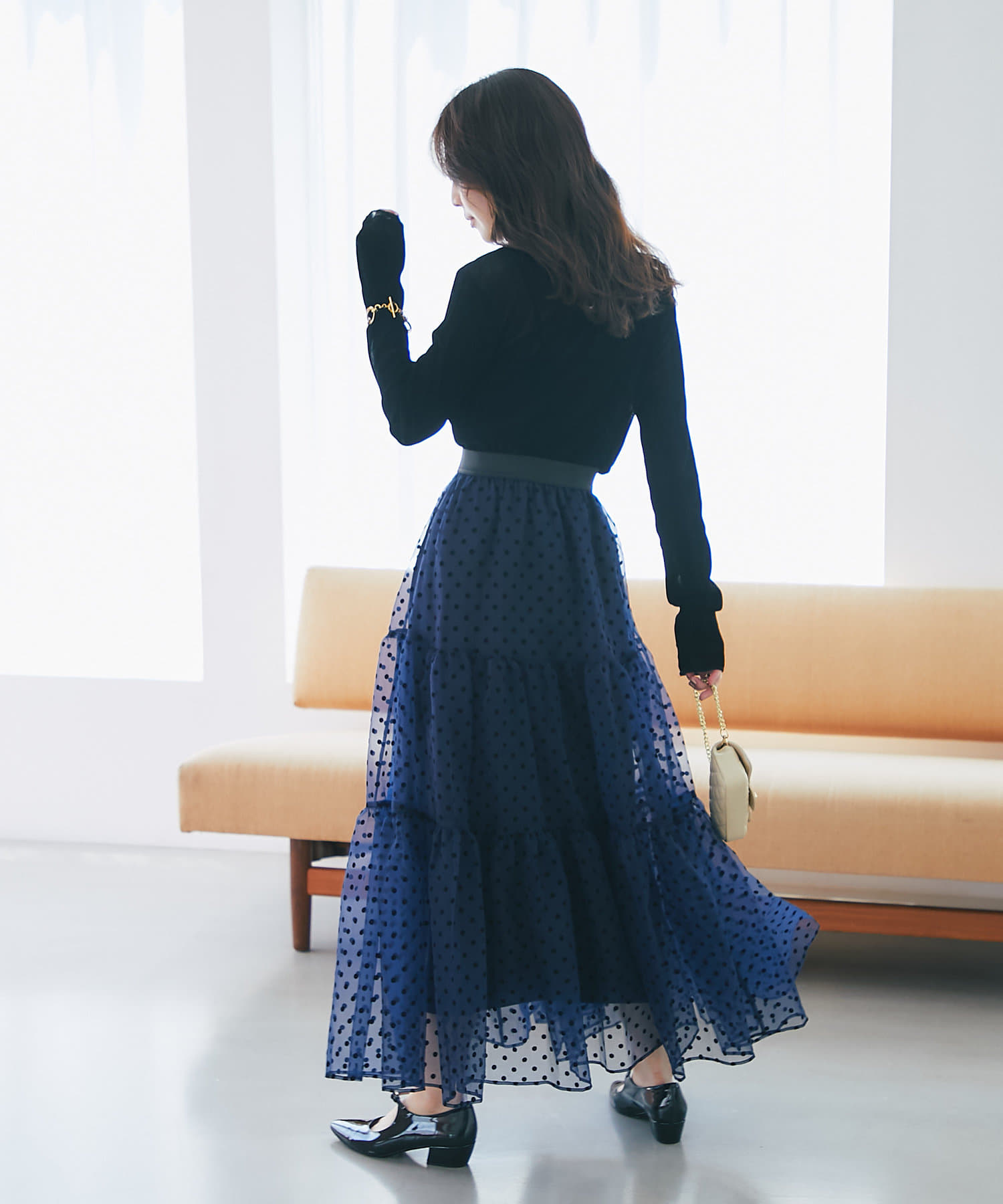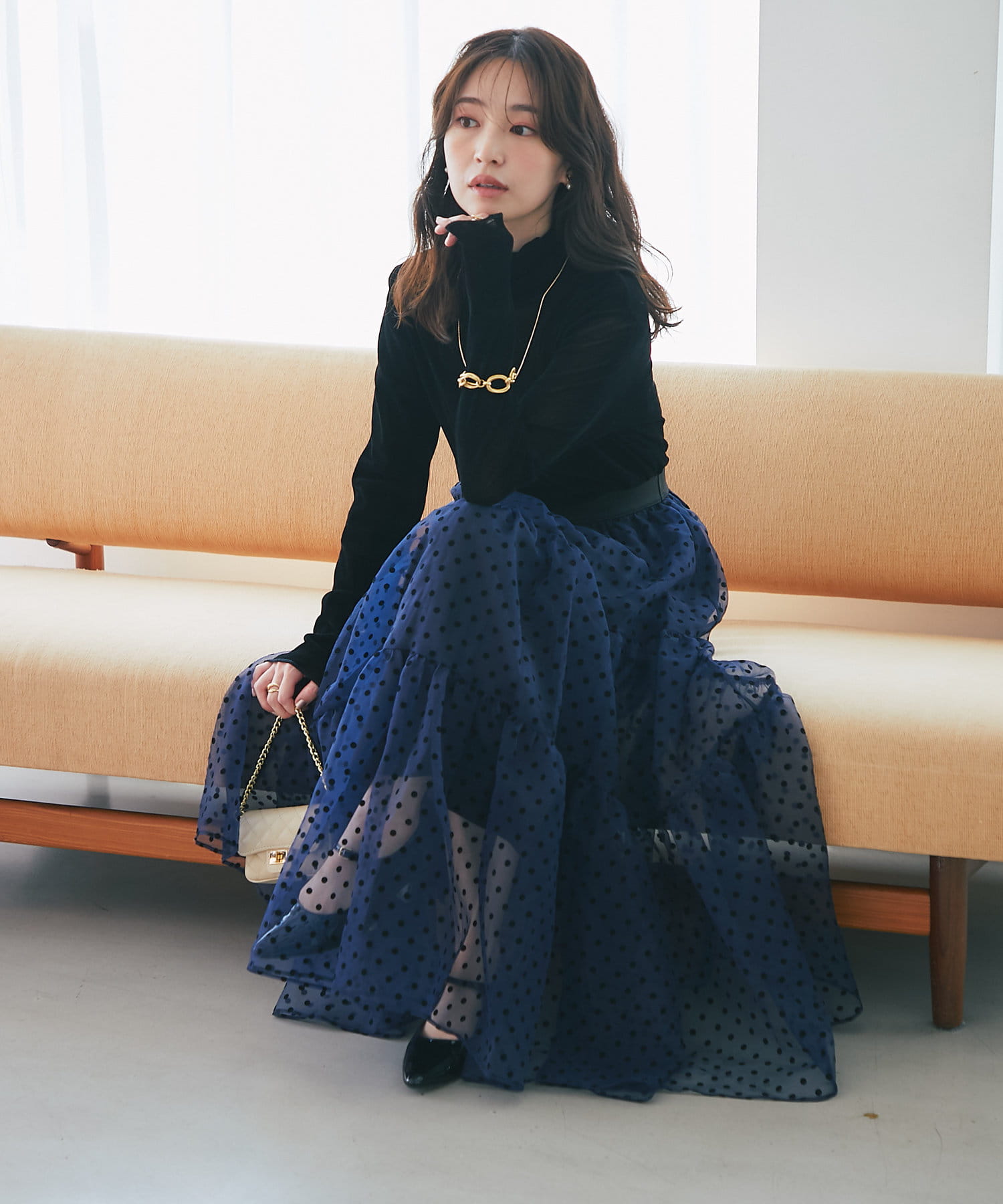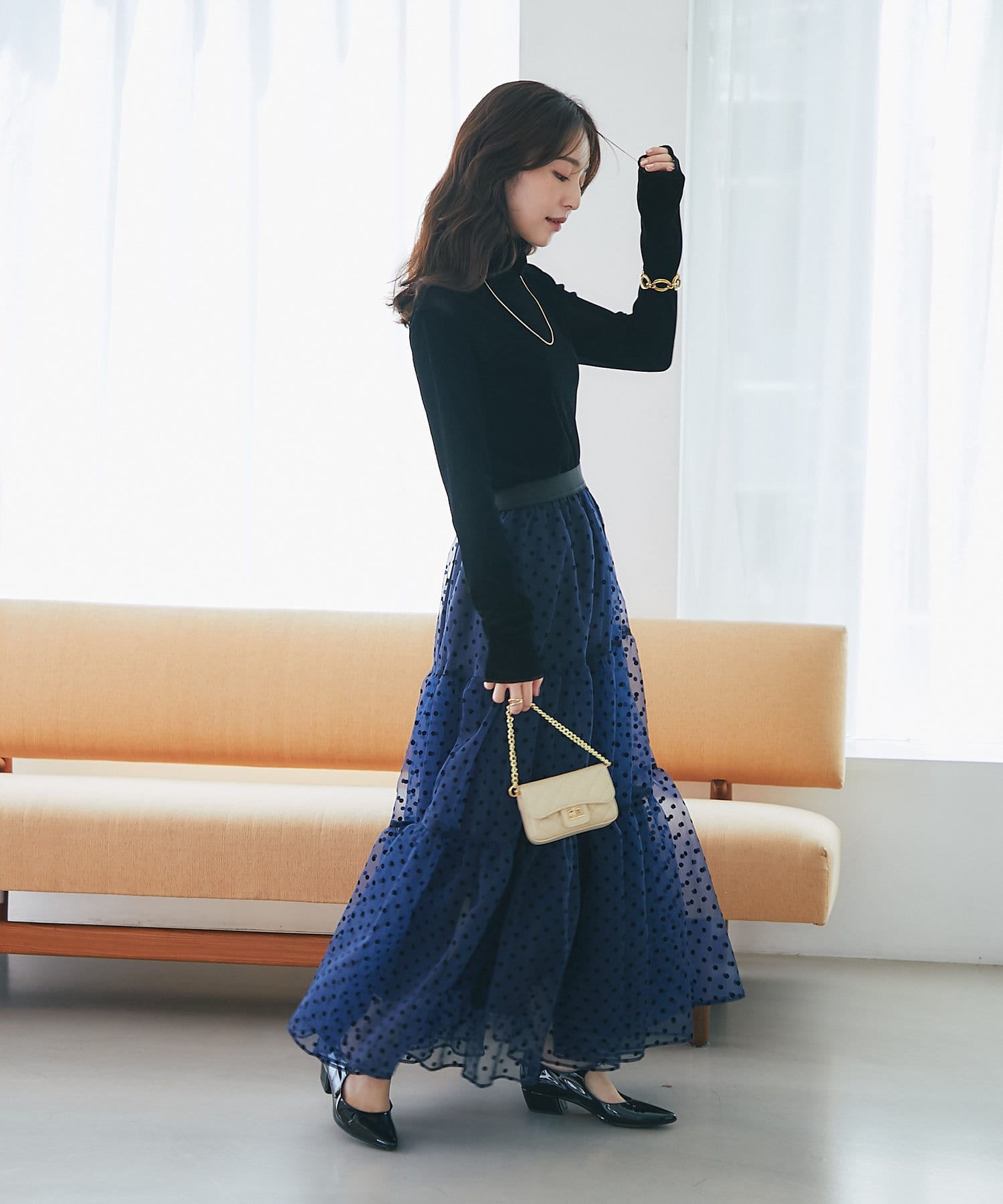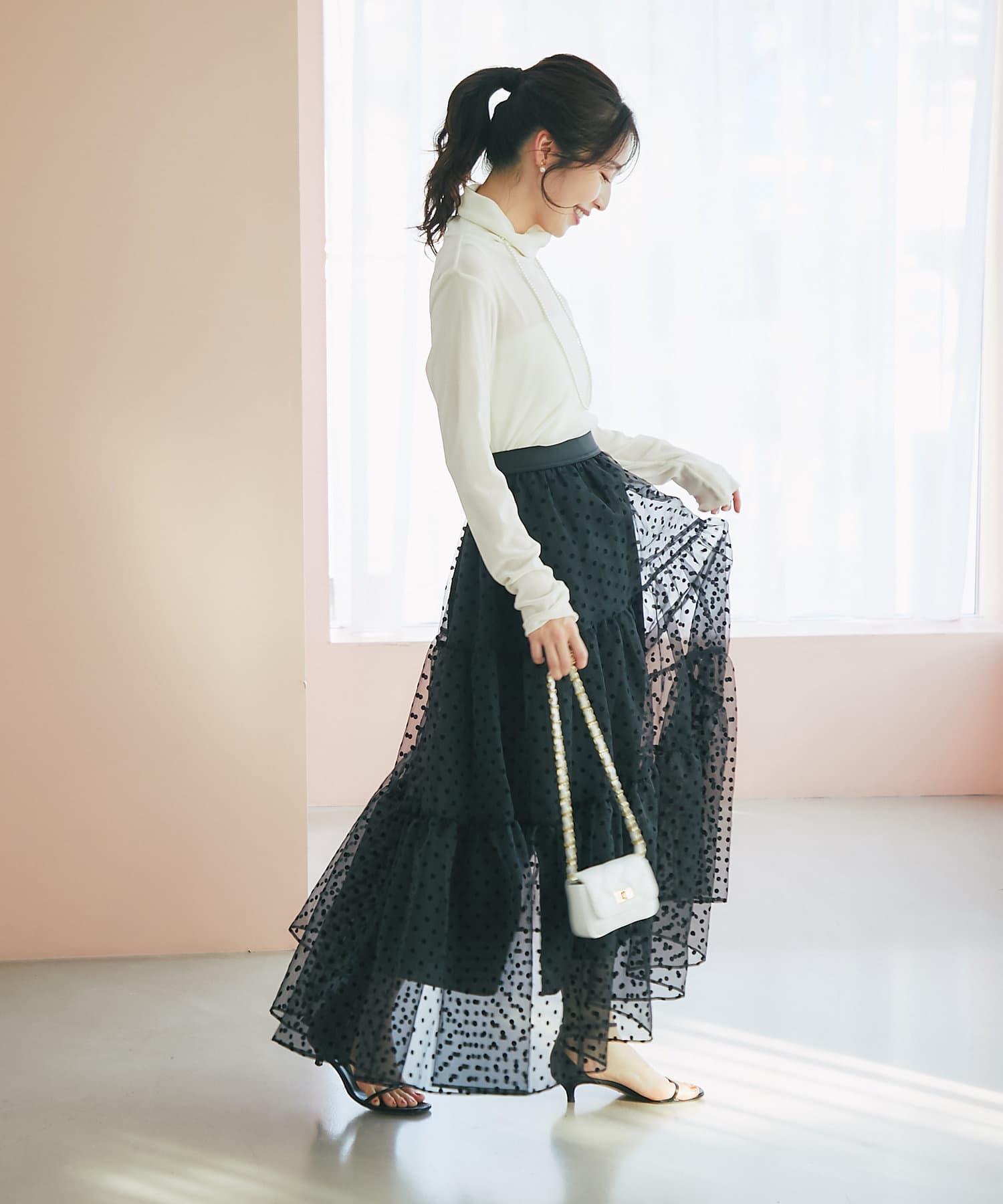 チュールスカートやバギーパンツなどボリュームのあるボトムに特におすすめです。