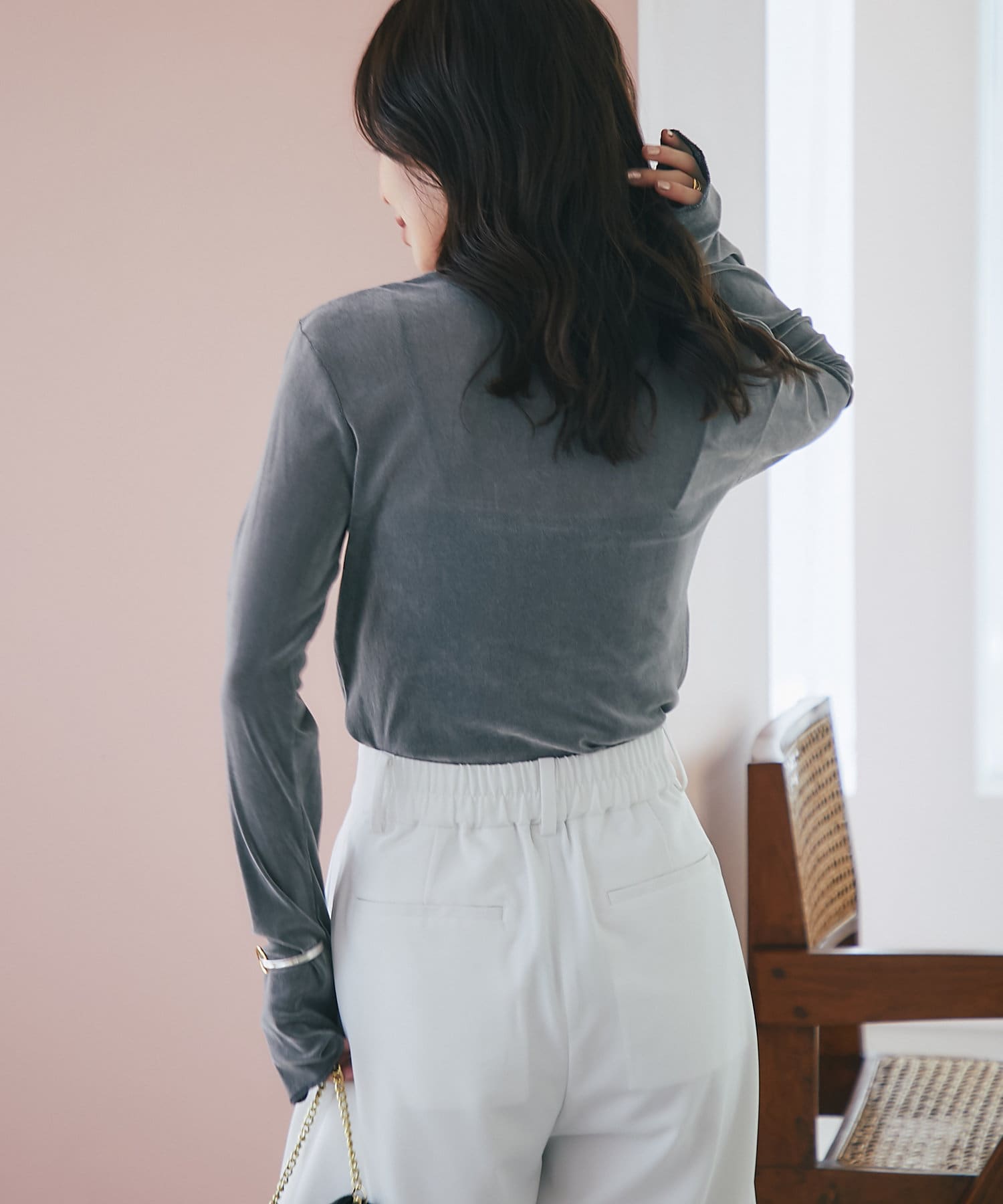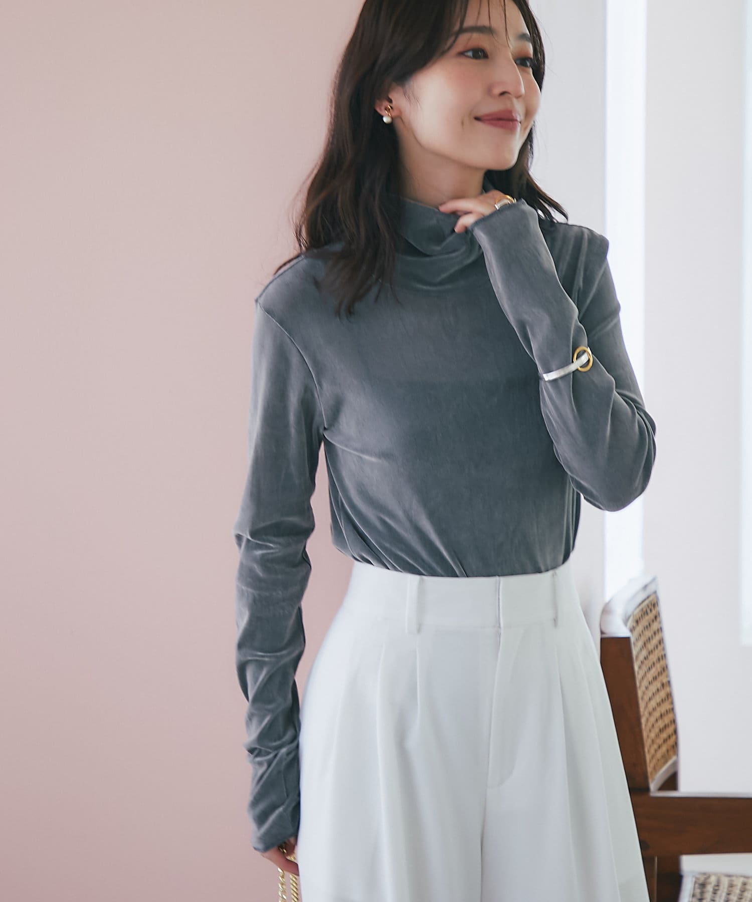1枚着でもレイヤードアイテムとしても様になるベルベットのような表面感のプルオーバー。