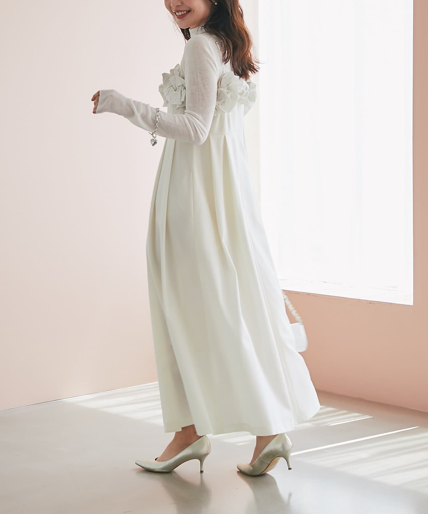 フリル部分は形状記憶のタフタを使用しているのでフリルが立体的で華やか。