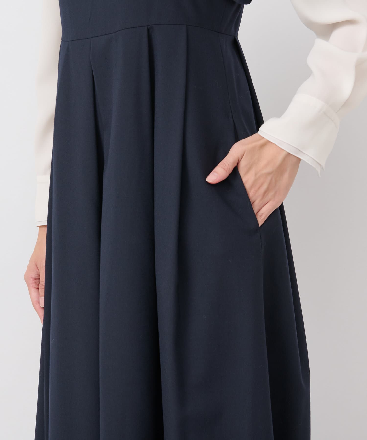 タック入りですが広がらず、甘さを抑えたシルエットですっきりと着用できます。