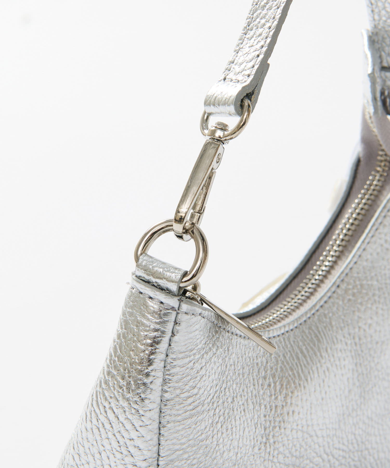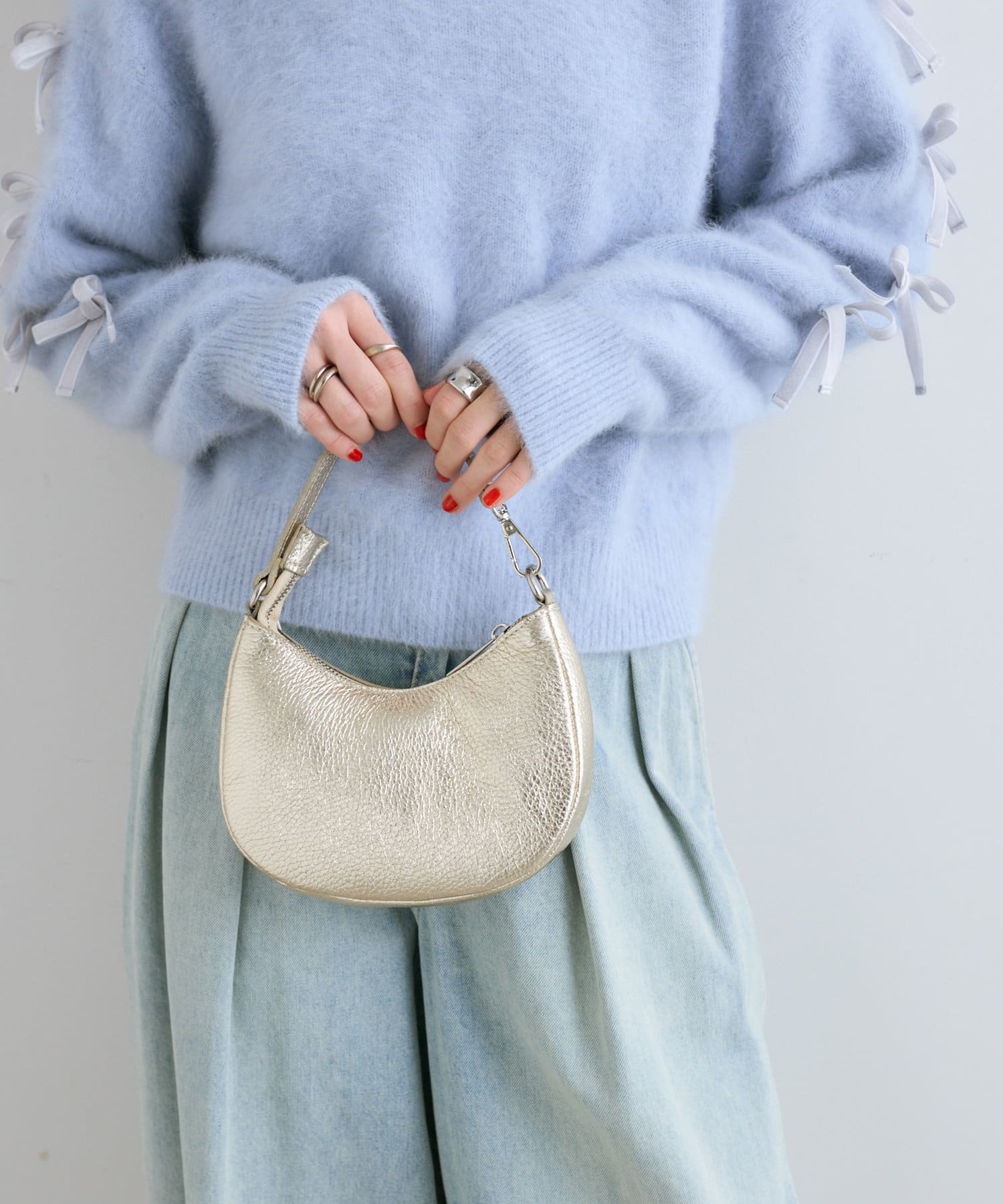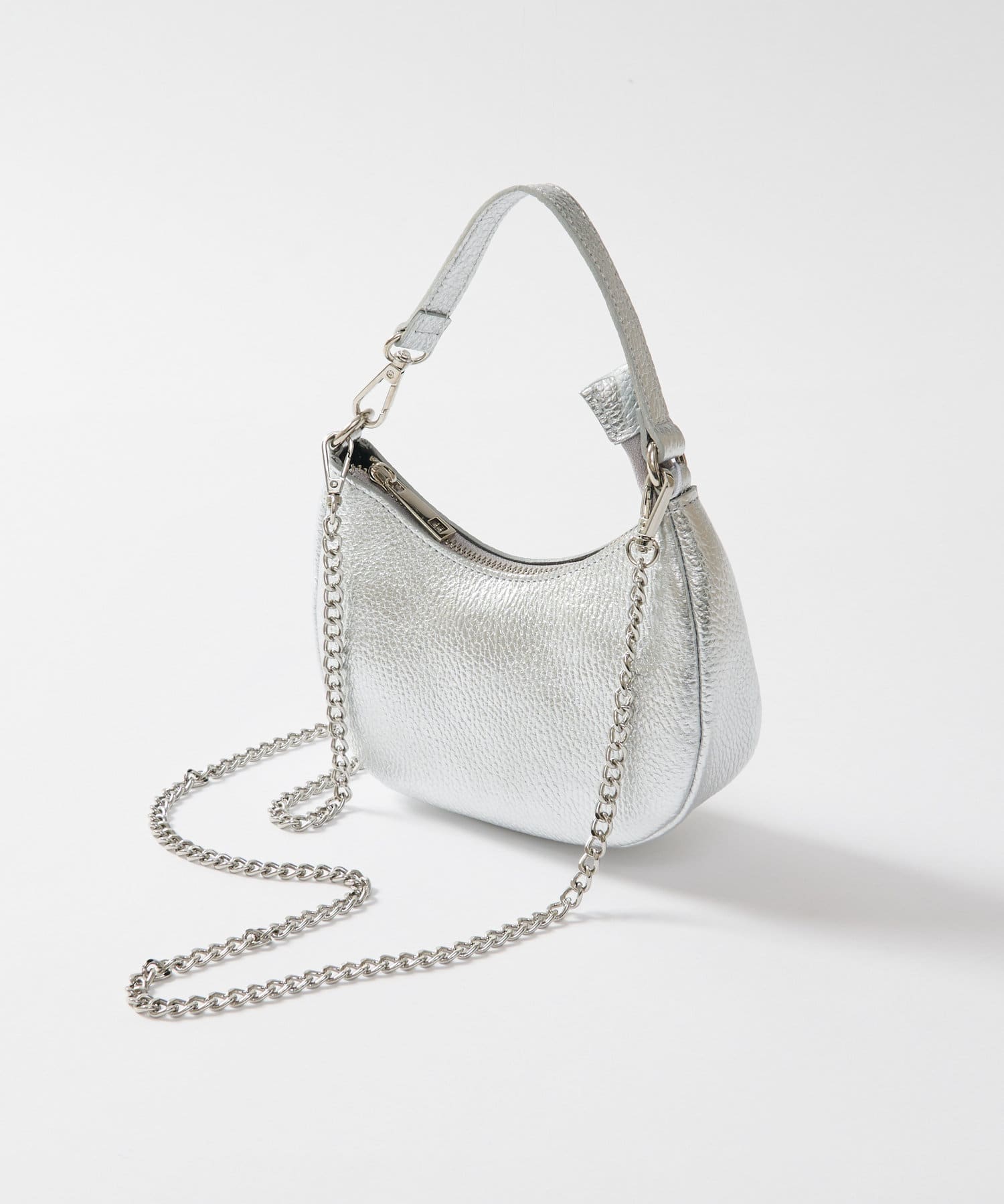 高級感あふれるメタリックなレザーを使用したミニバッグ。