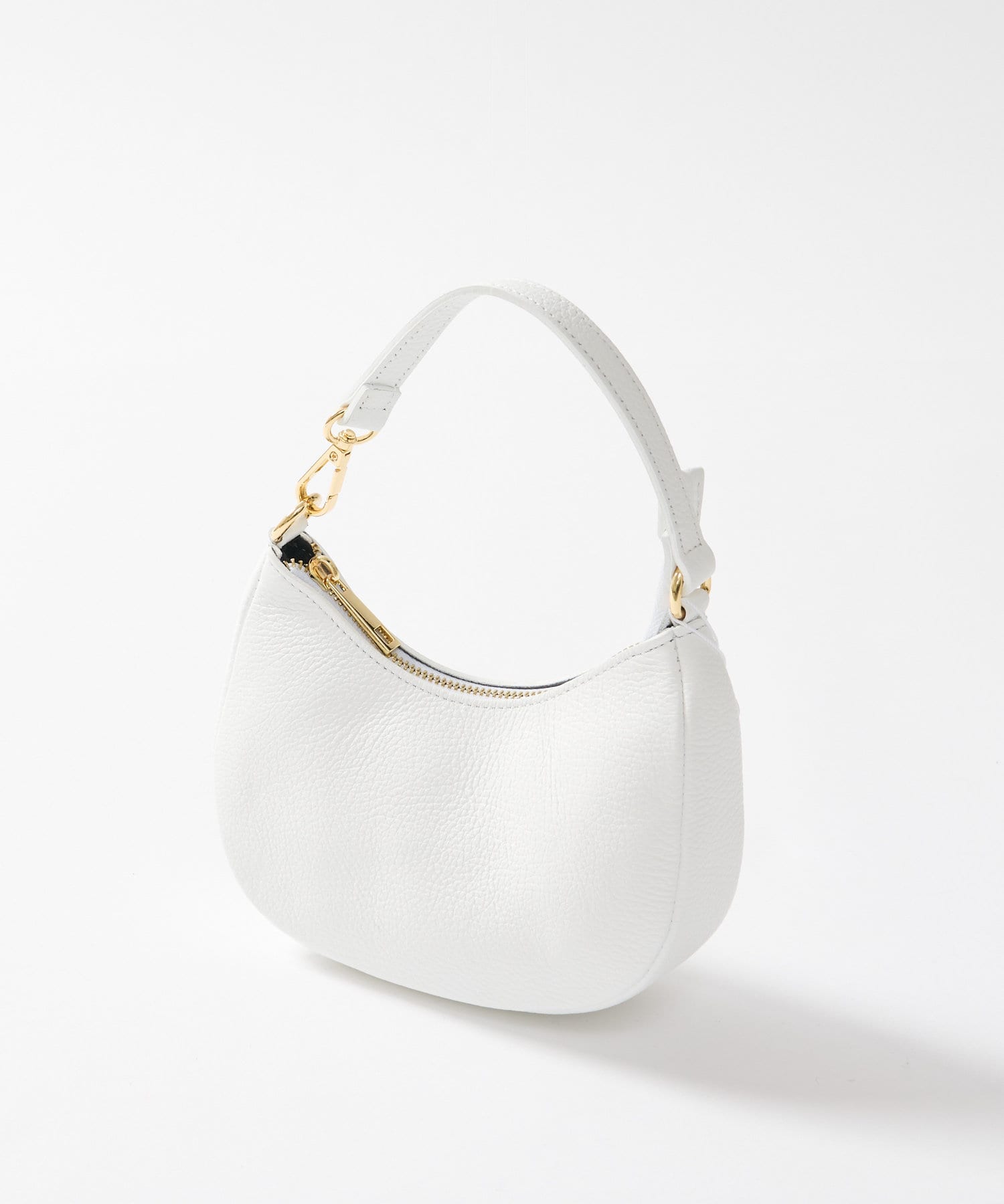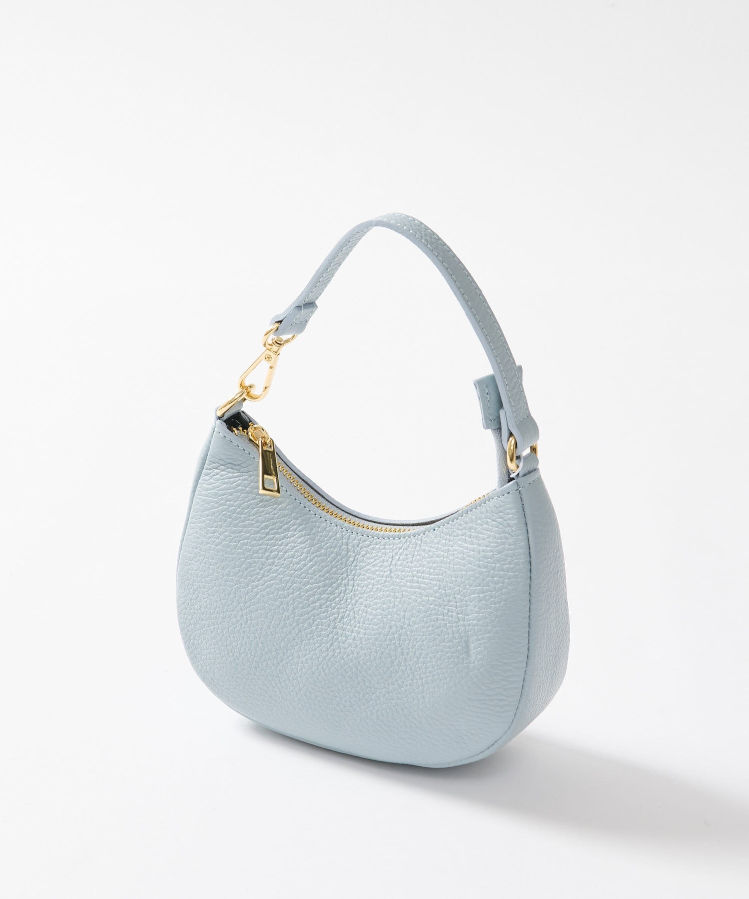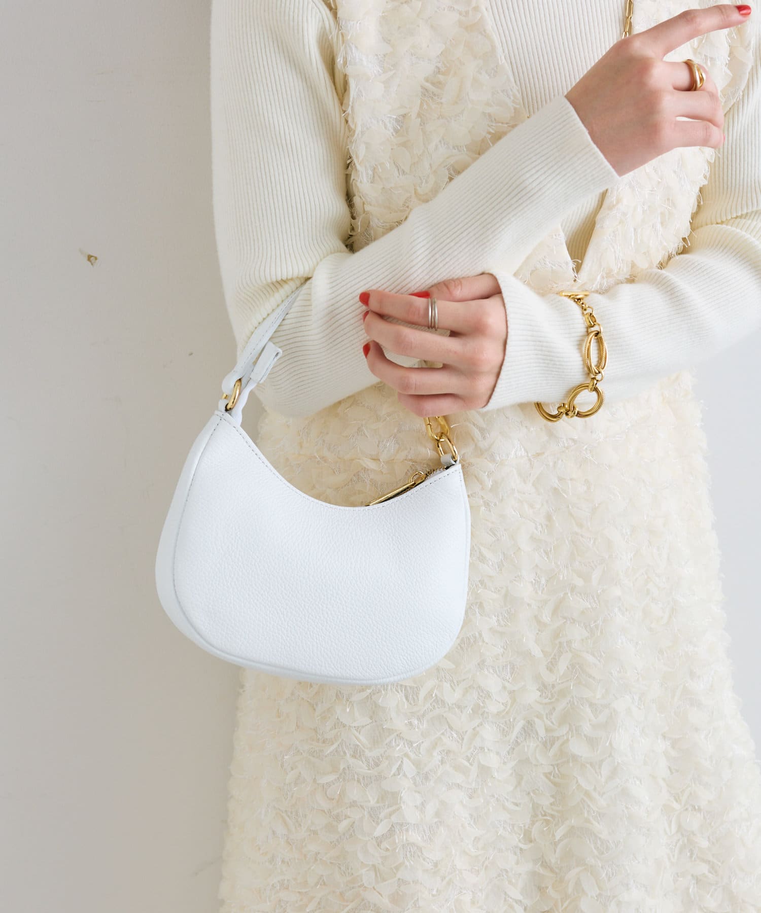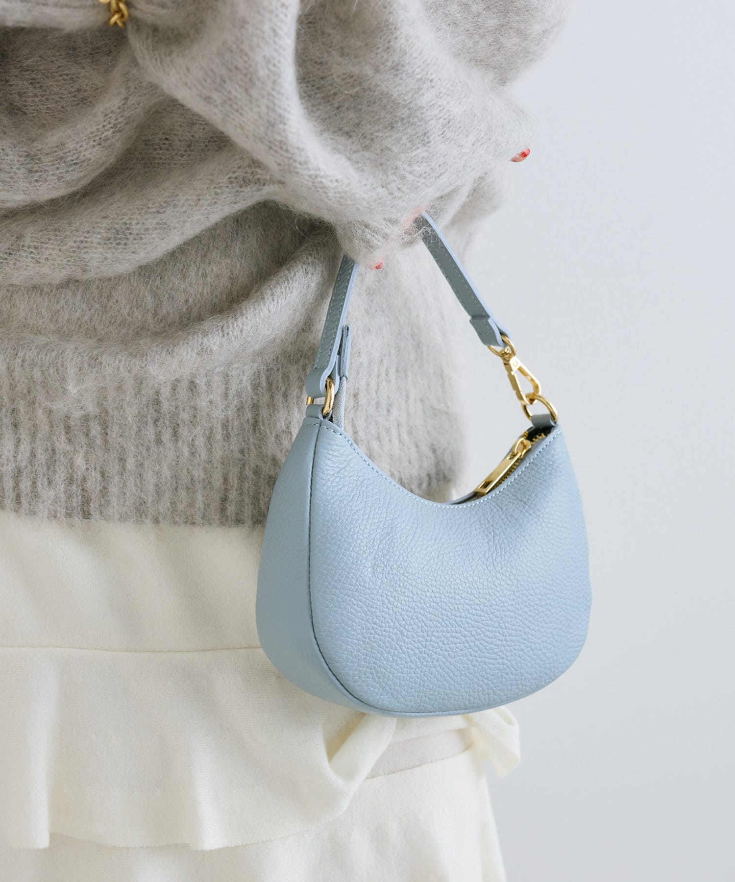 手触りの良いレザーのハーフムーンシルエットのバッグ。
