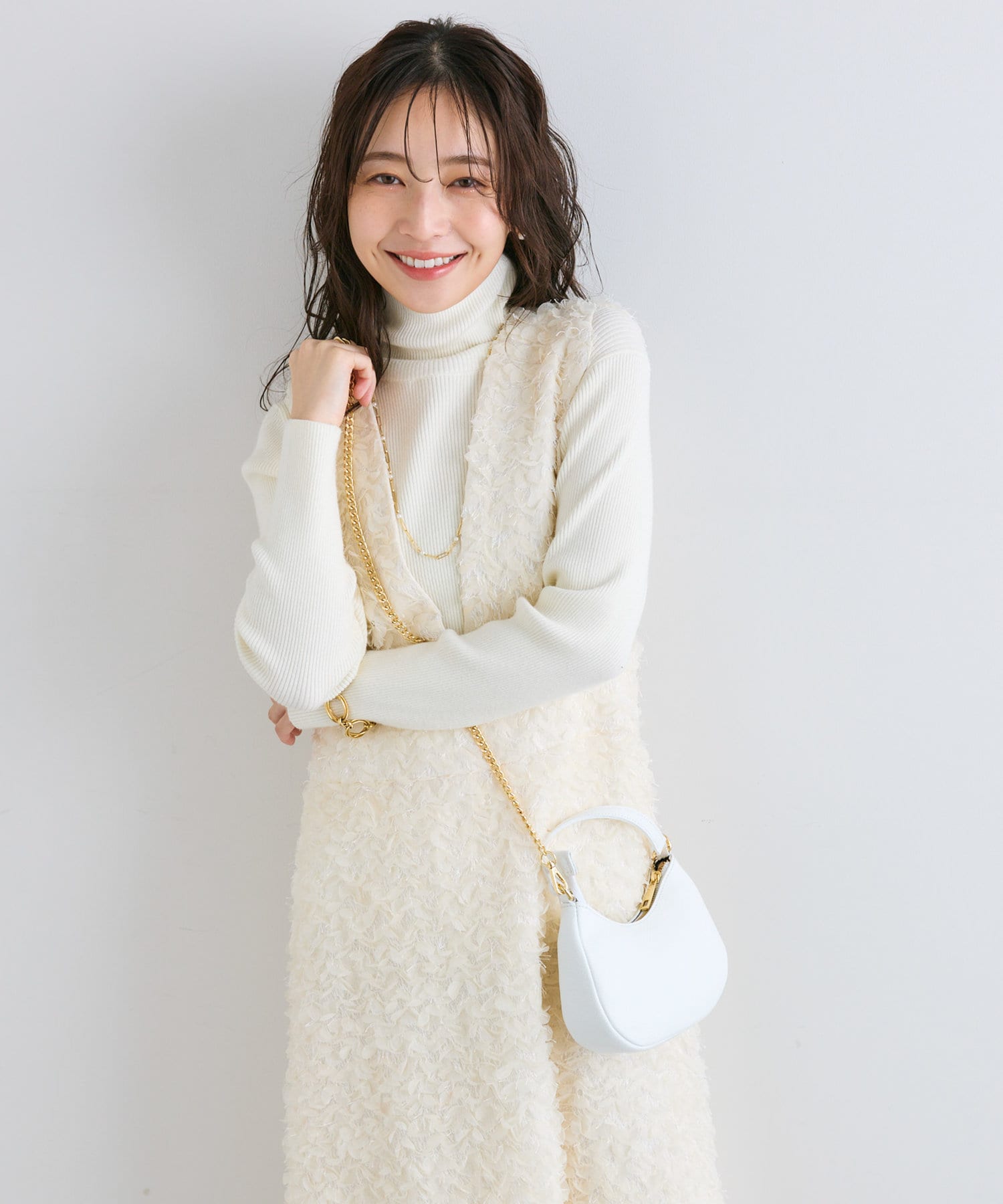 ゴールドチェーンのショルダーは、コーディネートに華やかさをプラスしてくれます。
