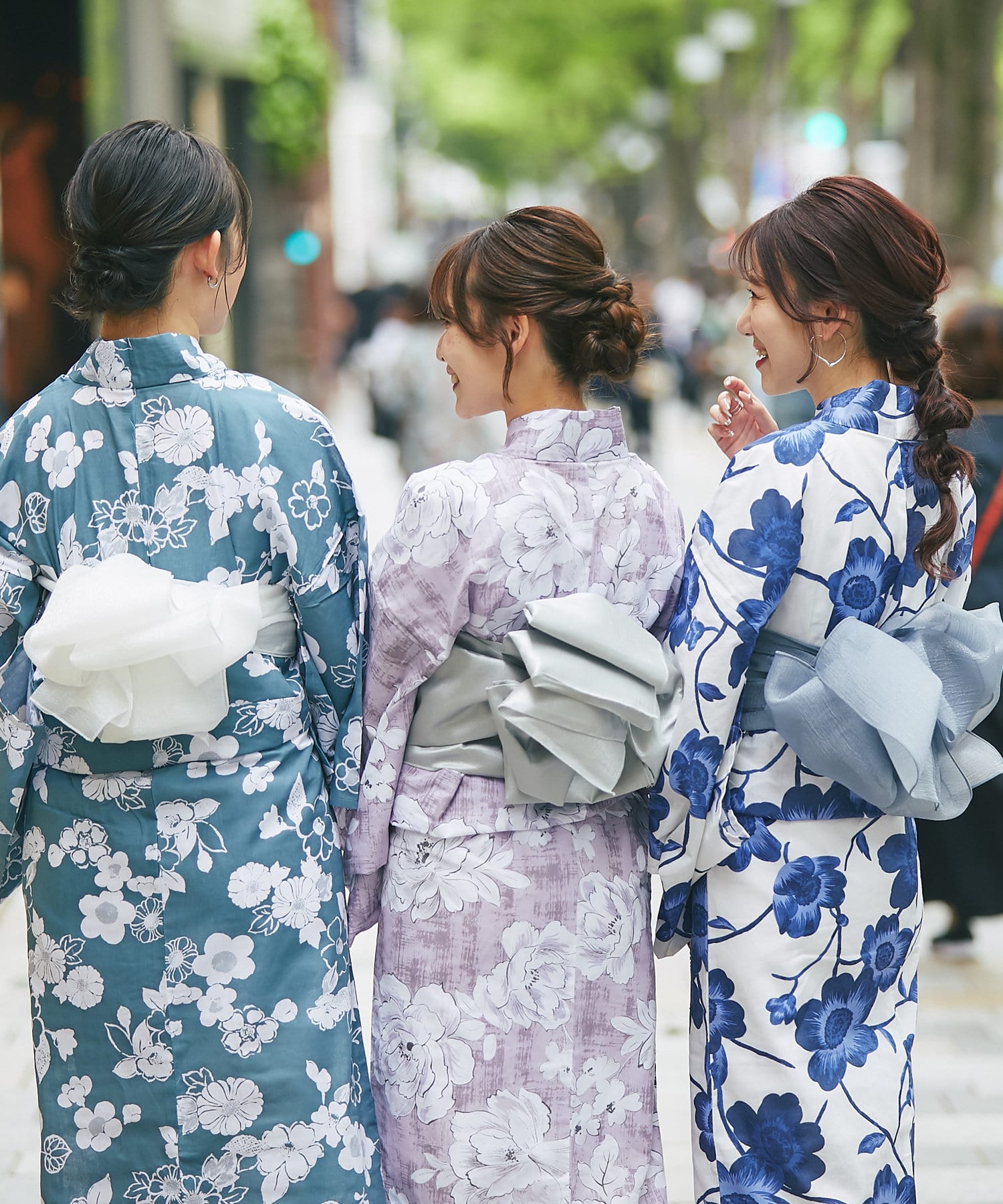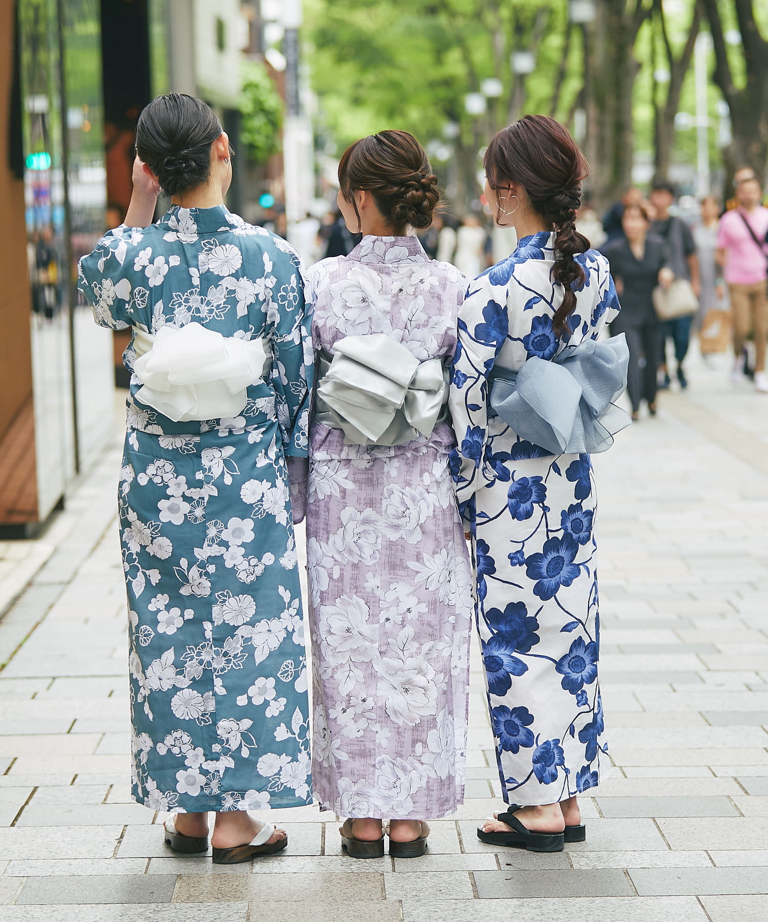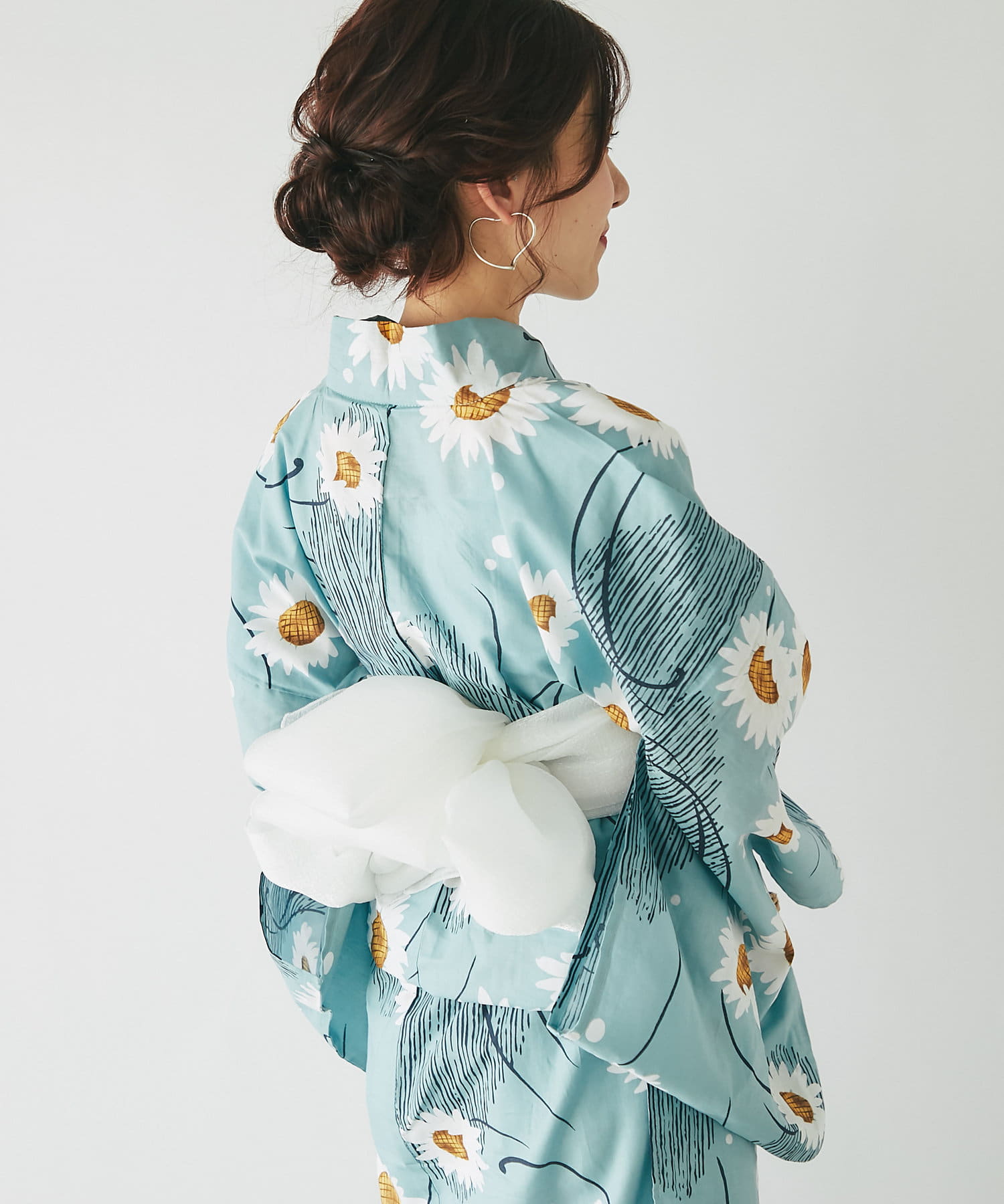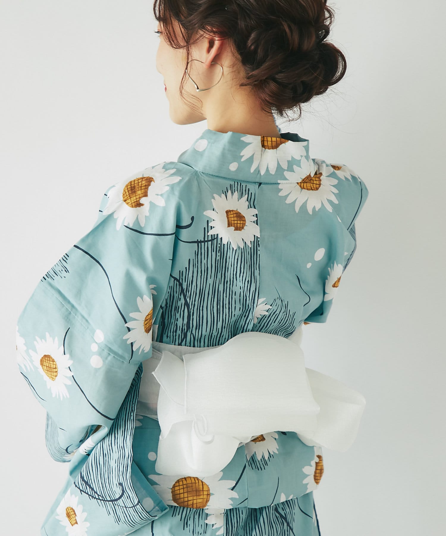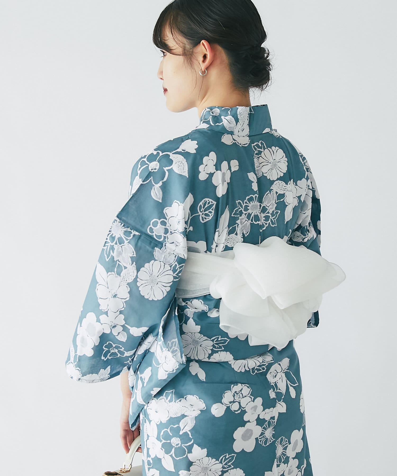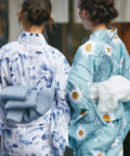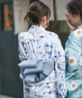 それぞれの柄に合うニュアンスカラー帯を合わせて、トレンド感のある浴衣スタイルに。