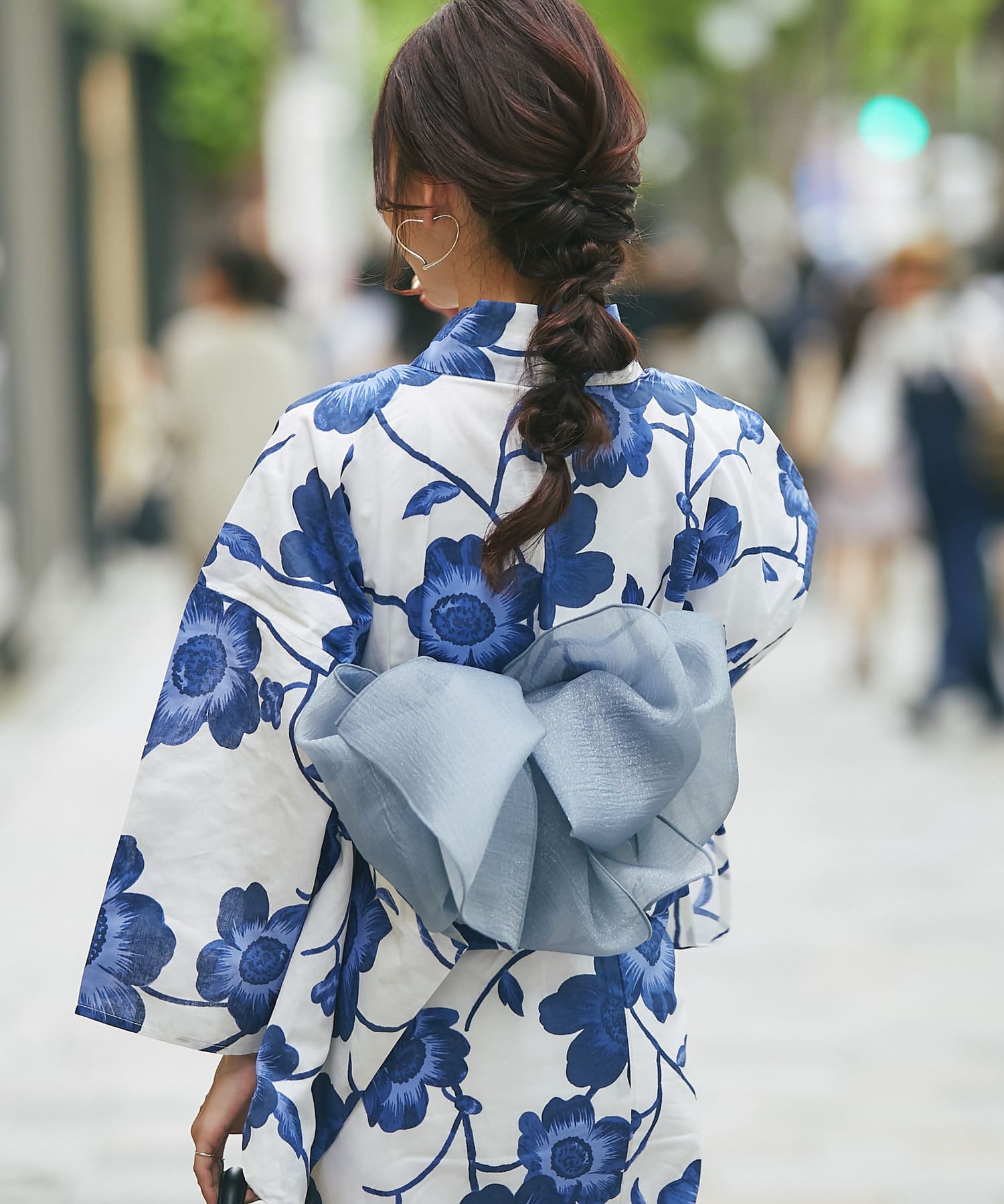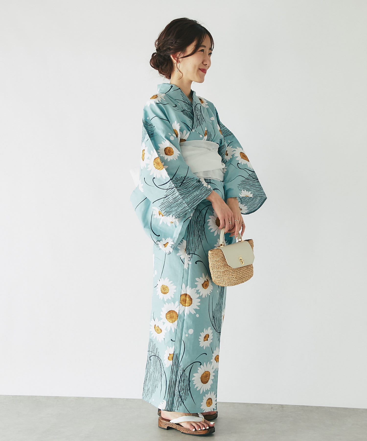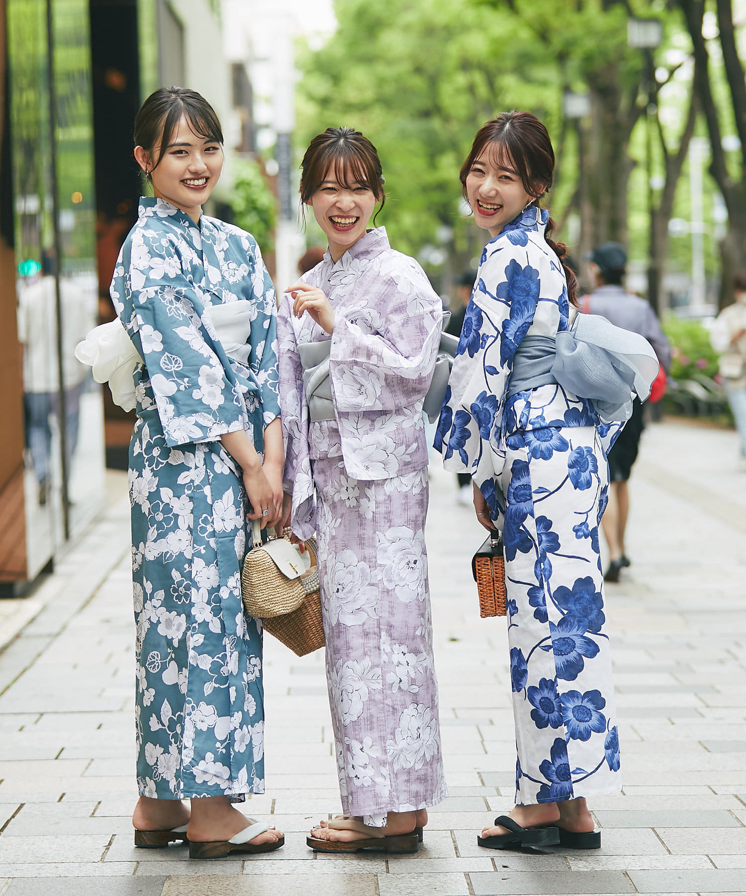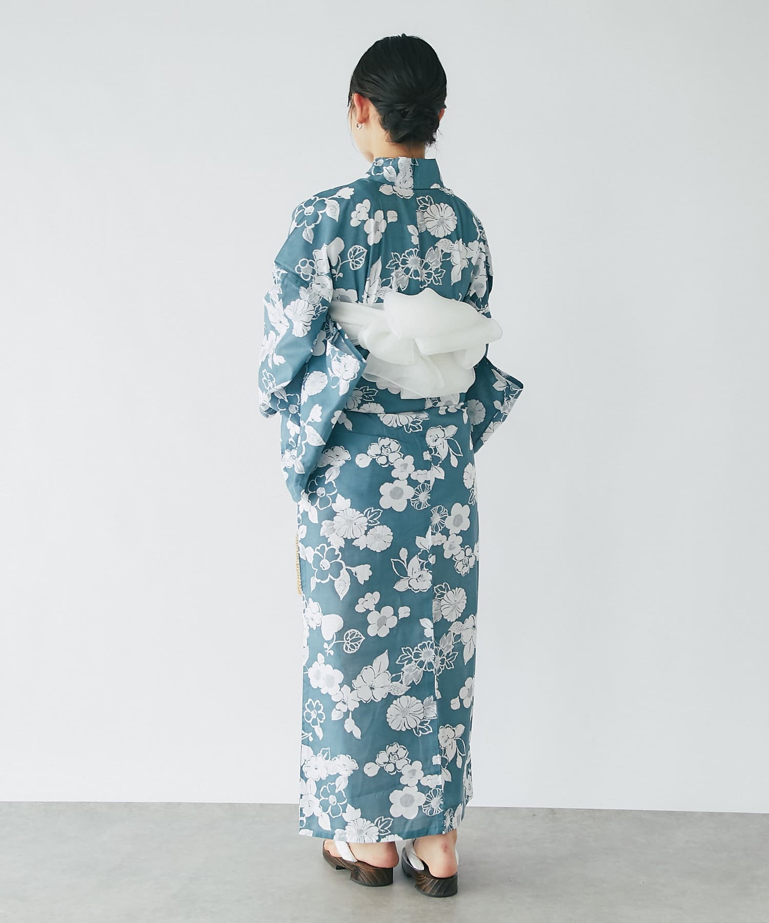 それぞれの柄に合うニュアンスカラー帯を合わせて、トレンド感のある浴衣スタイルに。