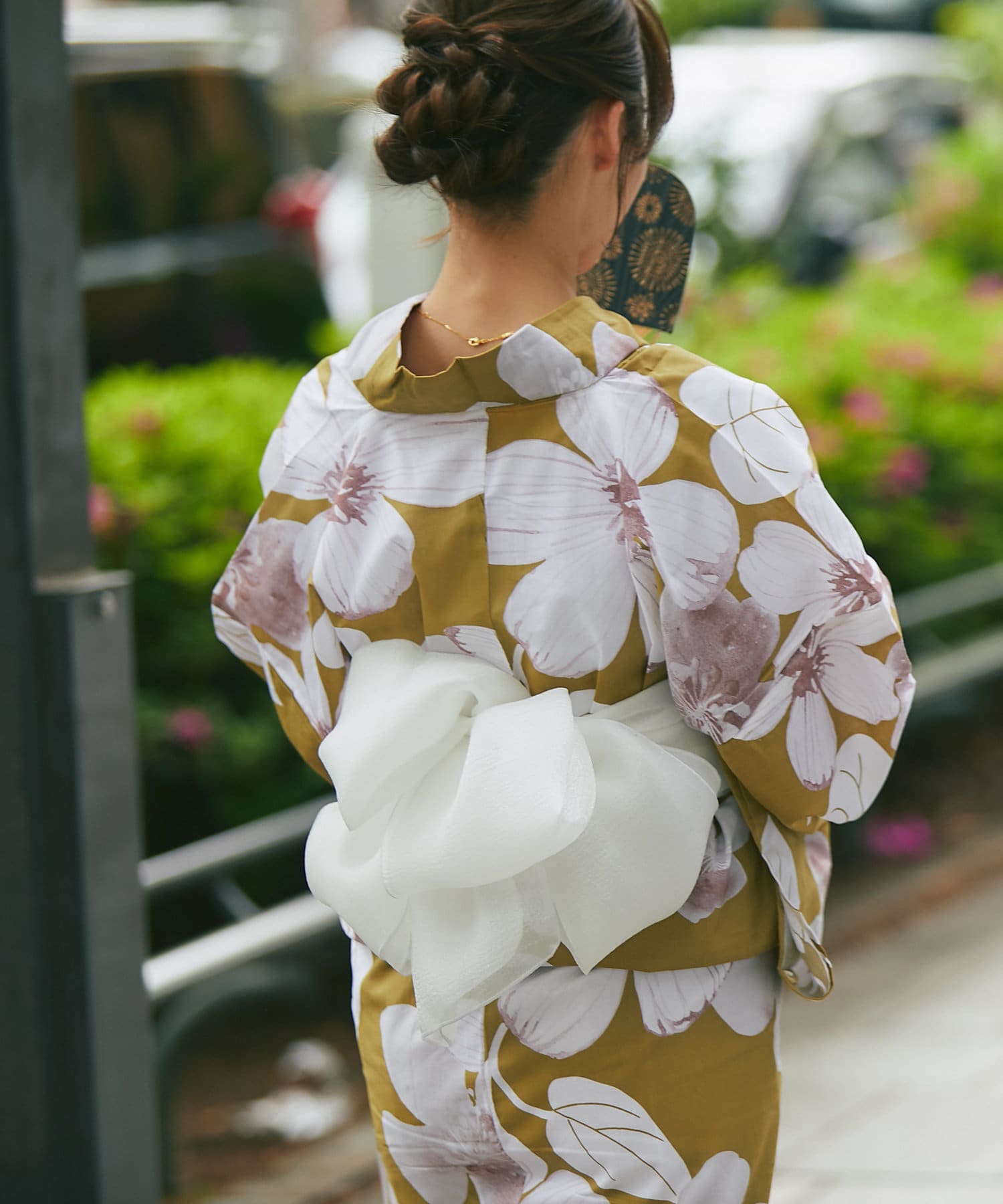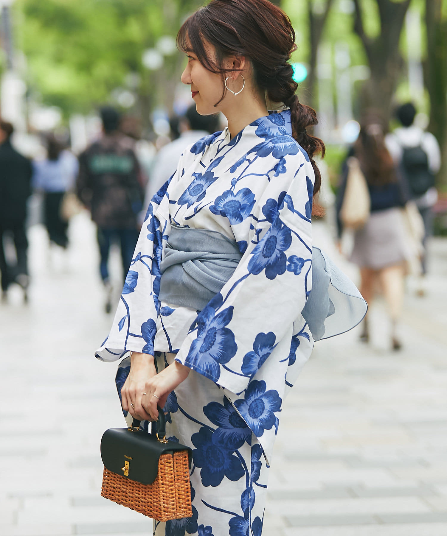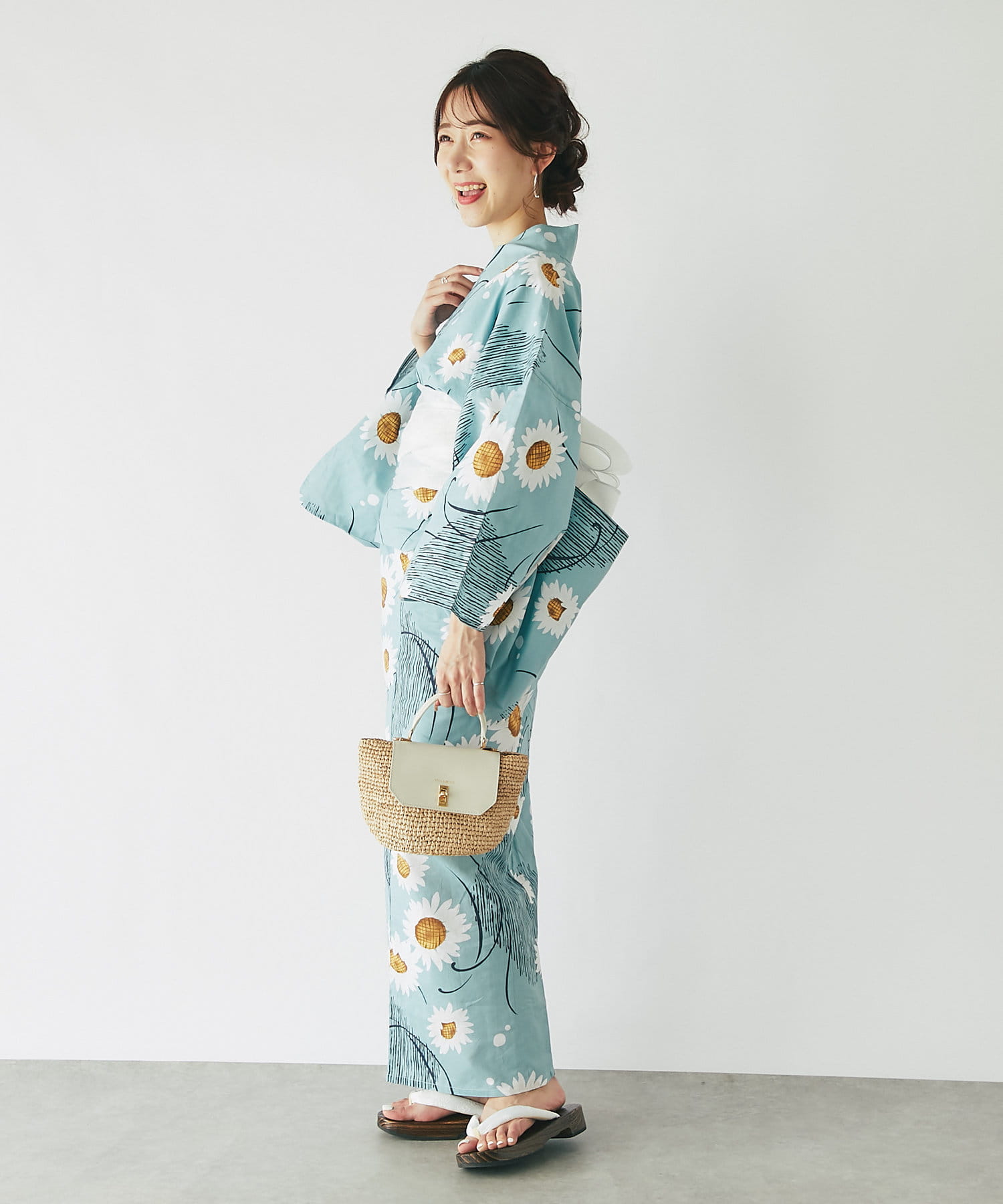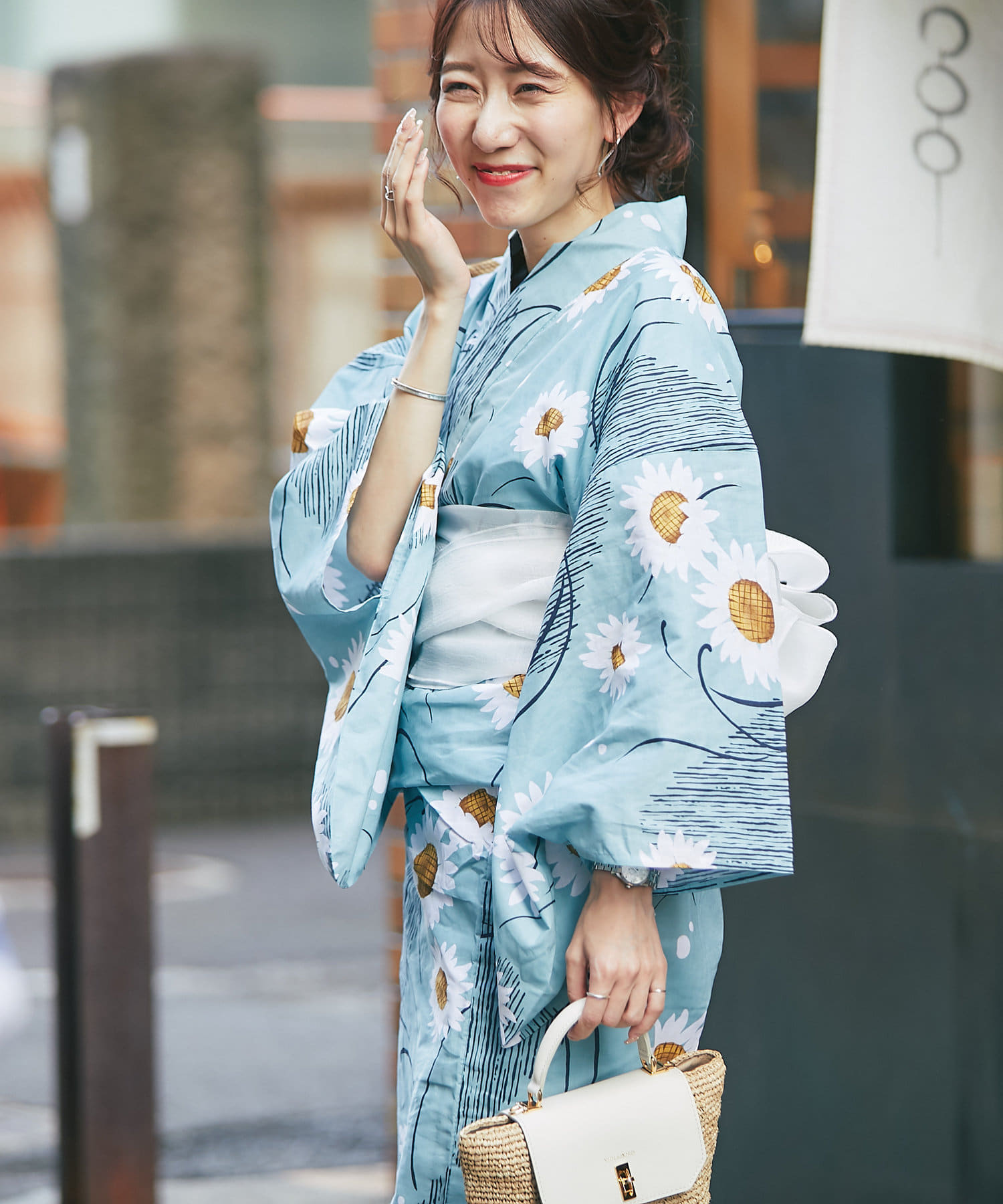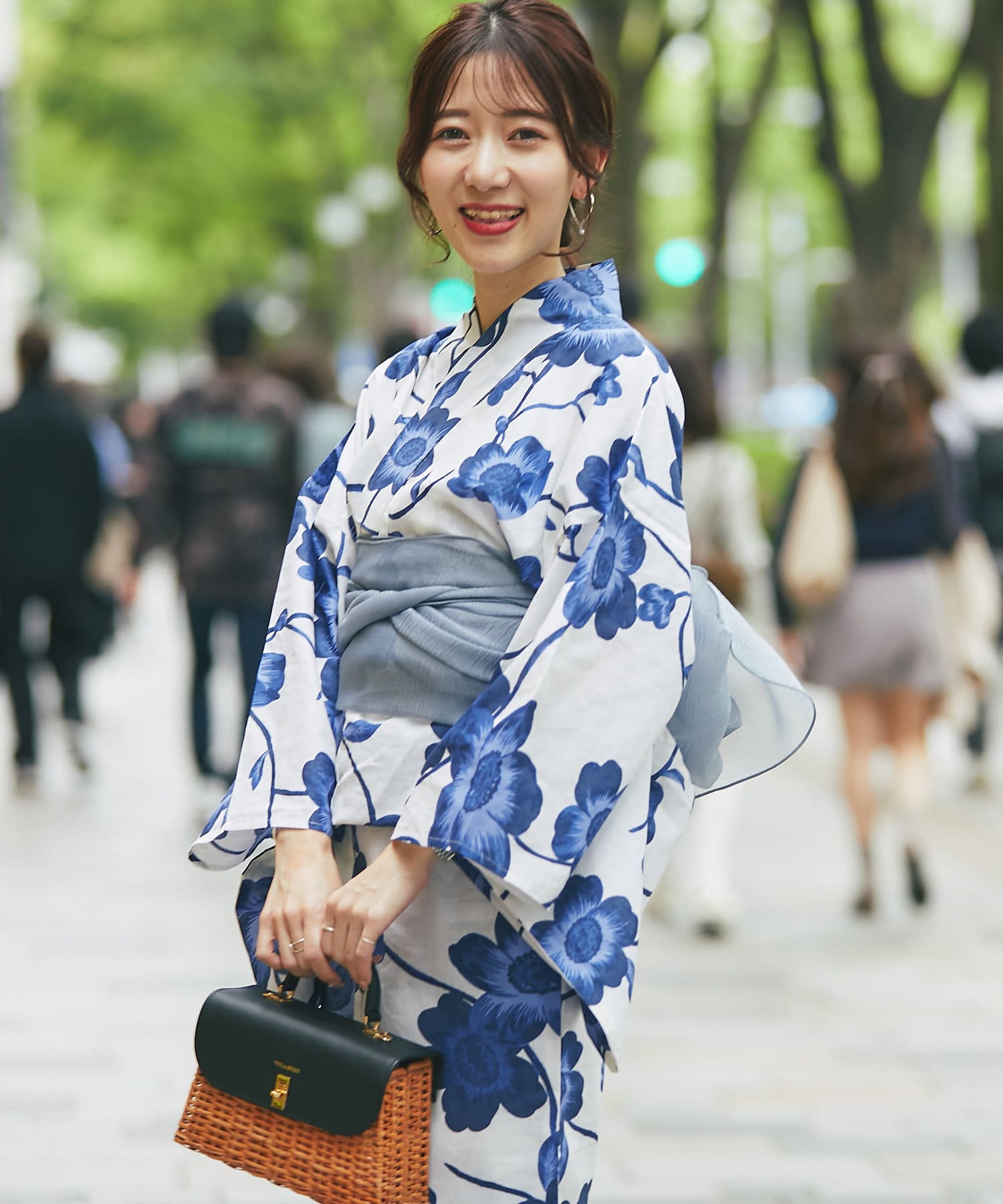 それぞれの柄に合うニュアンスカラー帯を合わせて、トレンド感のある浴衣スタイルに。