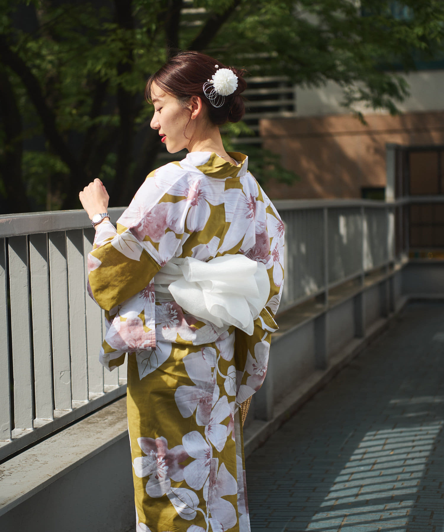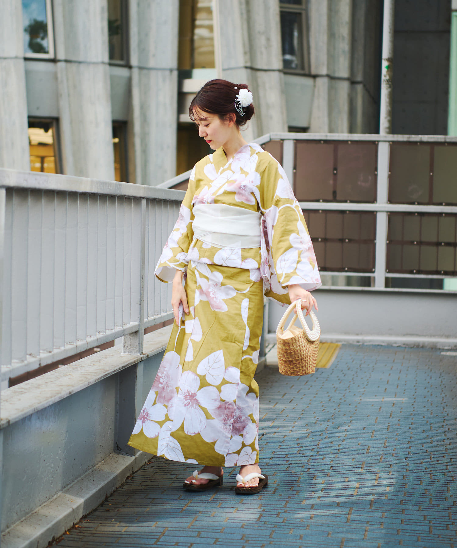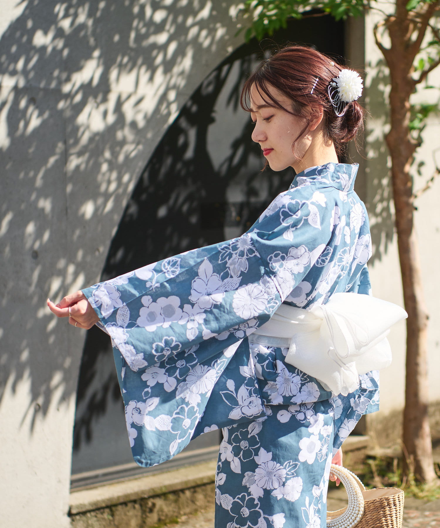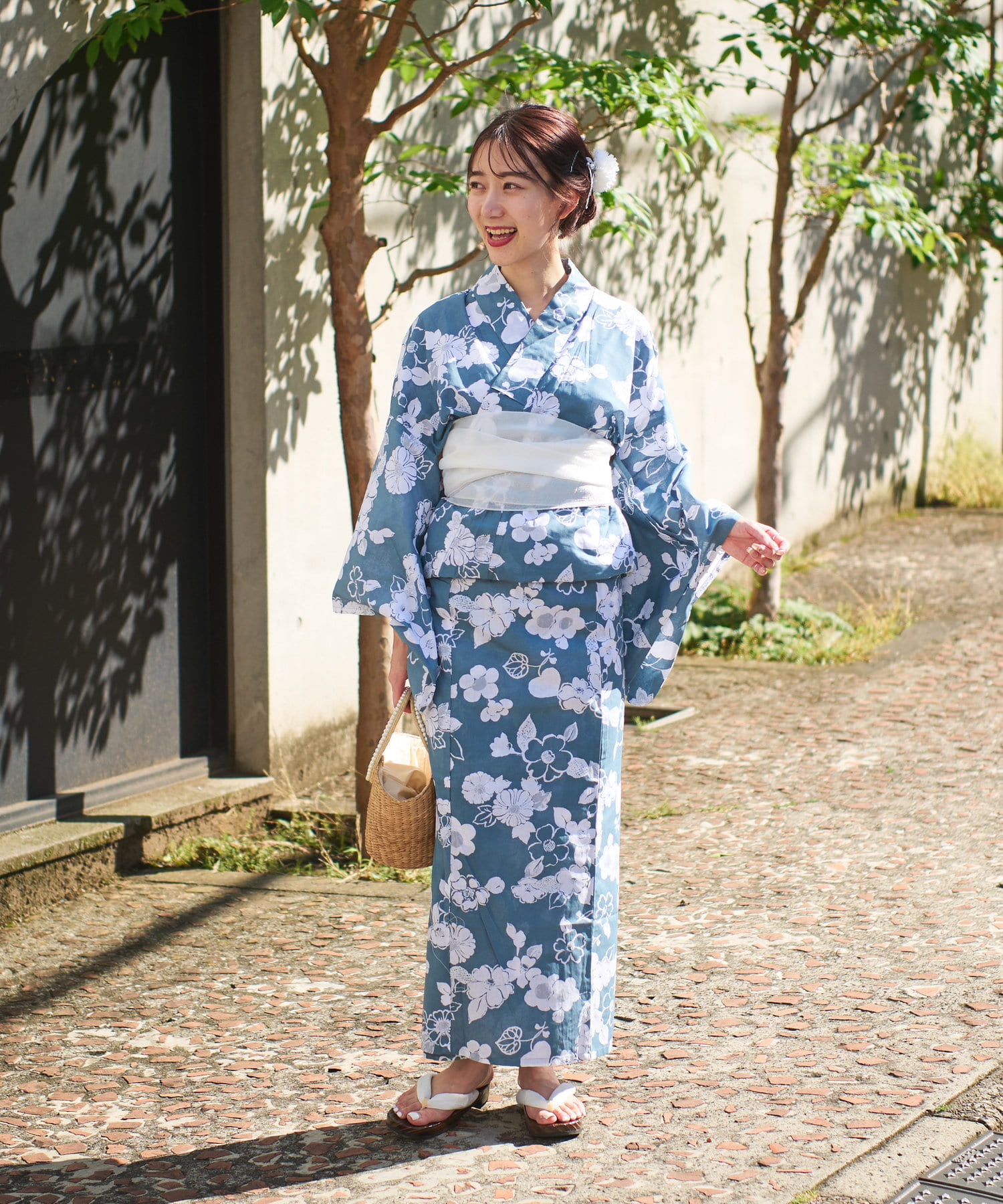 それぞれの柄に合うニュアンスカラー帯を合わせて、トレンド感のある浴衣スタイルに。