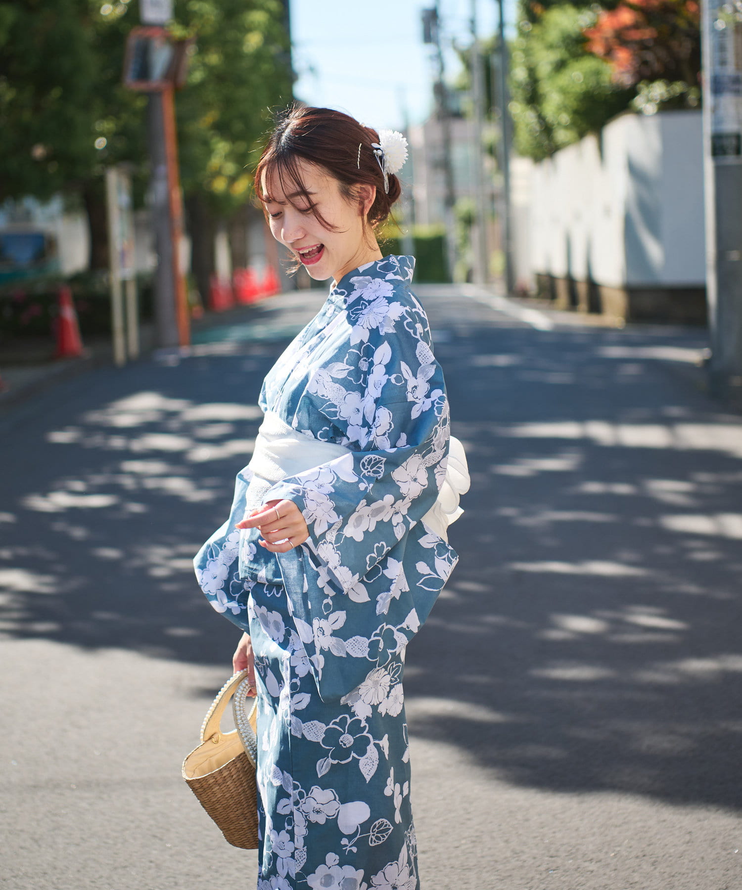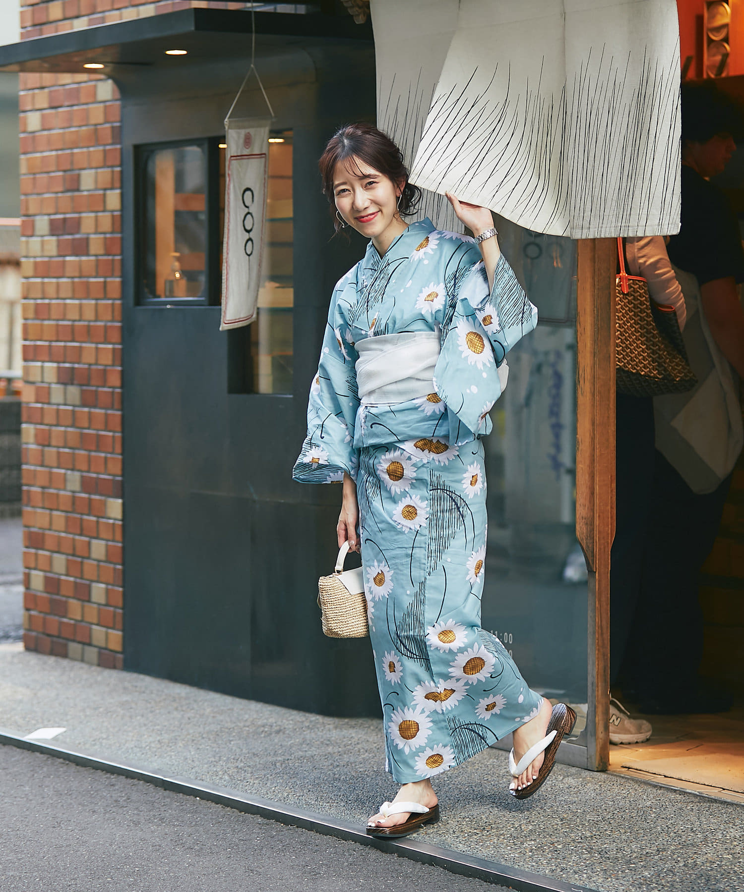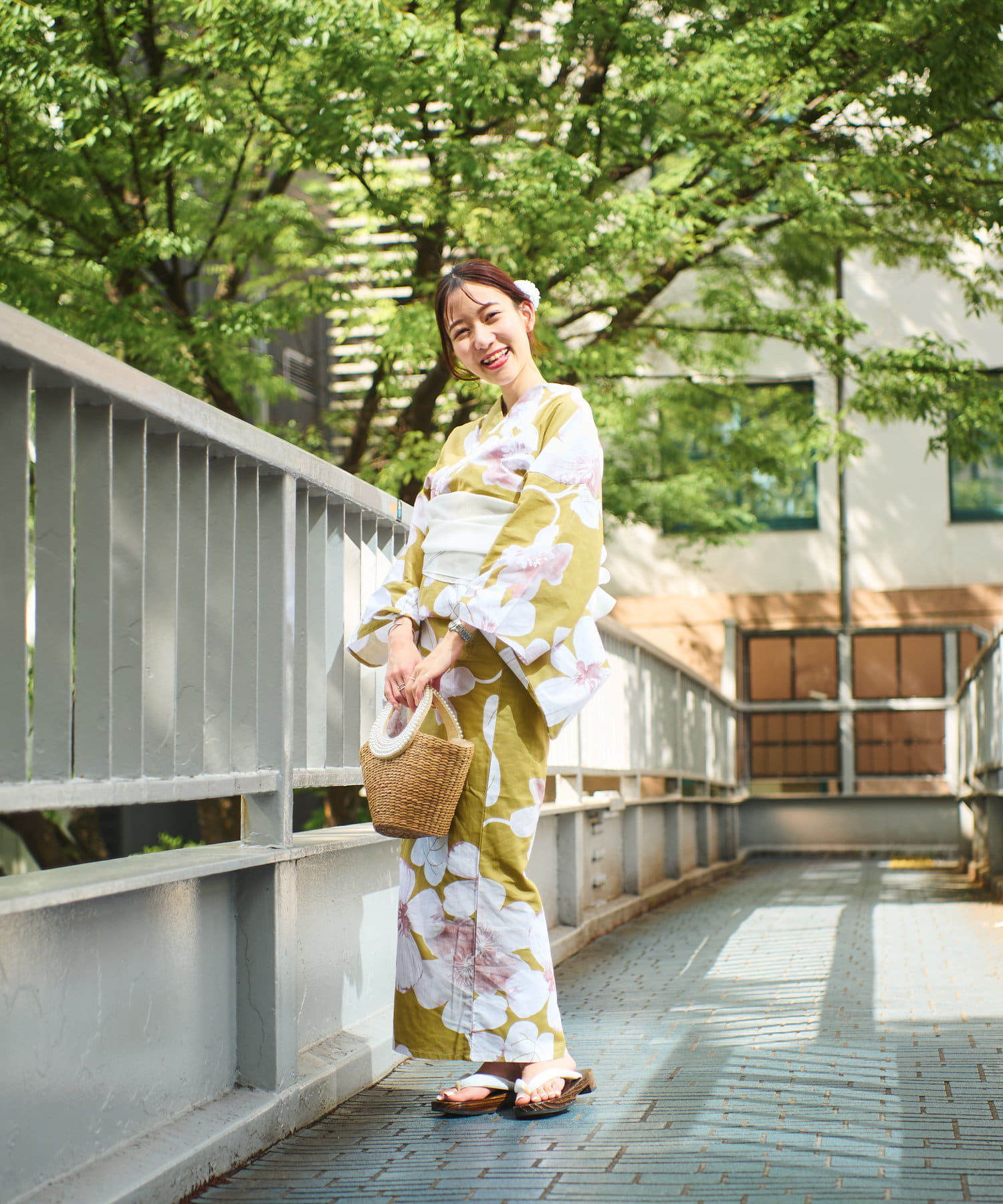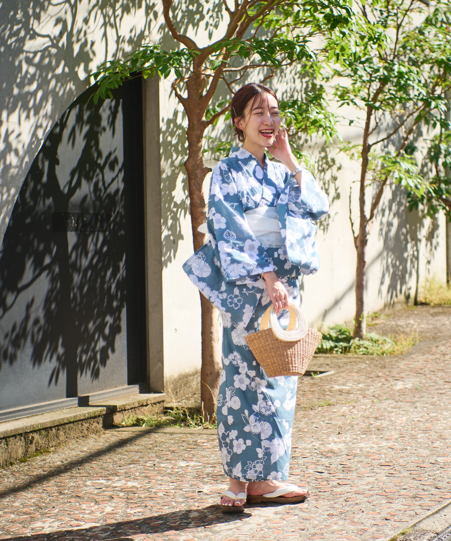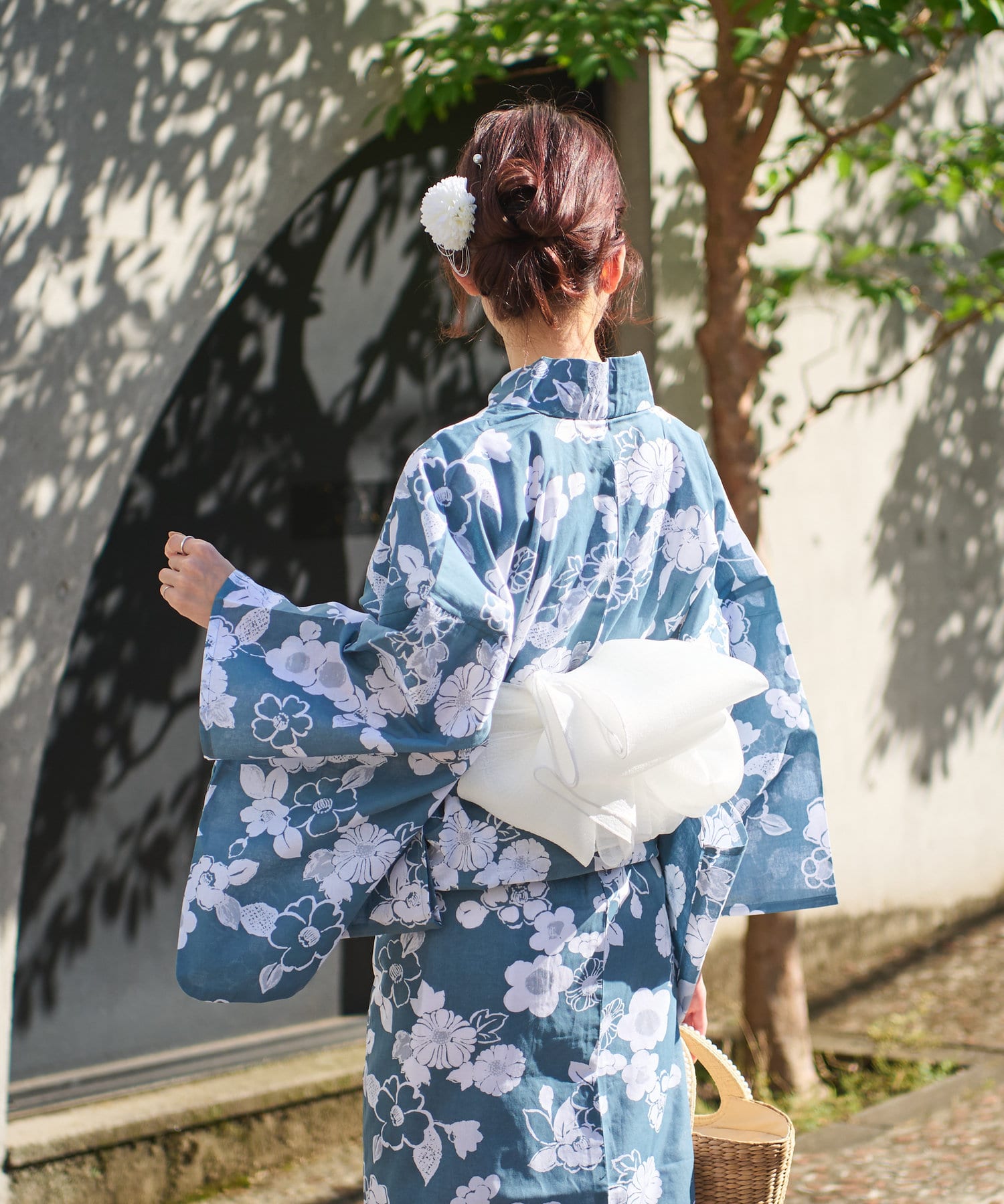 それぞれの柄に合うニュアンスカラー帯を合わせて、トレンド感のある浴衣スタイルに。